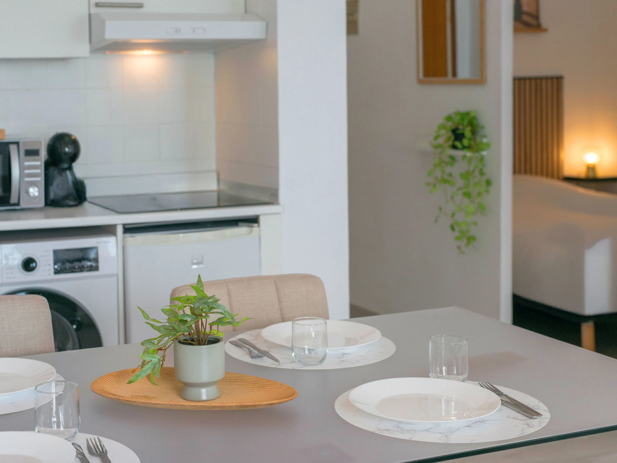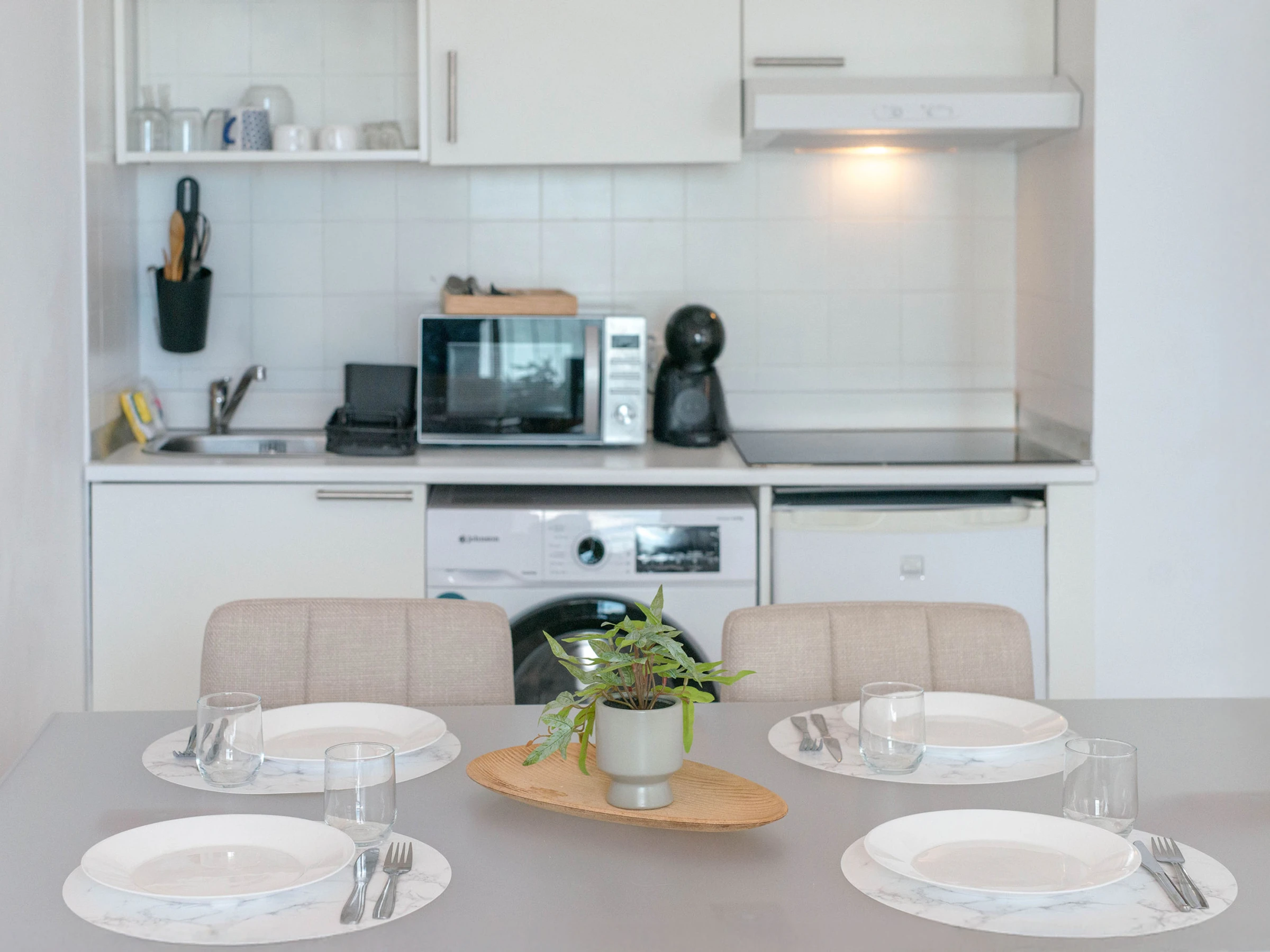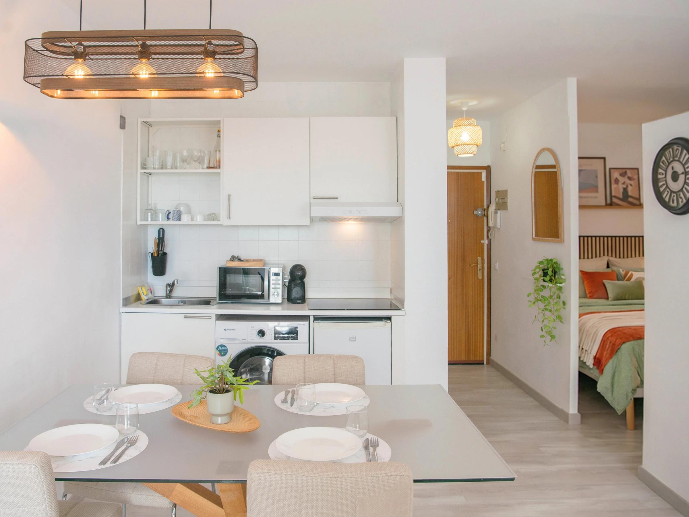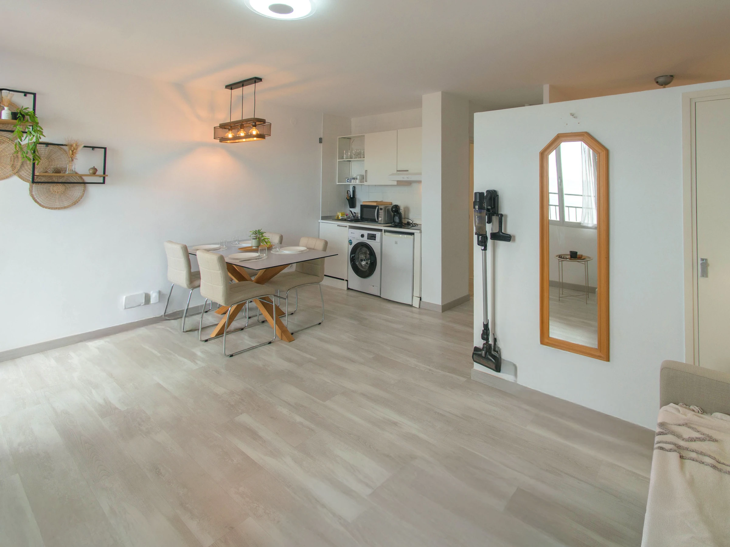 WiFi, aire acondicionado, lavadora, cocina equipada, microondas, ropa de cama y toallas.