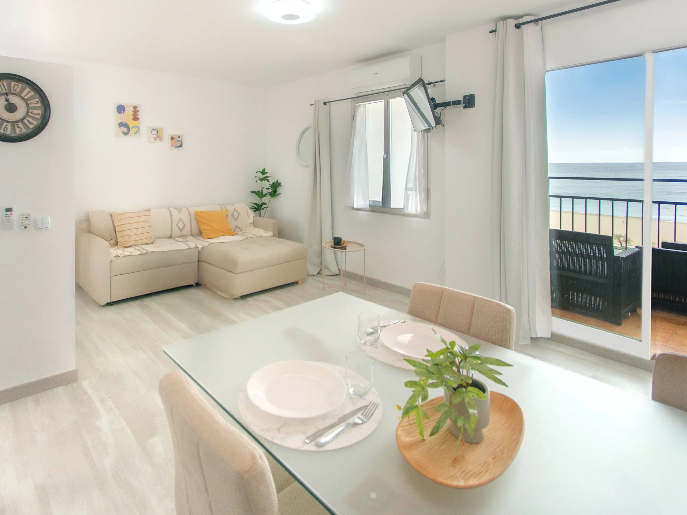 Estudio luminoso para hasta 4 personas, con balcón y vista al mar, ideal para escapadas en Empuriabrava. Dispone de cama doble y sofá cama, cocina equipada y baño completo. Incluye WiFi, aire acondicionado y lavadora para una estancia cómoda y práctica. No se admiten mascotas y no dispone de parking.