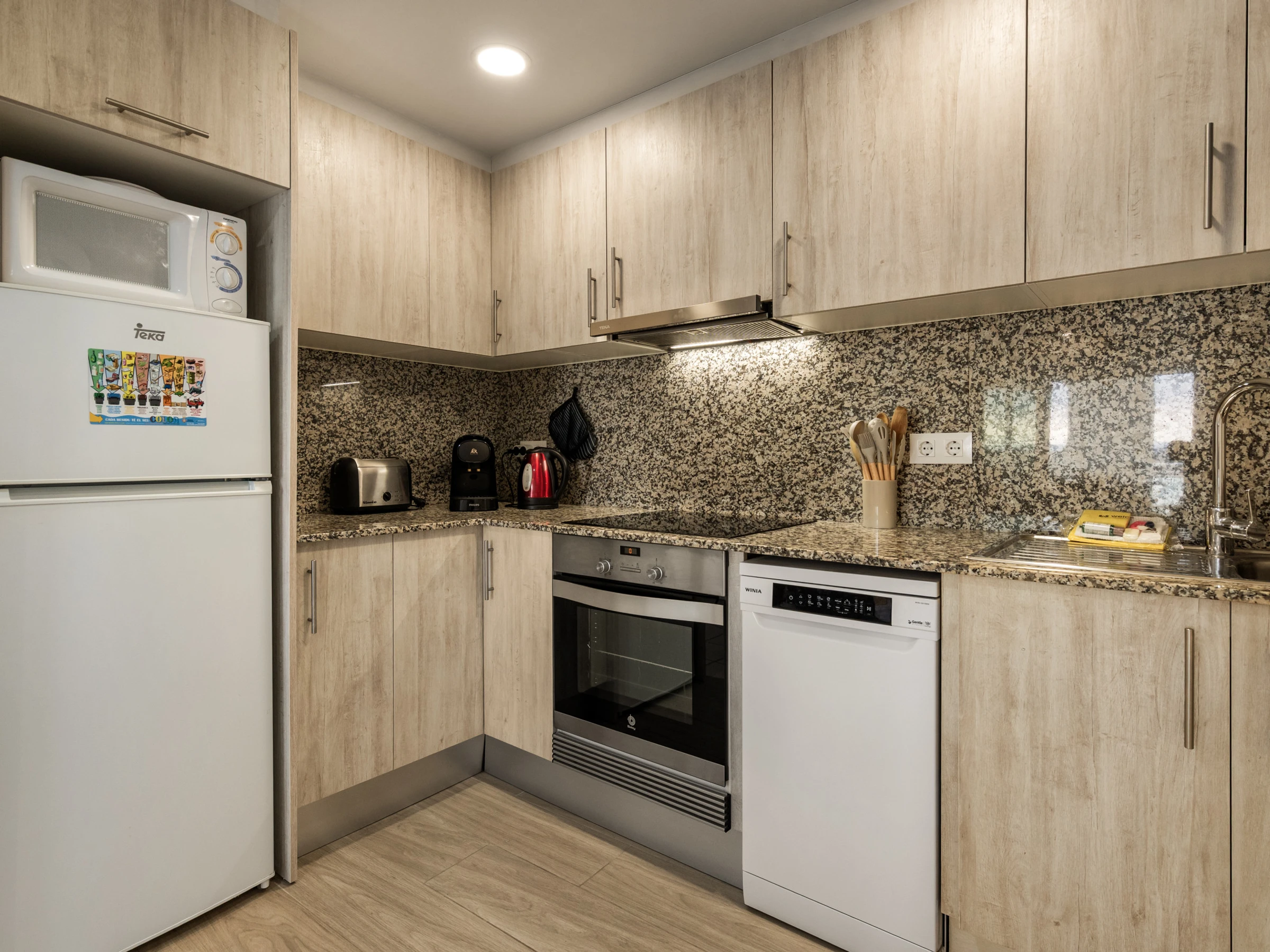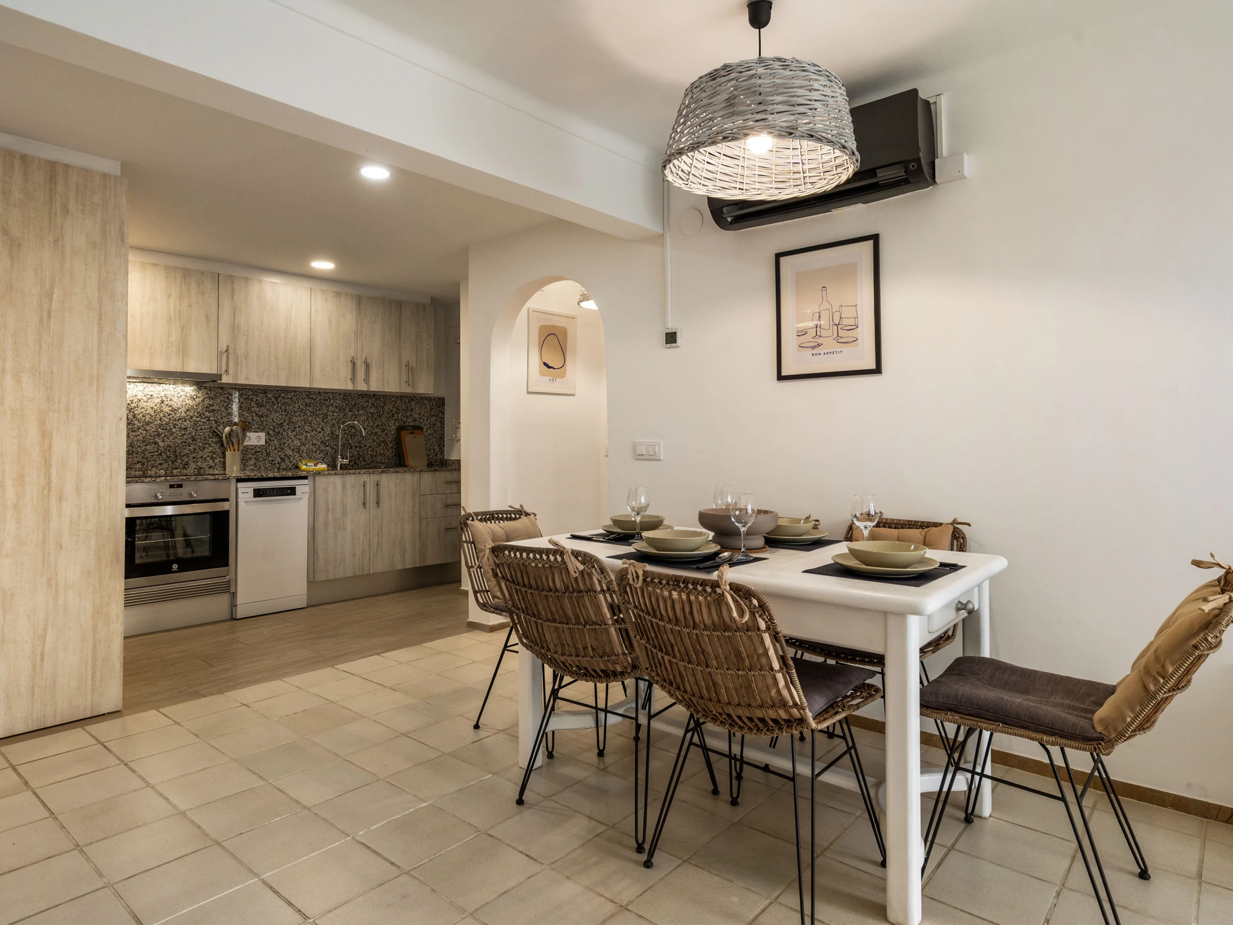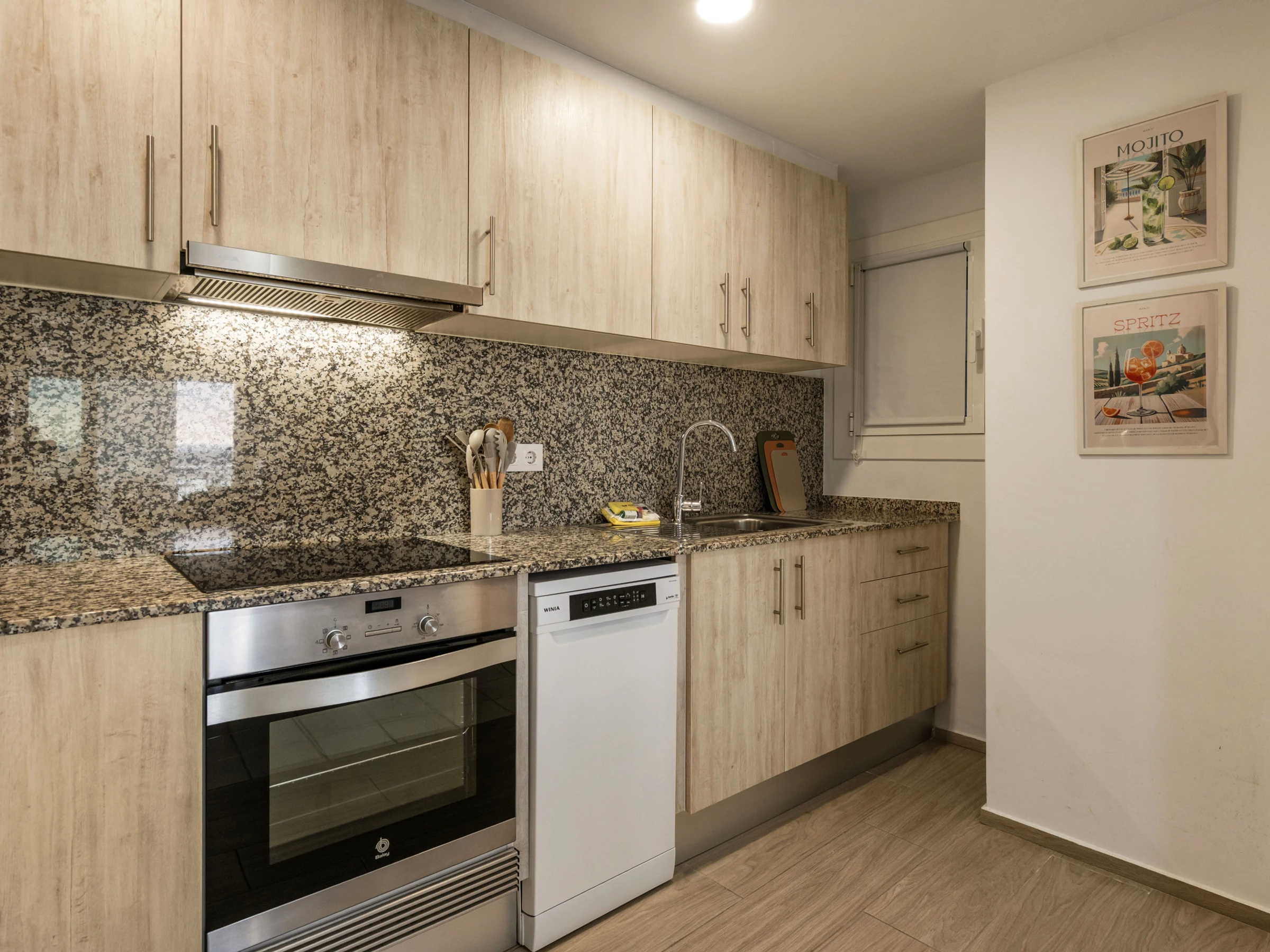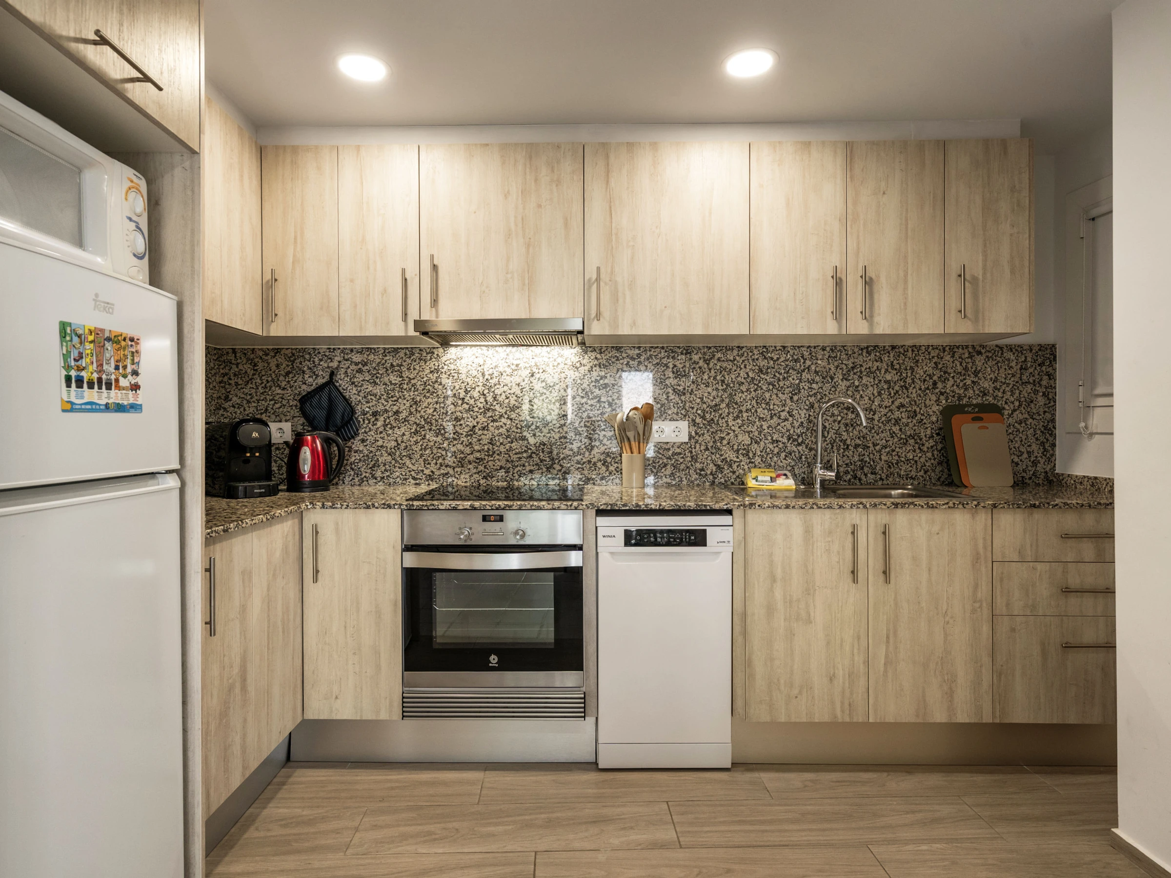 Aire acondicionado, lavadora, lavavajillas, cocina equipada, ropa de cama y toallas.