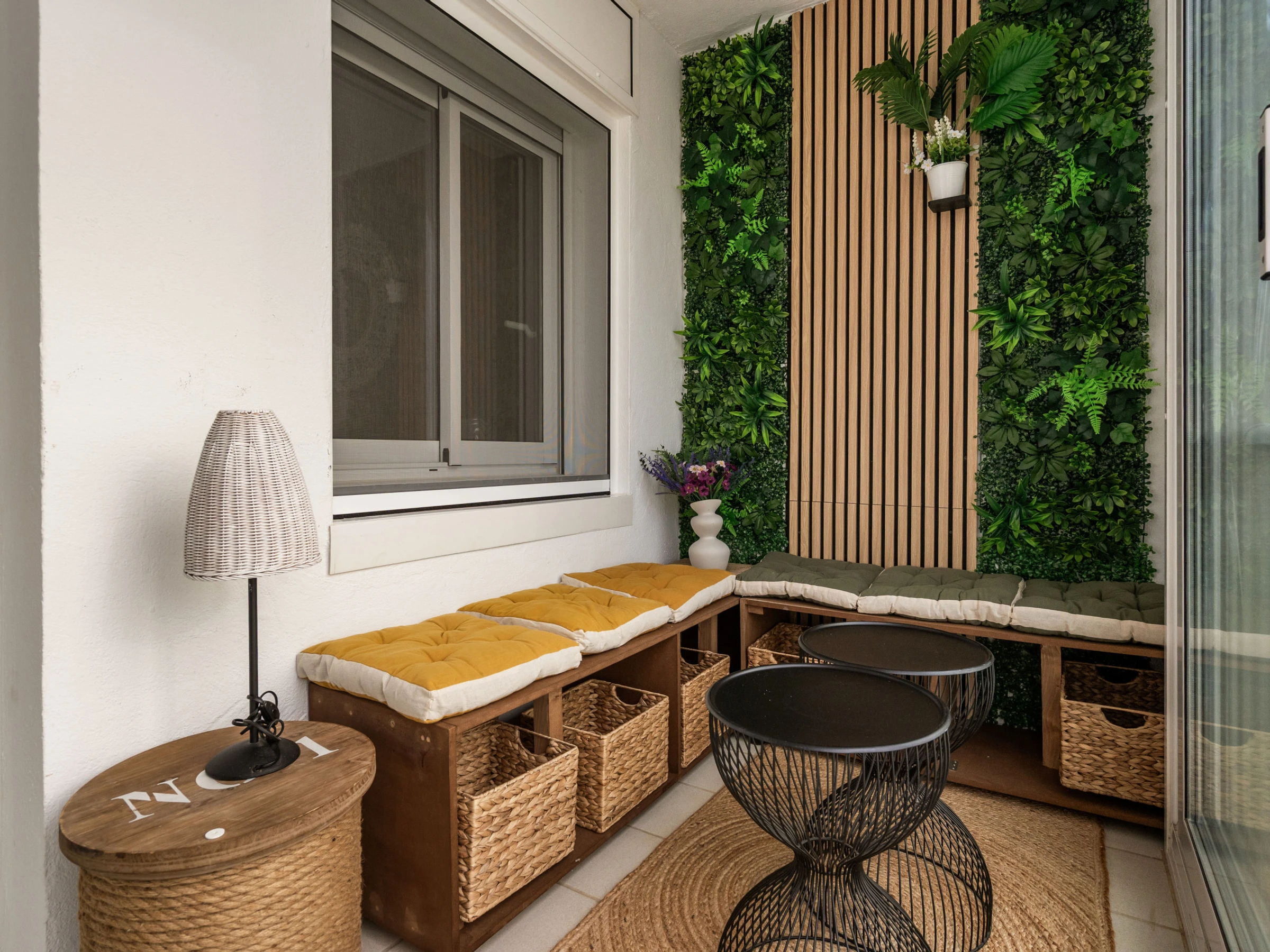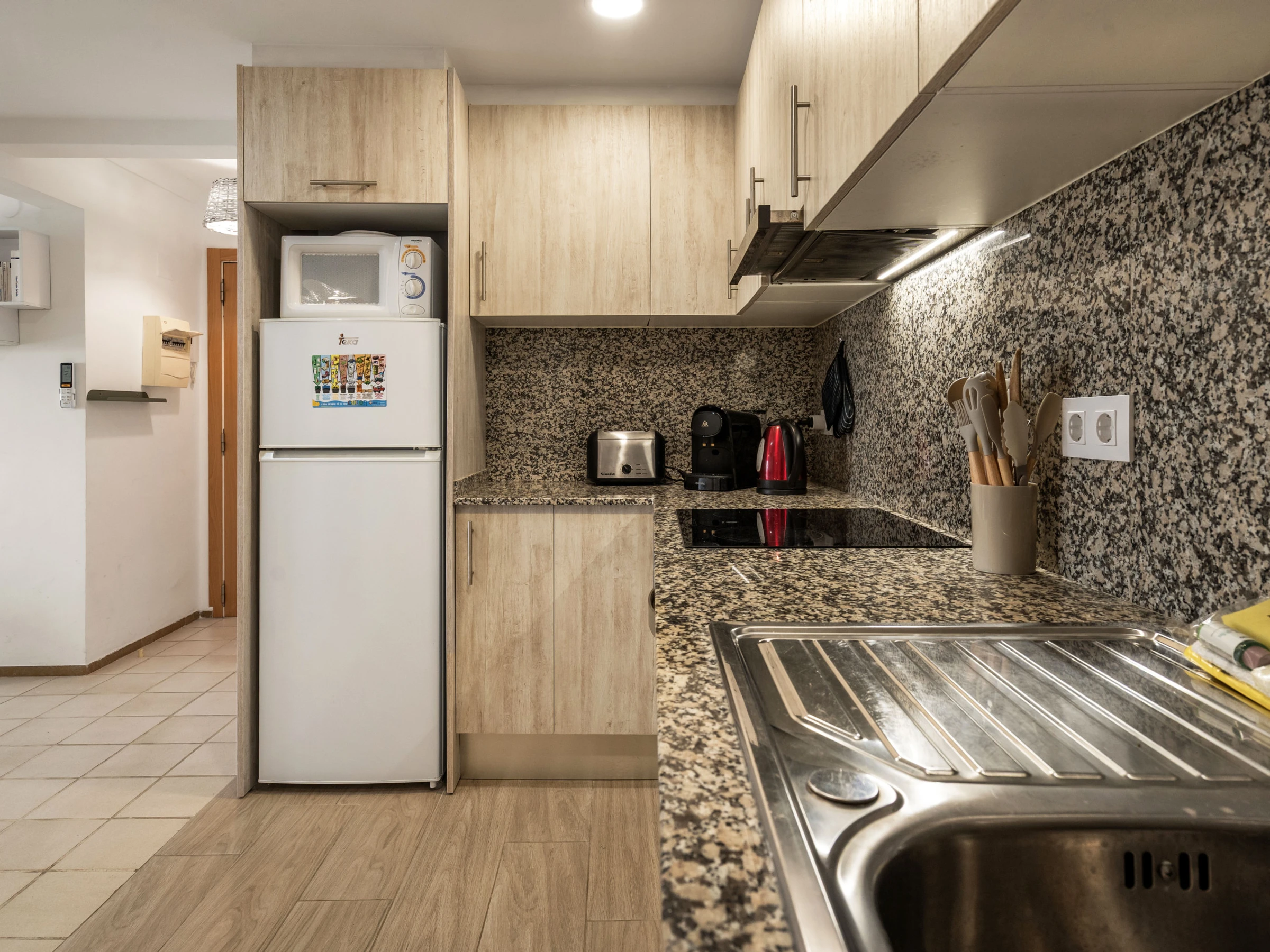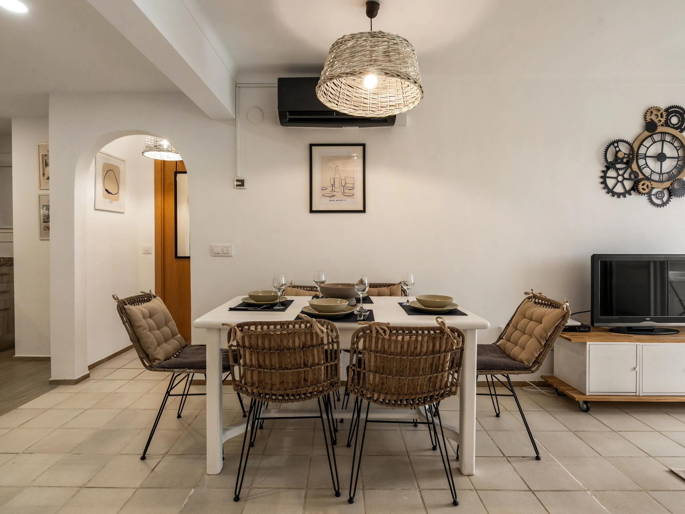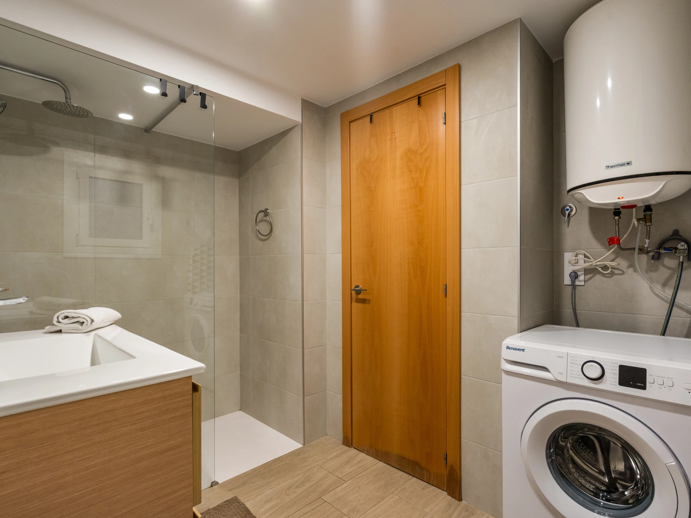 Aire acondicionado, lavadora, lavavajillas, cocina equipada, ropa de cama y toallas.