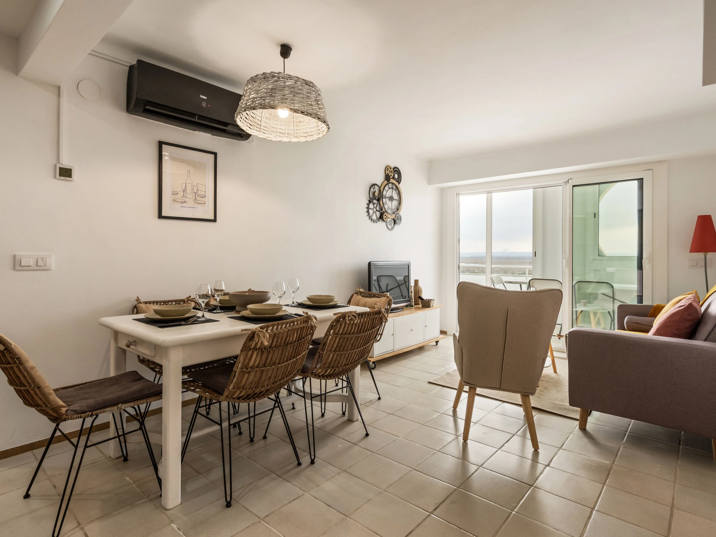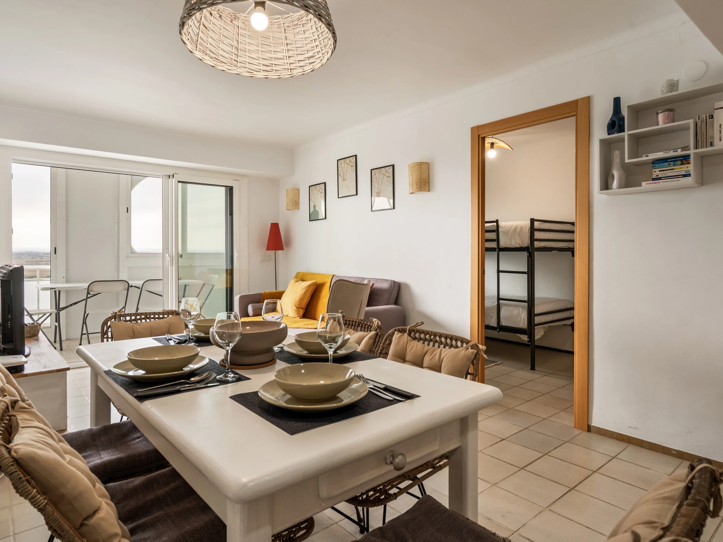 Apartamento renovado con balcón y vistas al mar, ideal para estancias en Empuriabrava de hasta 6 personas. Dispone de salón-comedor con sofá cama doble, cocina completa, 2 dormitorios y baño completo. Una opción cómoda para disfrutar de la playa y la zona con una distribución práctica para familias o grupos.