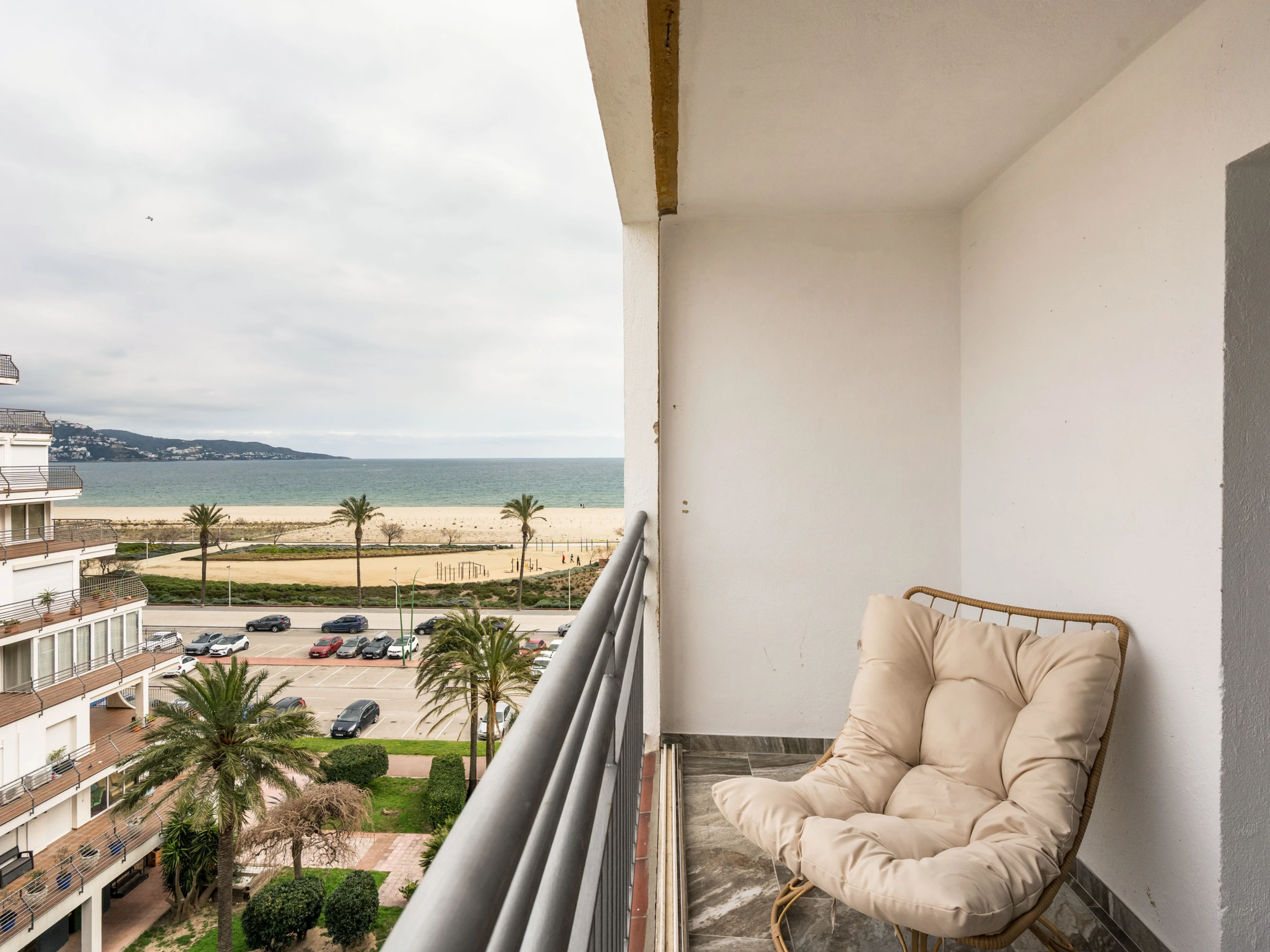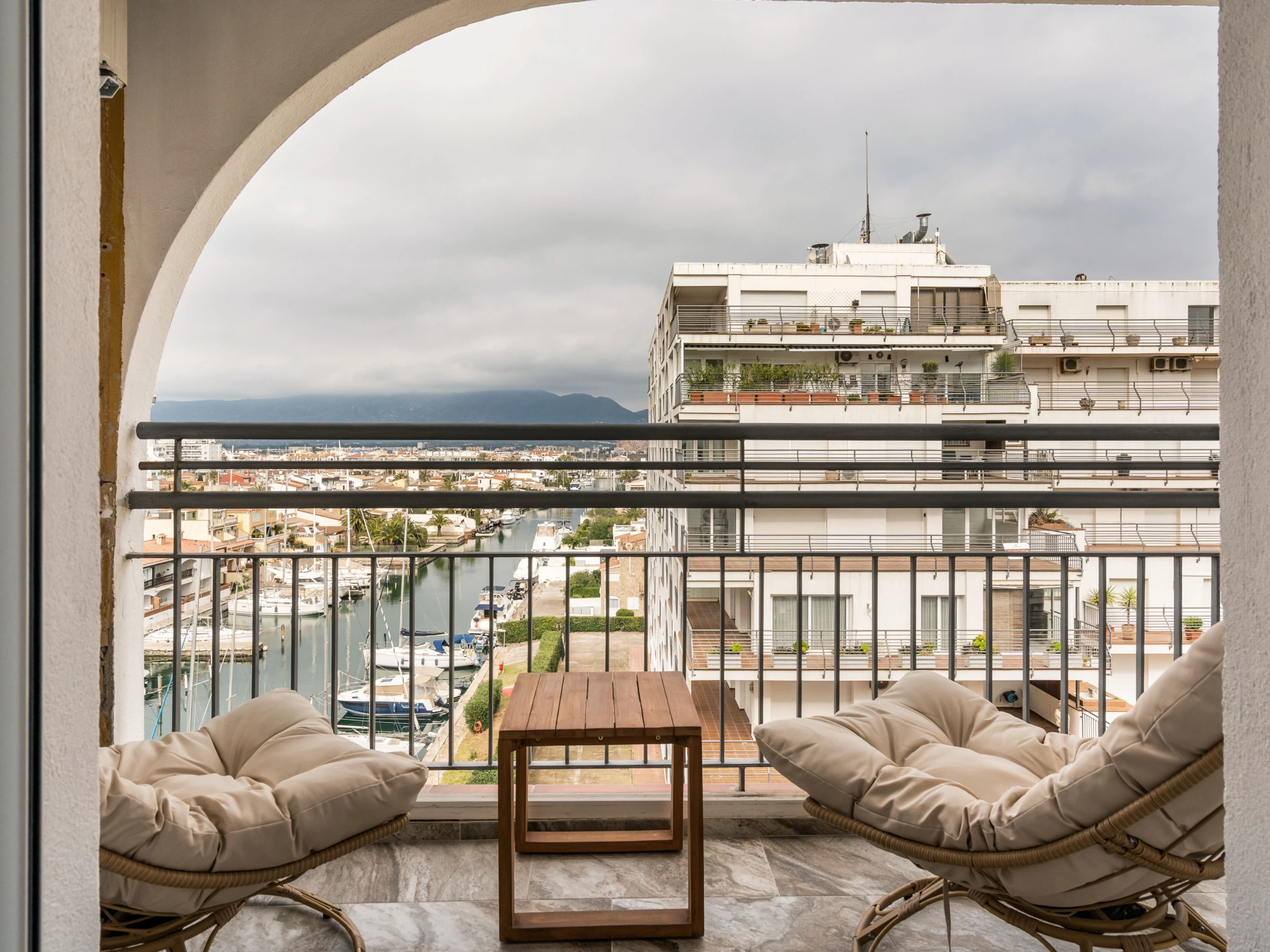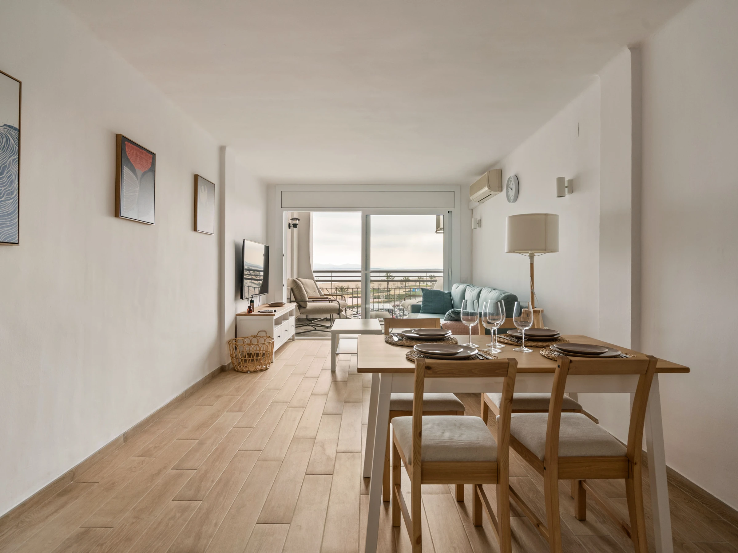 Apartamento frente al mar en Empuriabrava, ideal para estancias de hasta 4 personas. Dispone de 1 dormitorio con cama doble, salón-comedor con sofá cama, cocina equipada, baño completo y espacio exterior para disfrutar de las vistas. Incluye aire acondicionado. Se admiten mascotas de raza chica.
