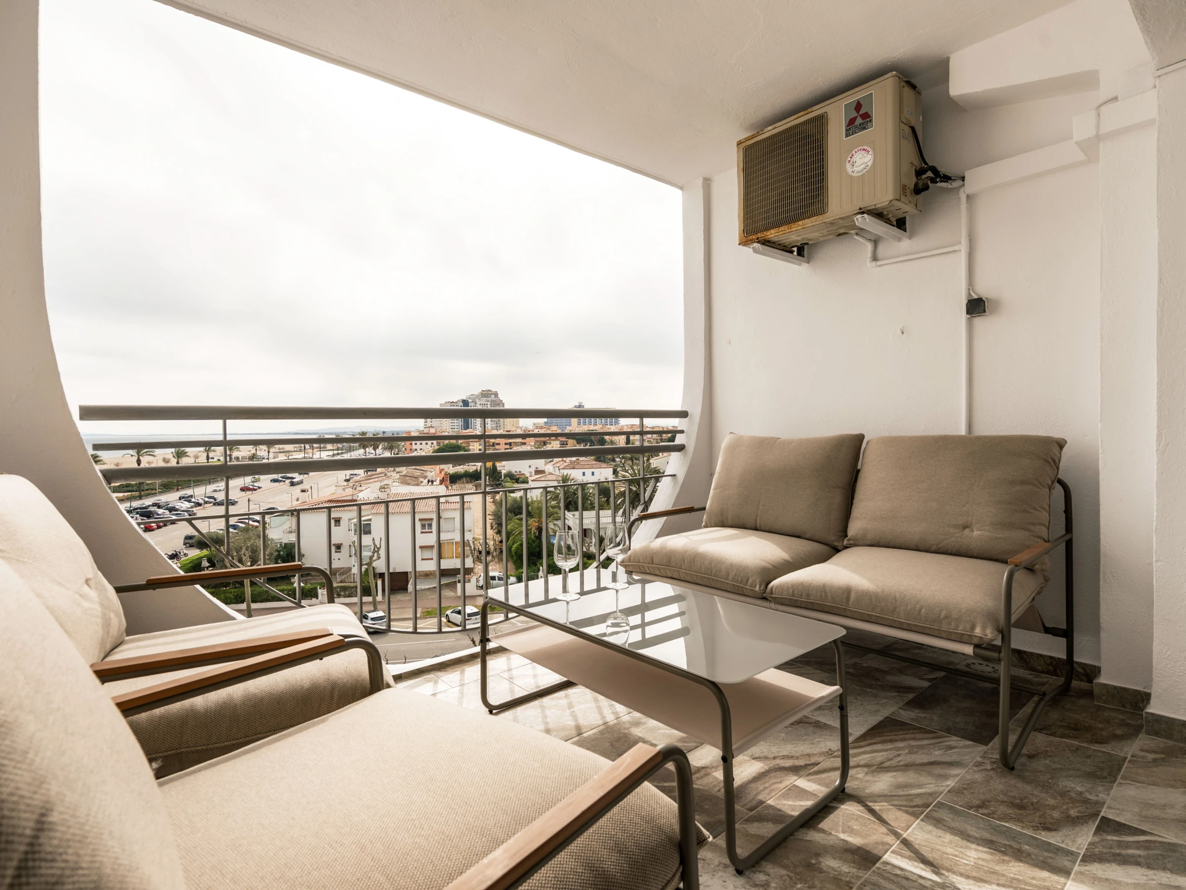 Exterior: balcón + terraza con vista al mar