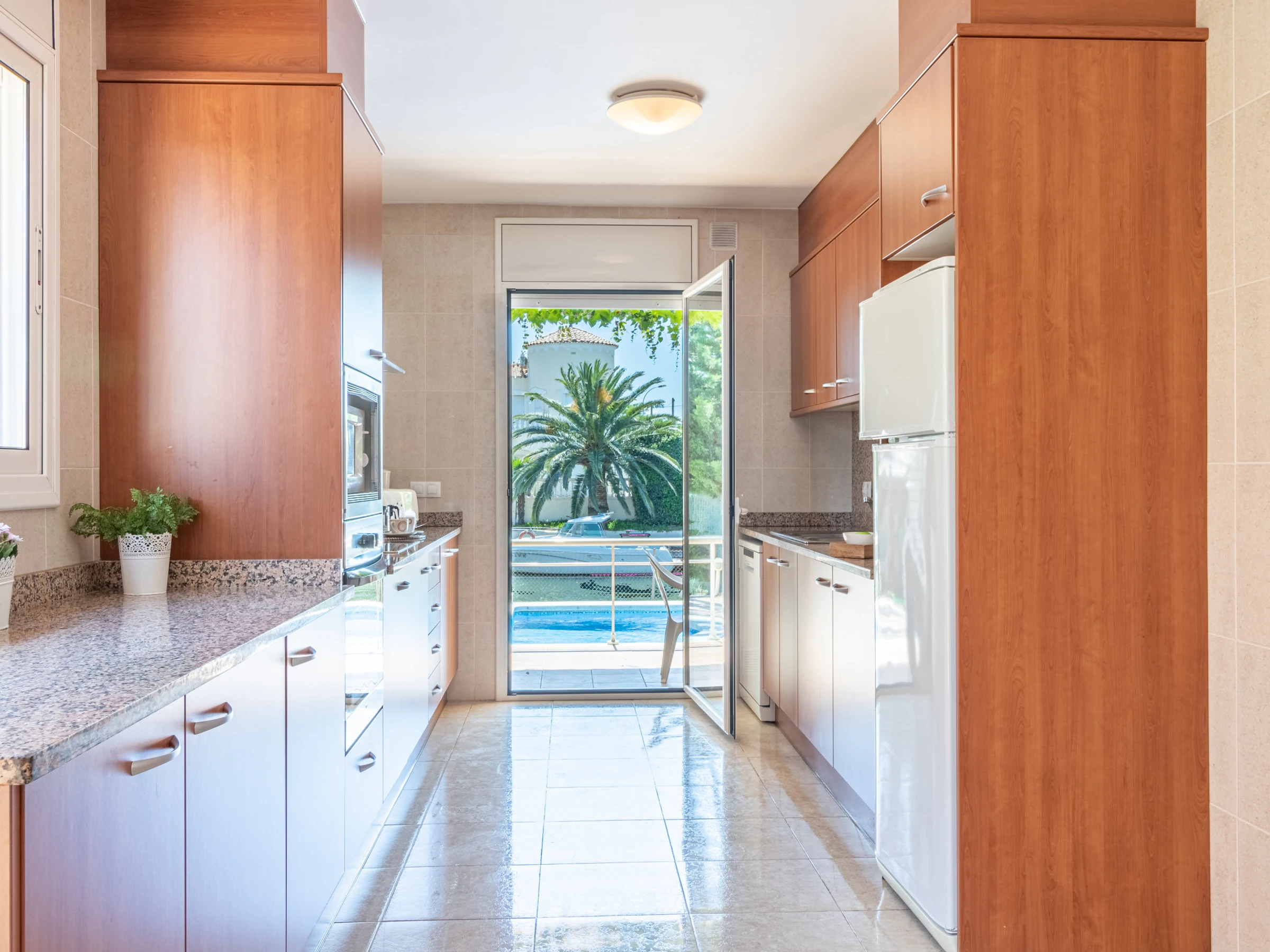 La villa en Empuriabrava posee 5 dormitorios y capacidad para 9 personas. Alojamiento de 160 m² confortable y grande, con vistas a la piscina.