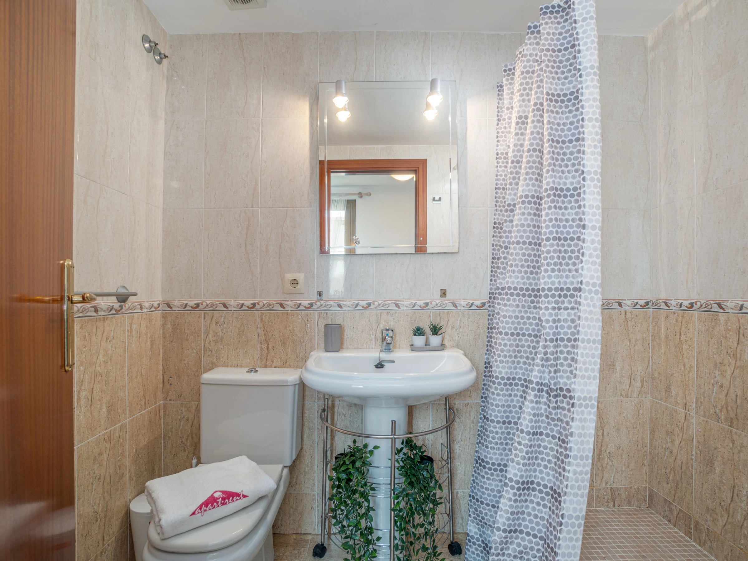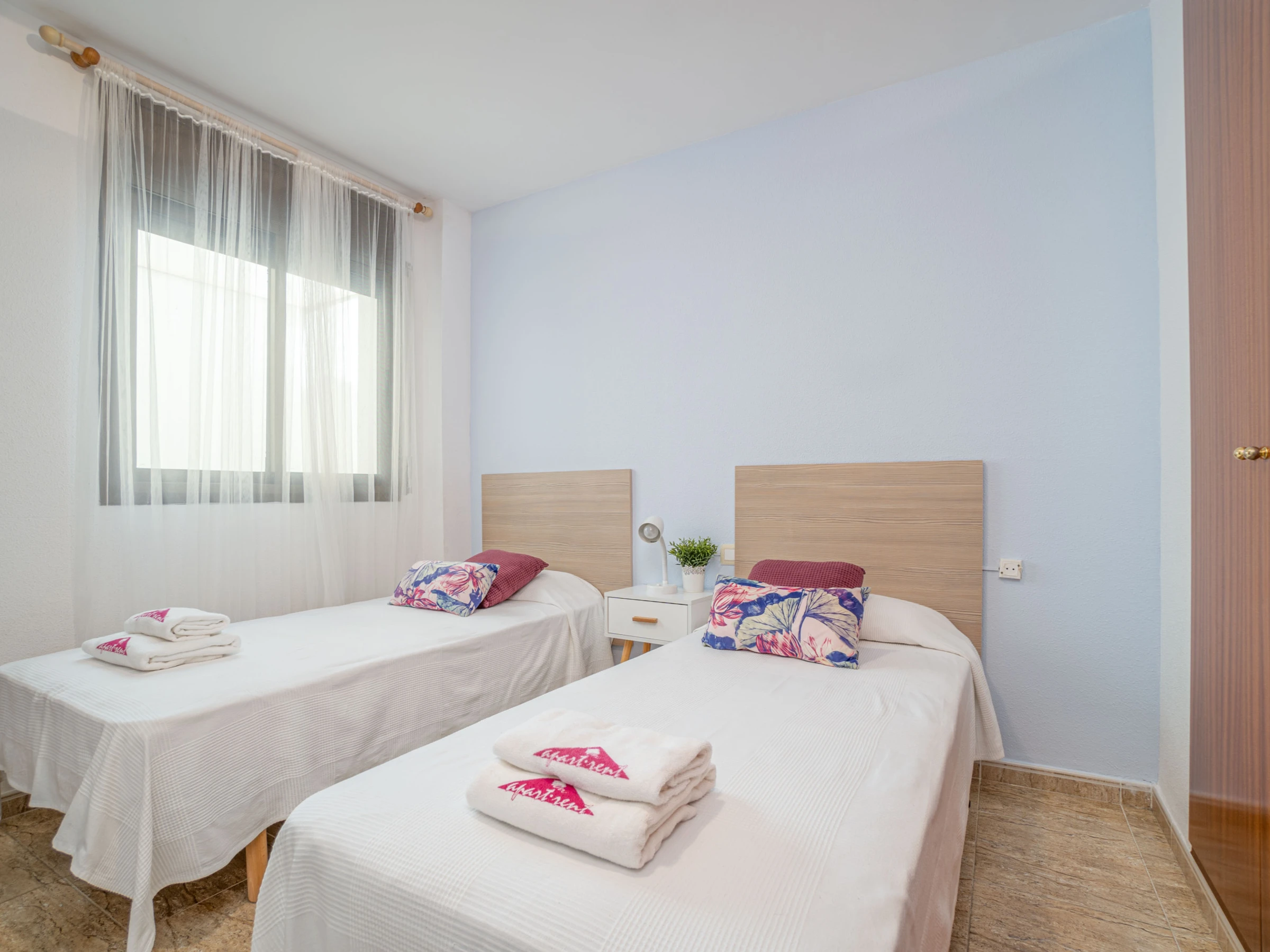 El alojamiento dispone de ascensor, mobiliario de jardín, terraza, plancha, acceso a internet (wifi), calefacción por bomba de calor, aire acondicionado en el salón y en algunos dormitorios, piscina comunitaria, televisión con canales vía satélite (idiomas: español, alemán y francés) y posibilidad de parking cubierto en edificio cercano.