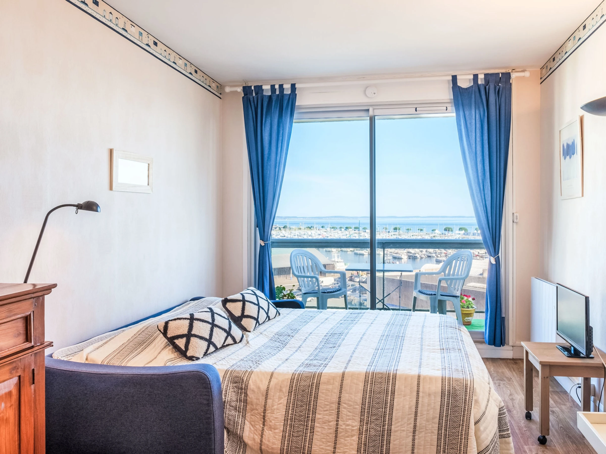 Estudio cómodo con vista al puerto