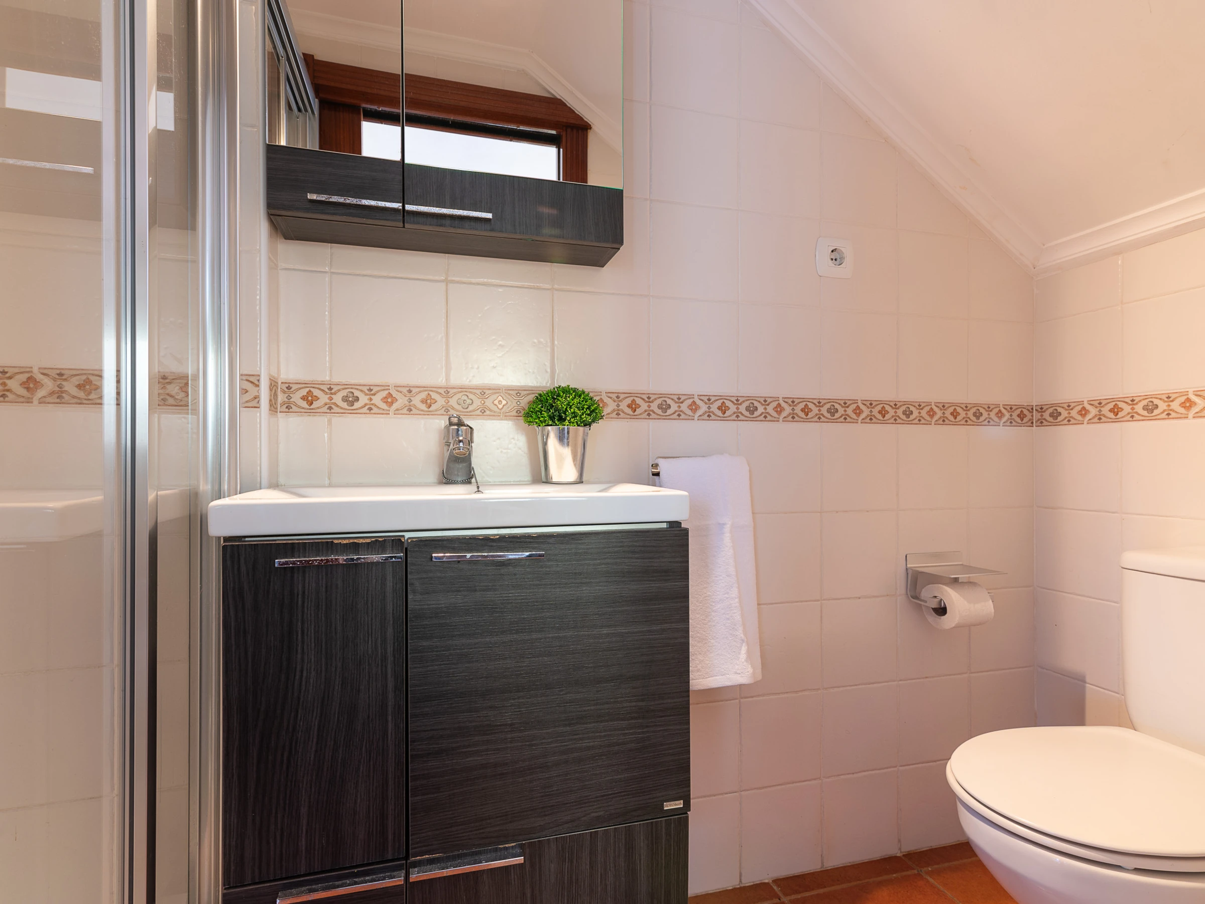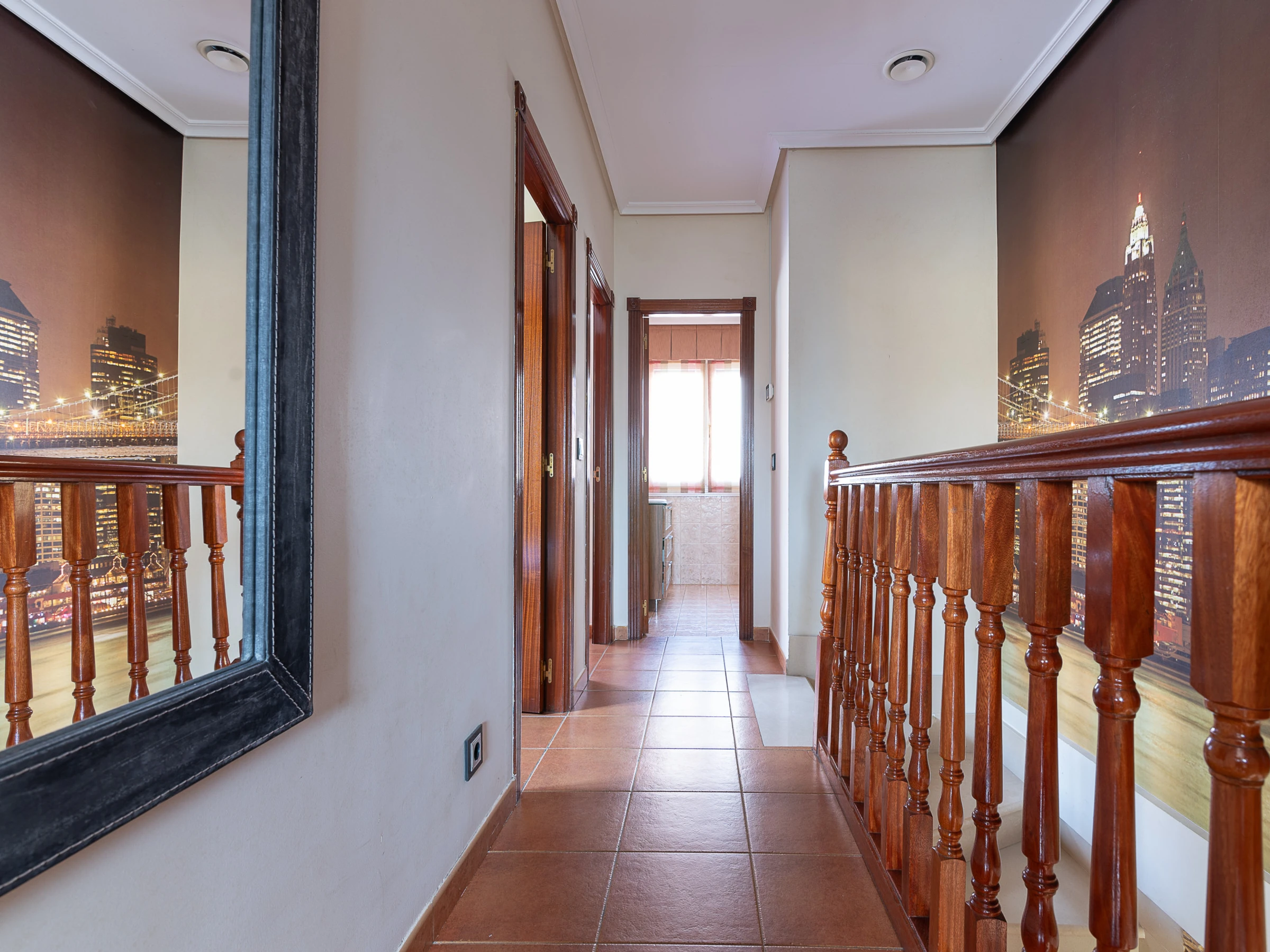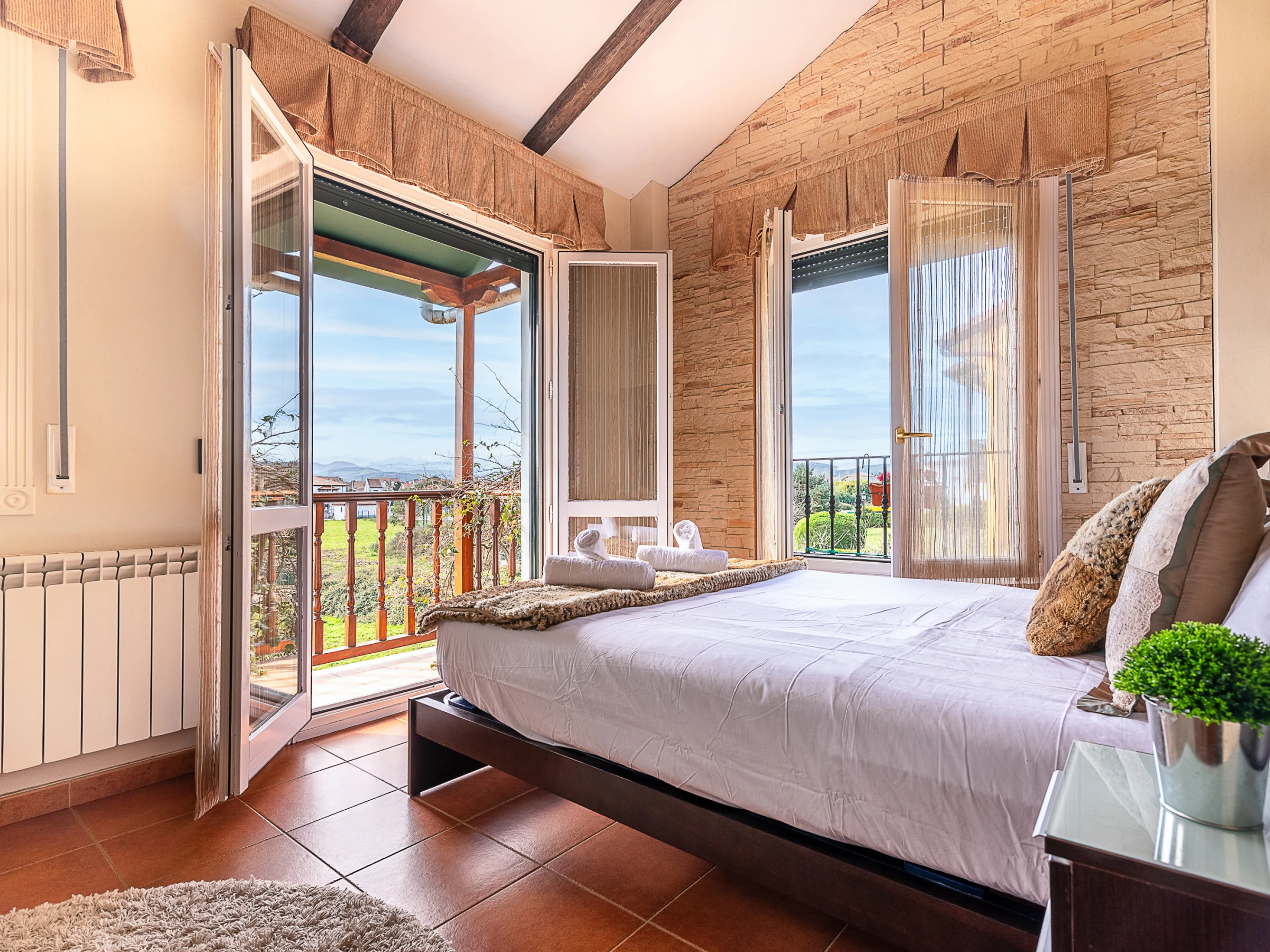 En la primera planta, tres acogedoras habitaciones dobles y otro baño completo. La habitación principal, dispone de una cama supletoria, para utilizar cuando sea necesario.