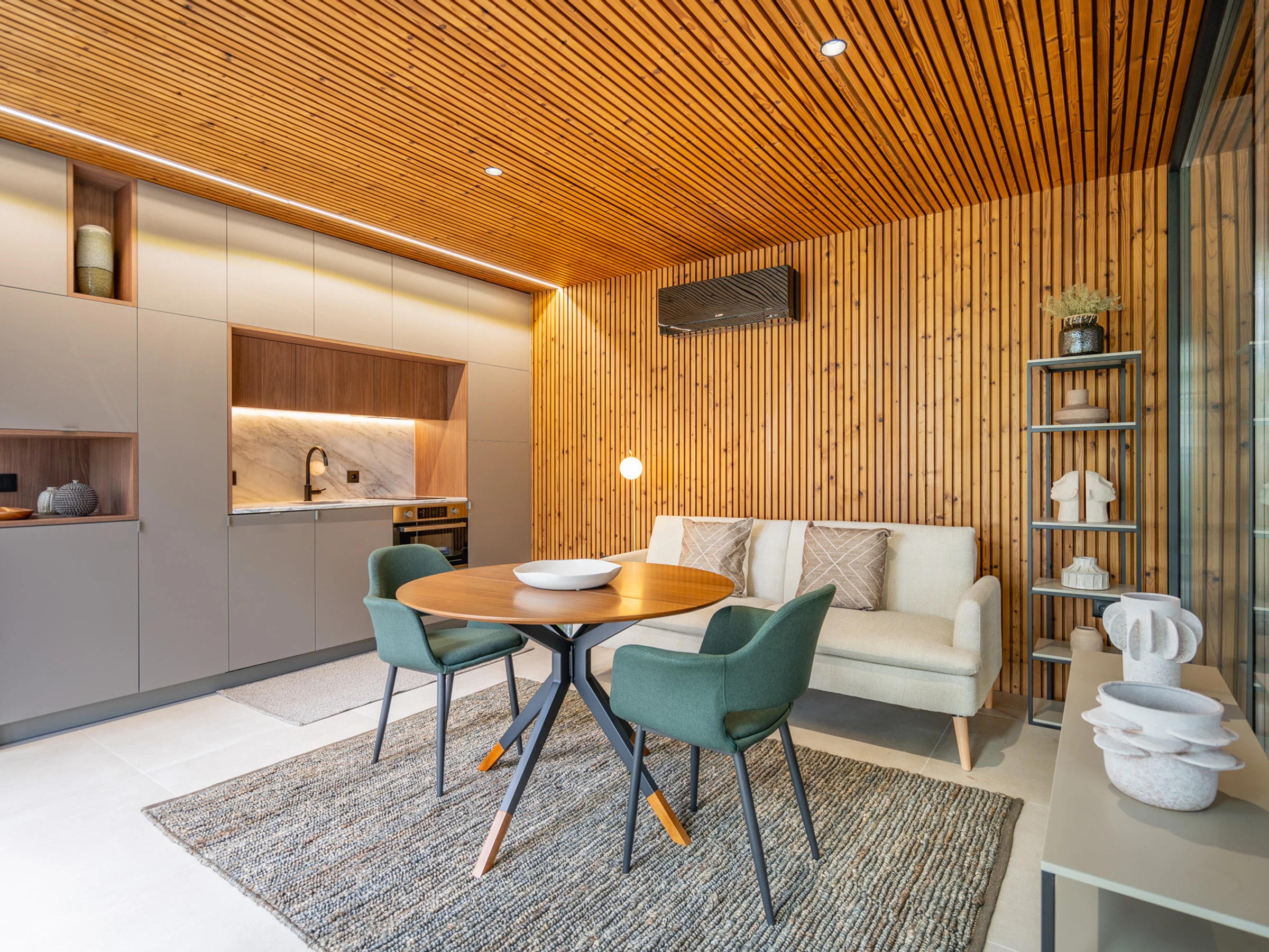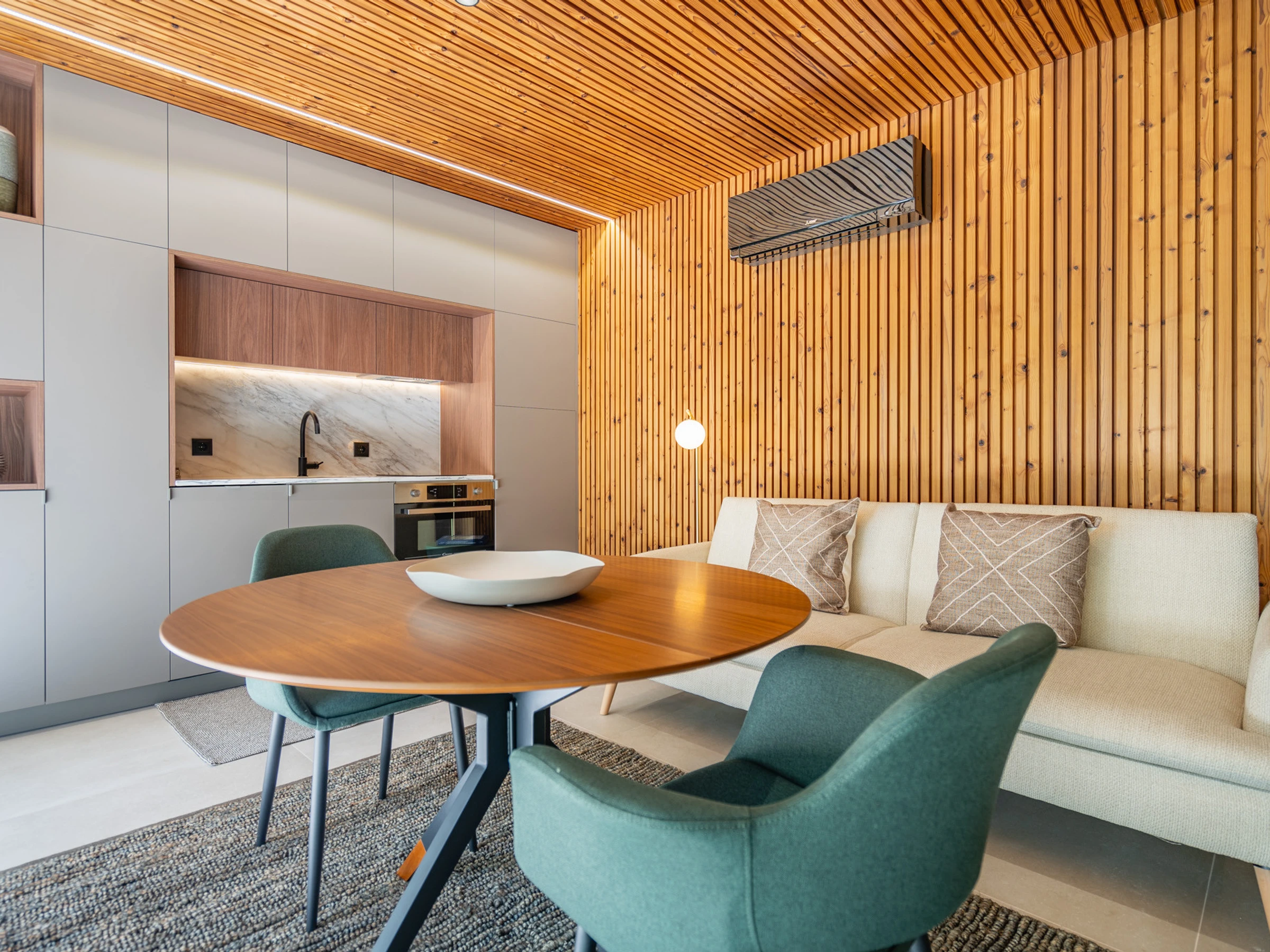 En el interior de la Villa, encontrará todas las comodidades para su estancia. La cocina totalmente equipada con placa, horno microondas combinado, frigorífico, lavavajillas, máquina de Café Nespresso Vertuo y diversos utensilios, le permite preparar deliciosas comidas con facilidad. Tenemos disponible Smart TV con canales por cable, WI-FI y aire acondicionado. Disponemos además de secador de pelo, ropa de cama y baño y gel de baño para su estancia.