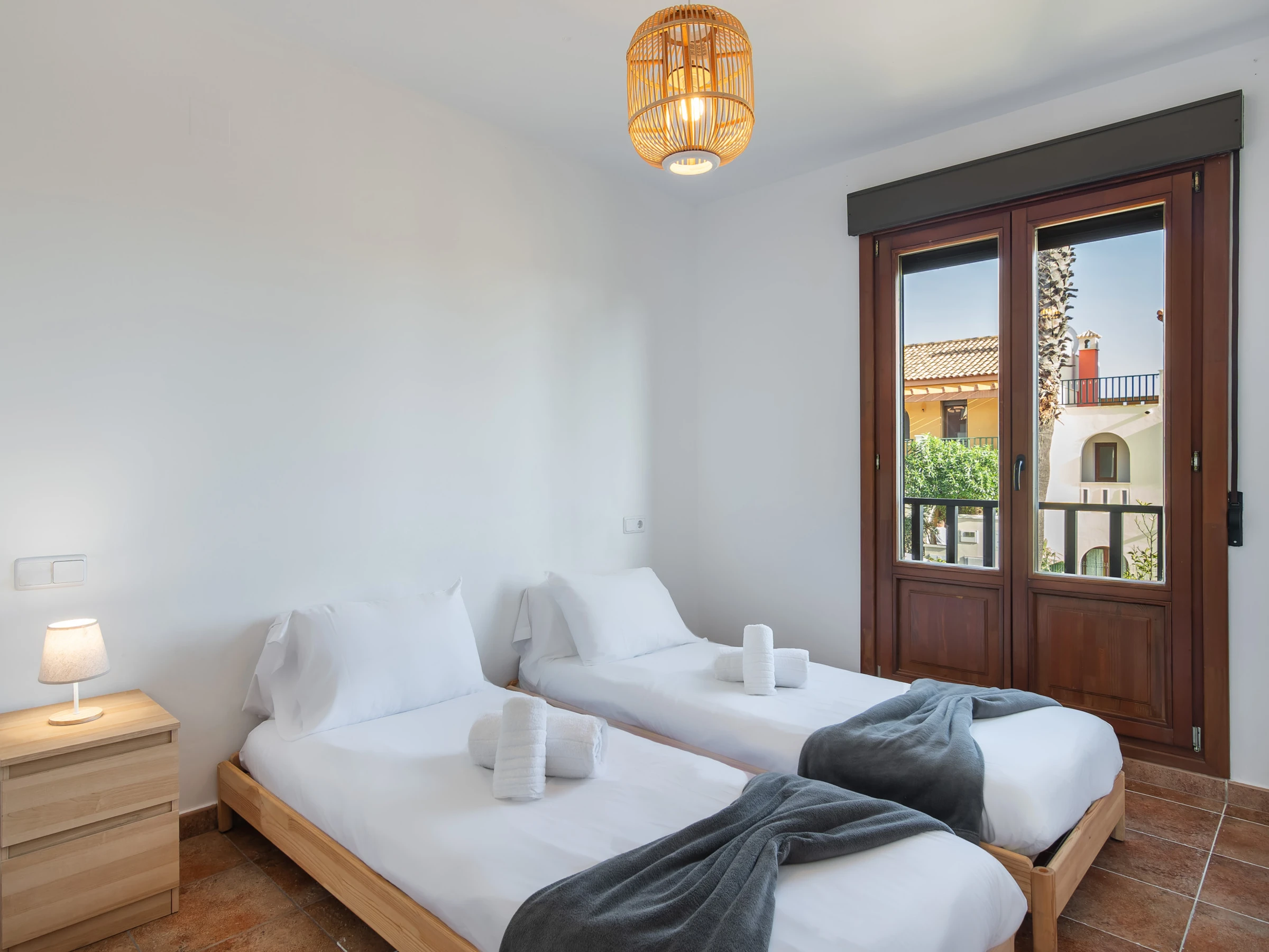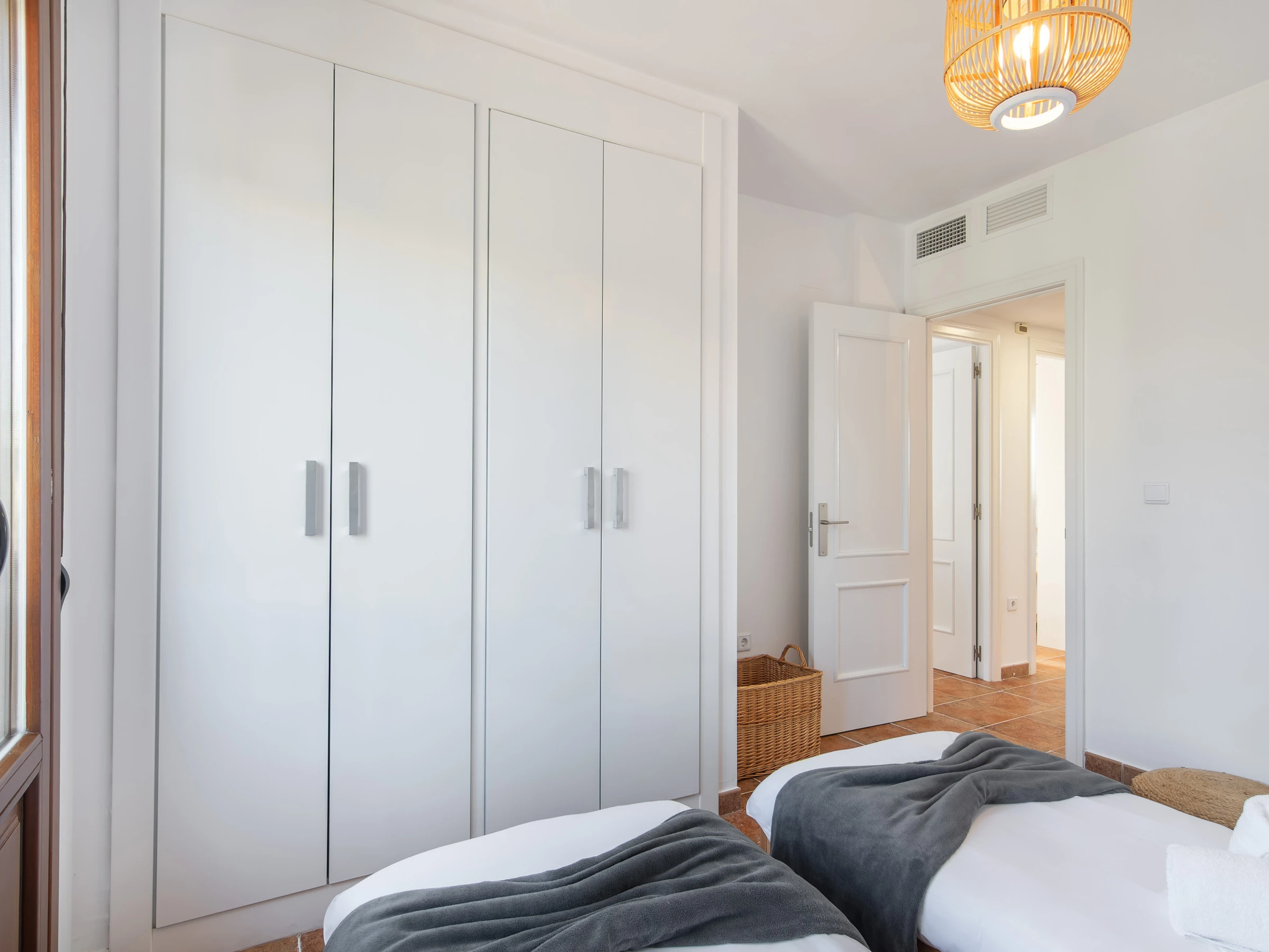 El apartamento cuenta con una distribución práctica que incluye 2 baños (uno con ducha y otro con inodoro), 5 camas (1 cama doble y 4 individuales) y está totalmente preparado para hacer de tu estancia una experiencia agradable. Dispone de aire acondicionado y calefacción por bomba de calor para garantizar tu confort en cualquier época del año.