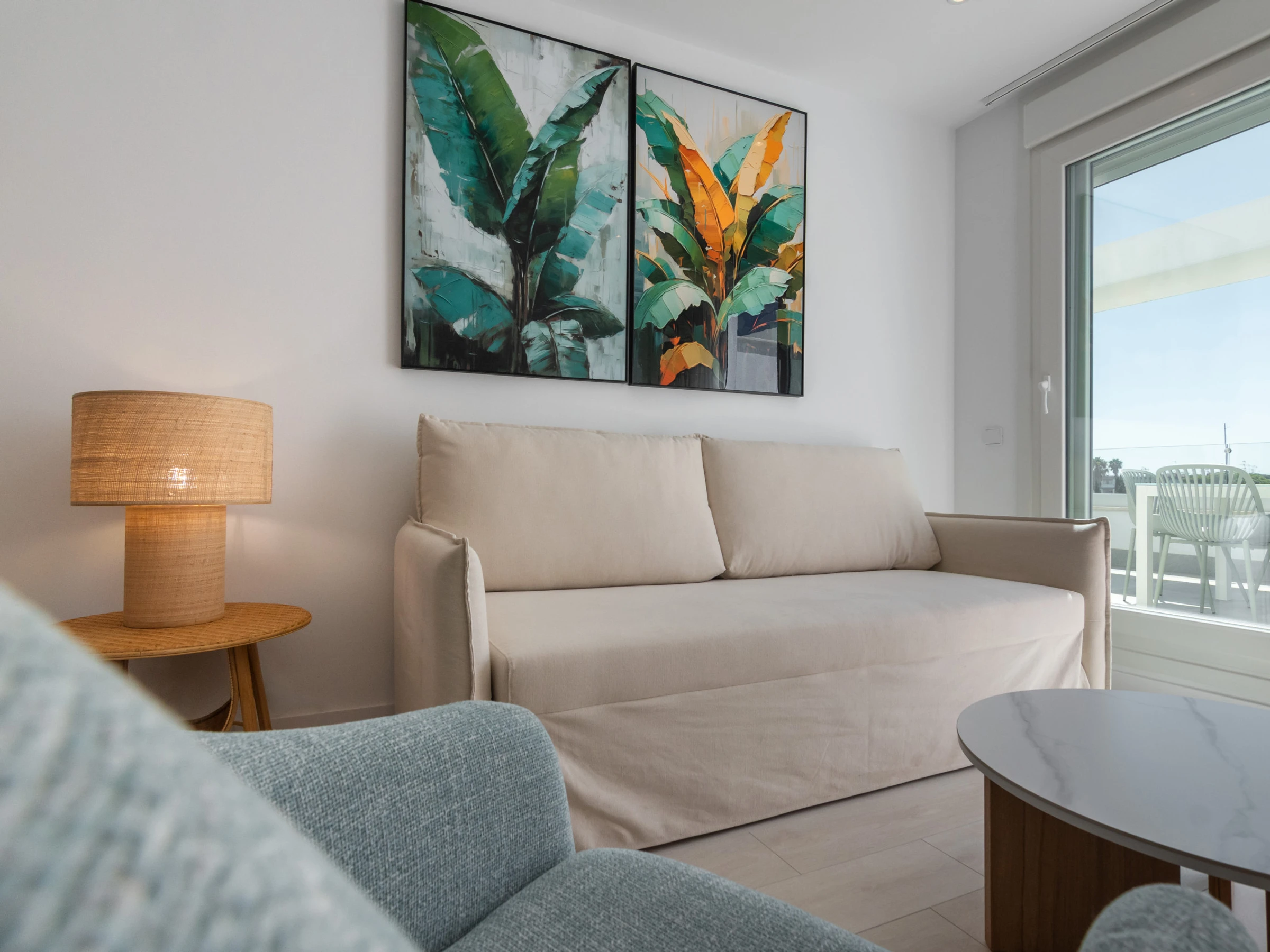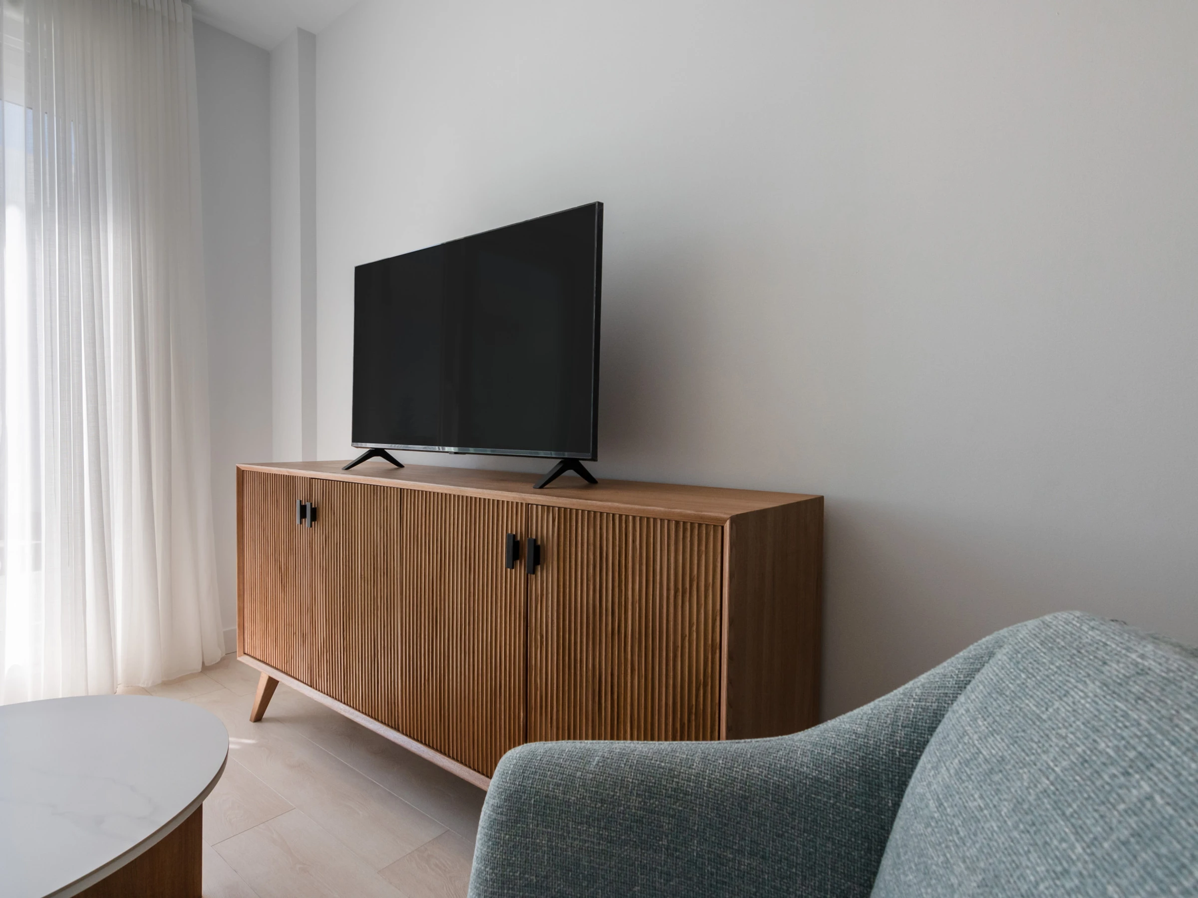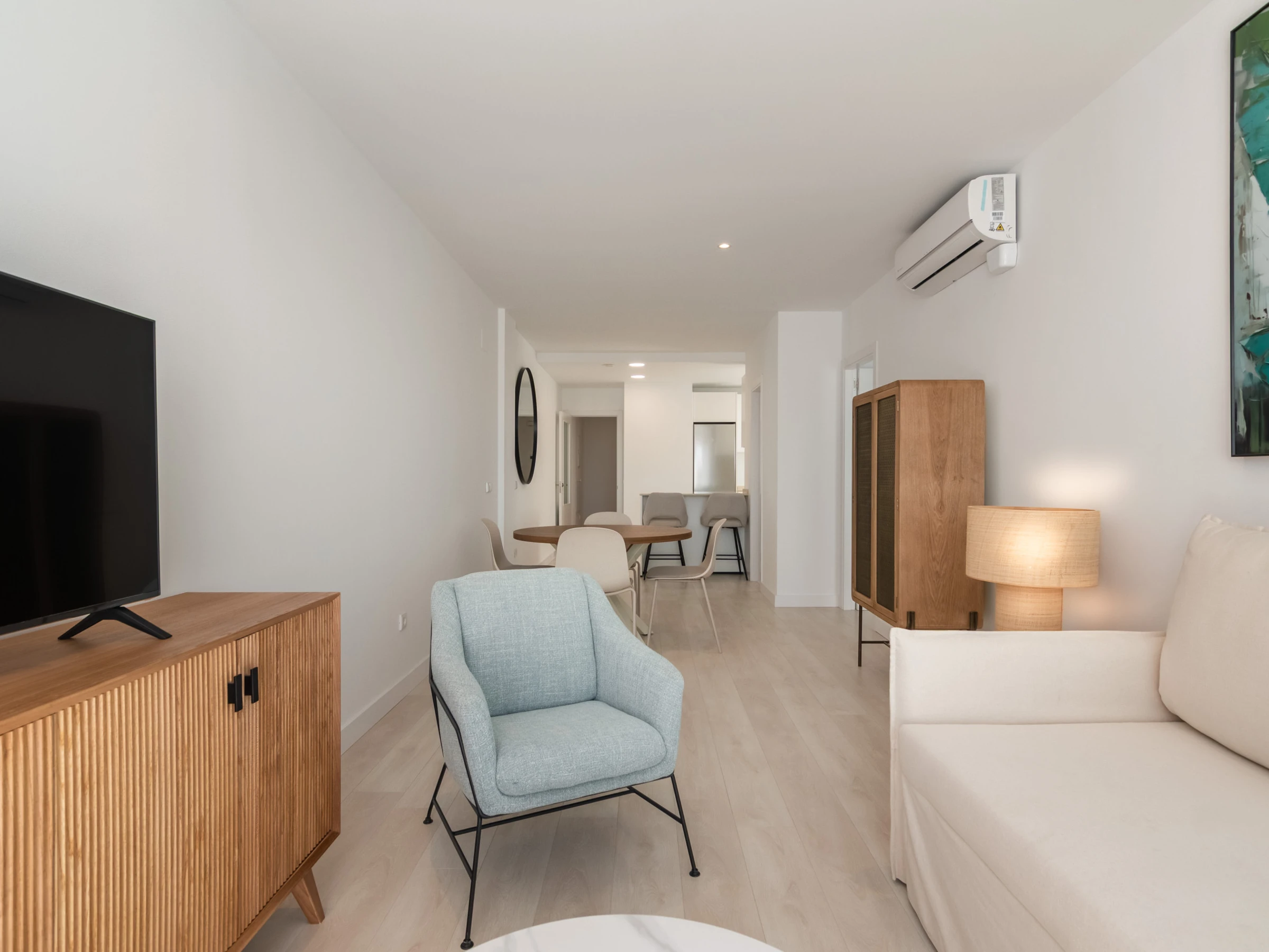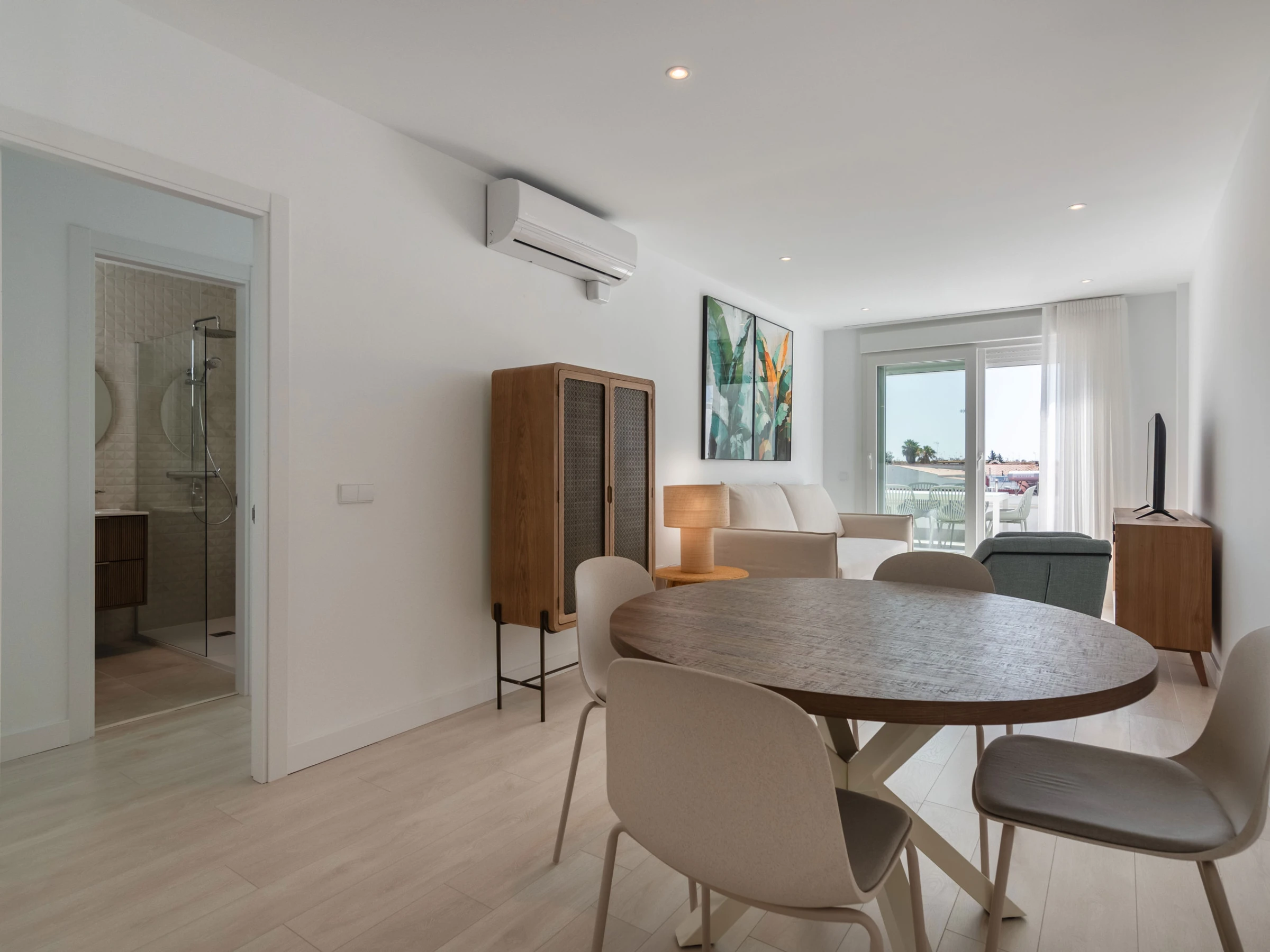 El apartamento cuenta con todas las comodidades para hacer tu estancia lo más confortable posible. Disfruta de aire acondicionado y calefacción por bomba de calor, conexión WiFi gratuita y una cocina completamente equipada con electrodomésticos como nevera, lavadora, lavavajillas, microondas, horno, cafetera, tostadora y exprimidor.
