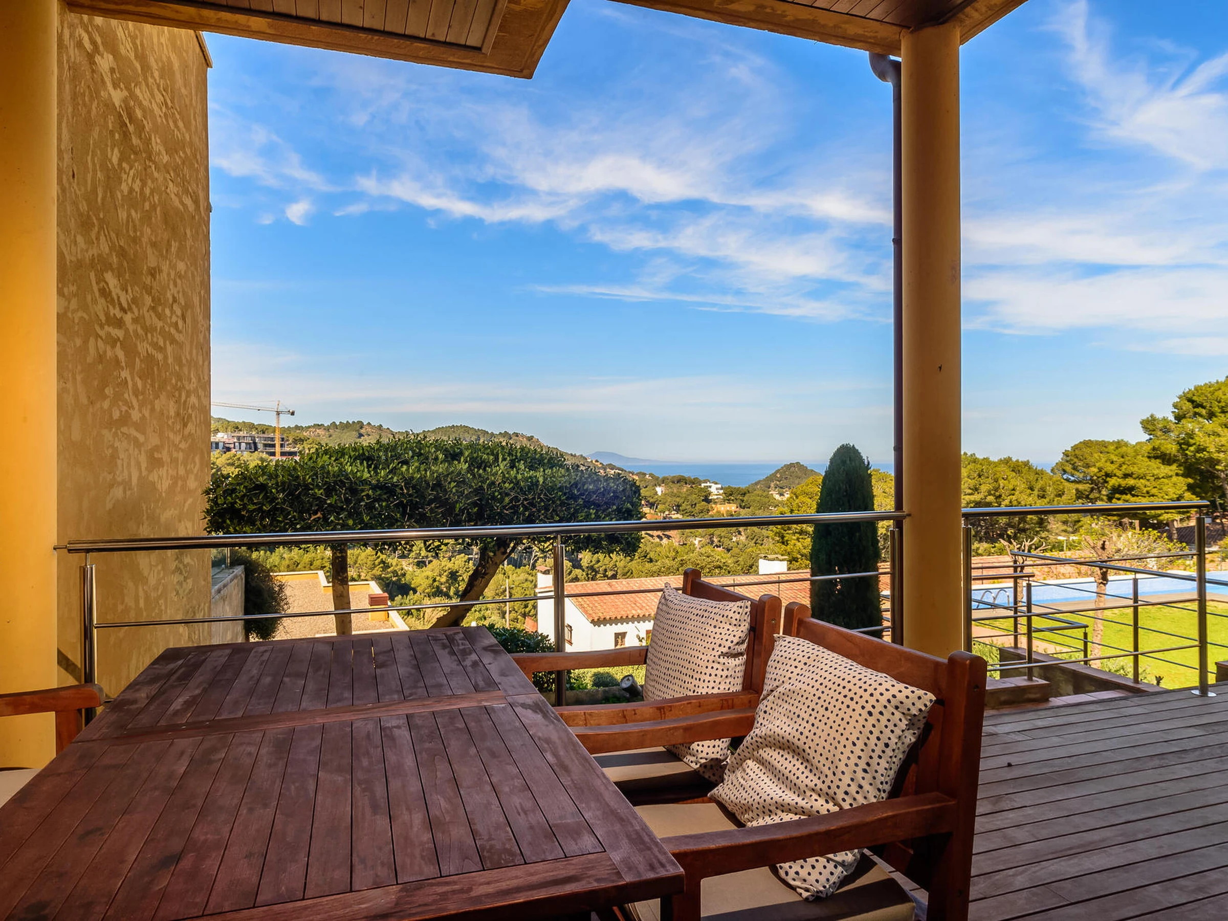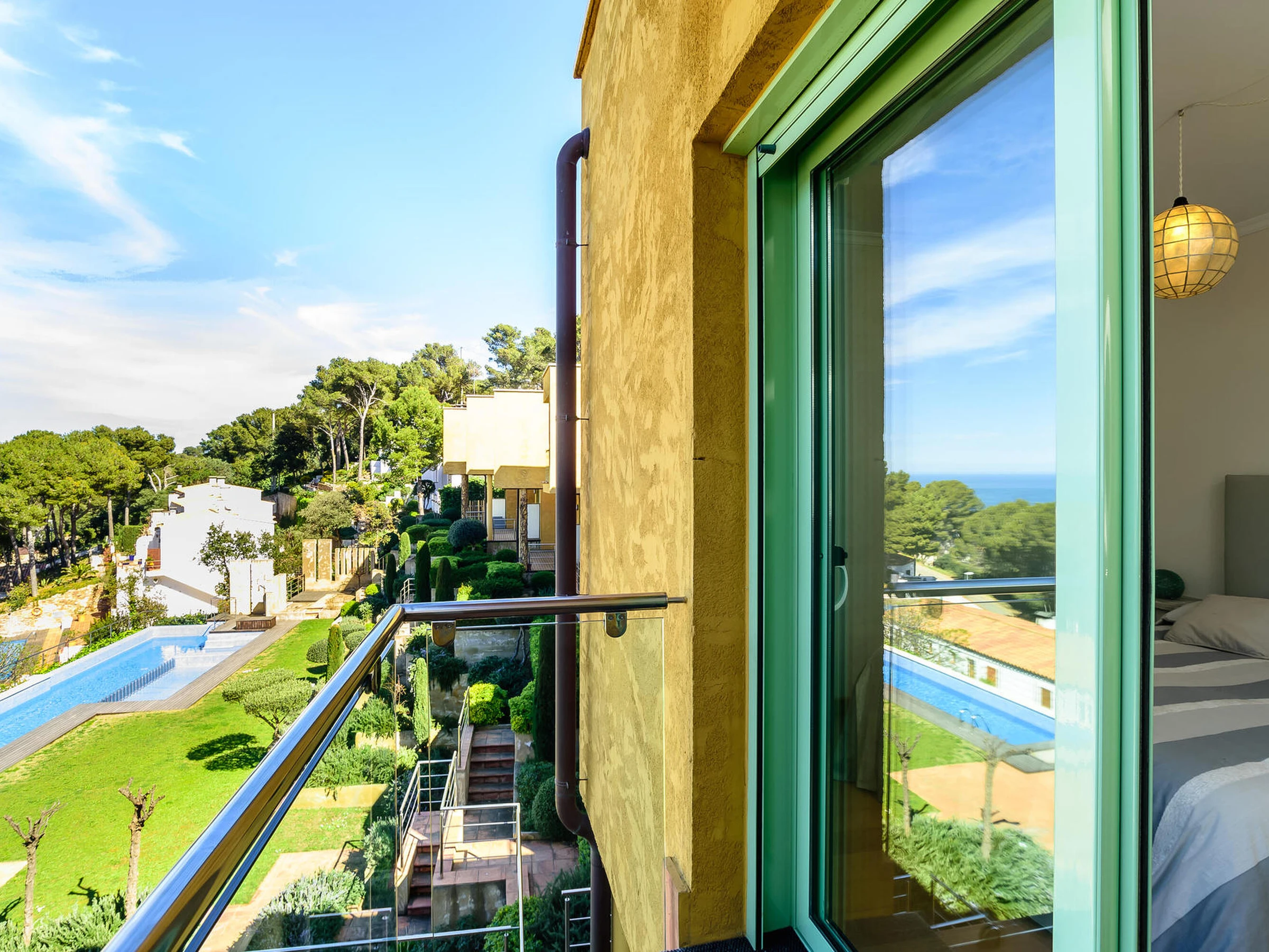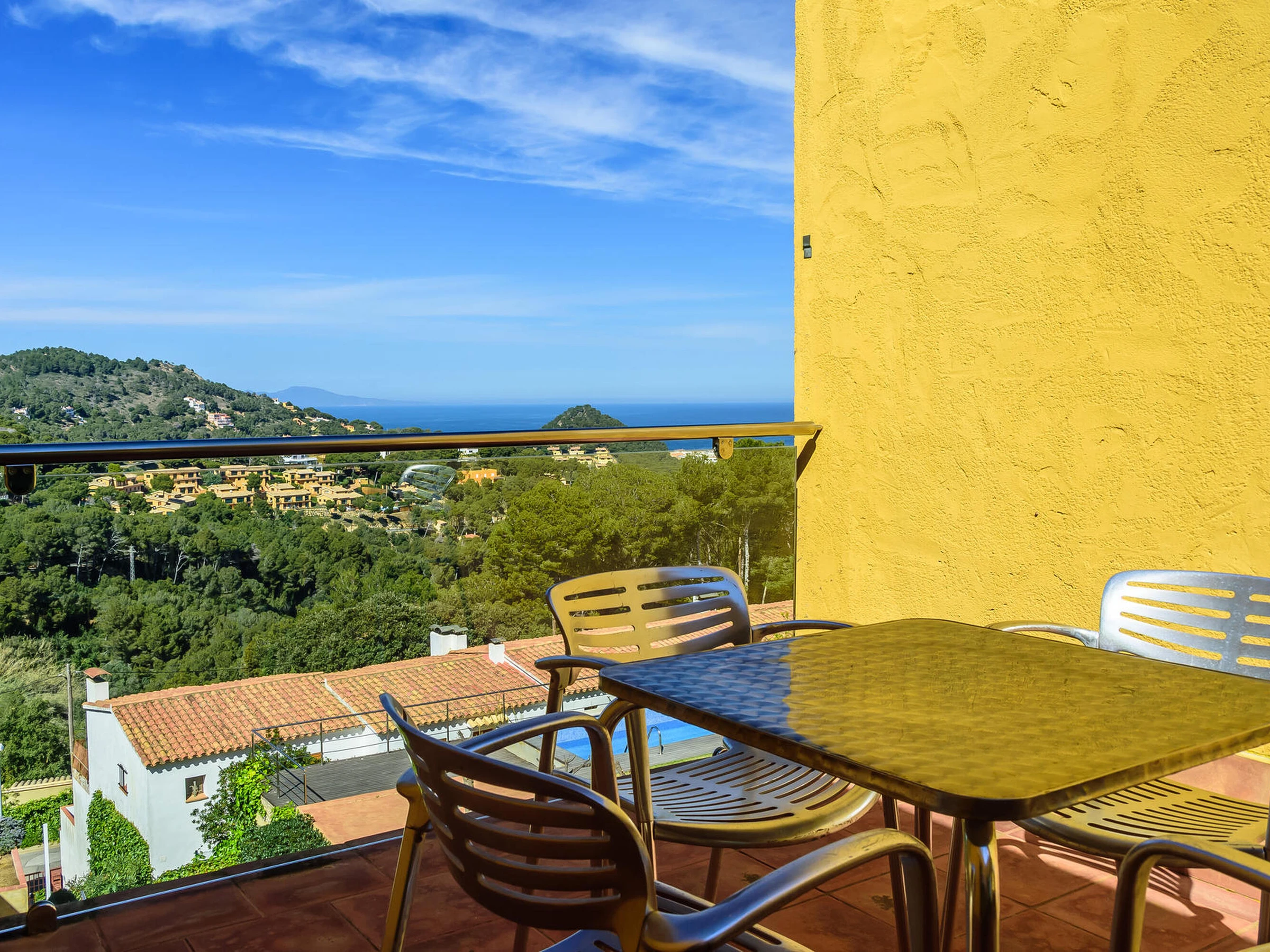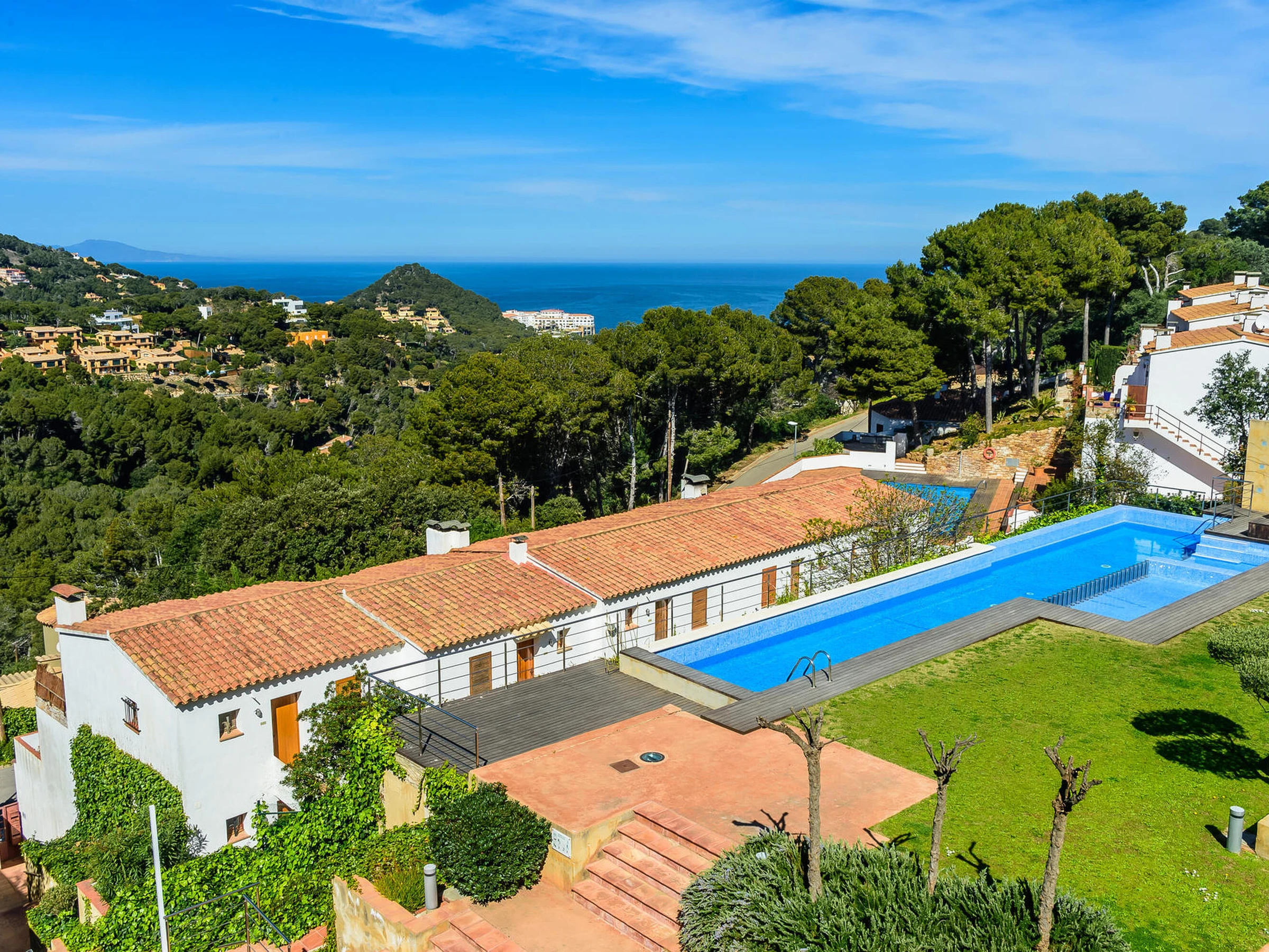 Agradable casa adosada con piscina comunitaria y vistas al mar a Sa Tuna, Begur, Costa brava. Se encuentra a menos de 5 minutos en coche de la playa de Sa Tuna y a 10 minutos del centro de Begur Capacidad para 5 personas, 3 habitaciones. La casa está decorada con mucho gusto y cuidada al detalle. Se distribuye en un amplio y acogedor salón comedor con cocina abierta y completamente equipada, baño con ducha. Desde el comedor se puede acceder a la terraza privada con acceso directo a la zona de la piscina y jardín comunitario. En la planta superior encontramos 3 habitaciones, una de ellas es una habitación suite con cama doble, baño con ducha y salida a terraza con vistas al mar, la segunda es una habitación con cama nido y comparte terraza con la suite, la última tiene una cama doble, baño completo con ducha. Acceso a la casa a través de una rampa pronunciada. Servicio de televisión e internet 3G no garantizado debido a una mala cobertura en la zona. Para cualquier duda respecto a esta propiedad, por favor, no dude en contactarnos.