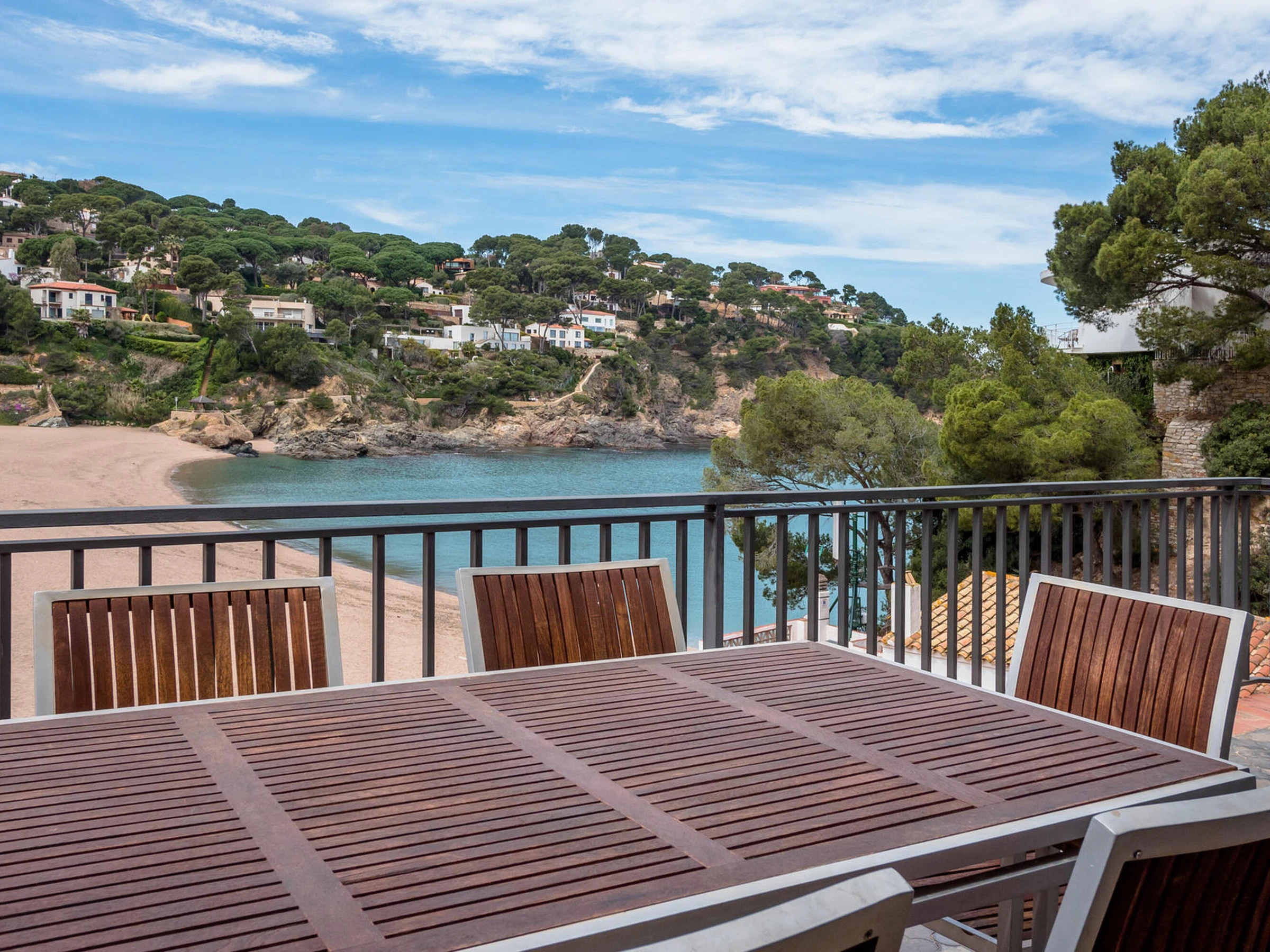 Ático situado a pie de la playa de Sa Riera, a 5 minutos en coche de Begur, Costa Brava Capacidad para 8 personas, 4 habitaciones. Apartamento de origen con mobiliario sencillo. Está distribuido en un espacioso recibidor, salón-comedor con salida a una esplendida terraza sobre la playa de Sa Riera,cocina independiente totalmente equipada y 4 habitaciones dobles con camas individuales, una con salida a una terraza, otra tipo suite con baño con ducha y vistas al mar, la tercera tipo suite con baño con ducha y literas y la ultima tambien tipo suite con baño con [hidden] tres baños estan reformados. Hay escaleras para acceder al apartamento. Plaza de parquin opcional para un vehículo, importe 12€ al día. La reserva de la plaza de parquin debe ser igual a la estancia. No se aceptan mascotas. Servicio de televisión e internet 3G no garantizado debido a una mala cobertura en la zona Para cualquier pregunta no dude en ponerse en contacto con nosotros.
