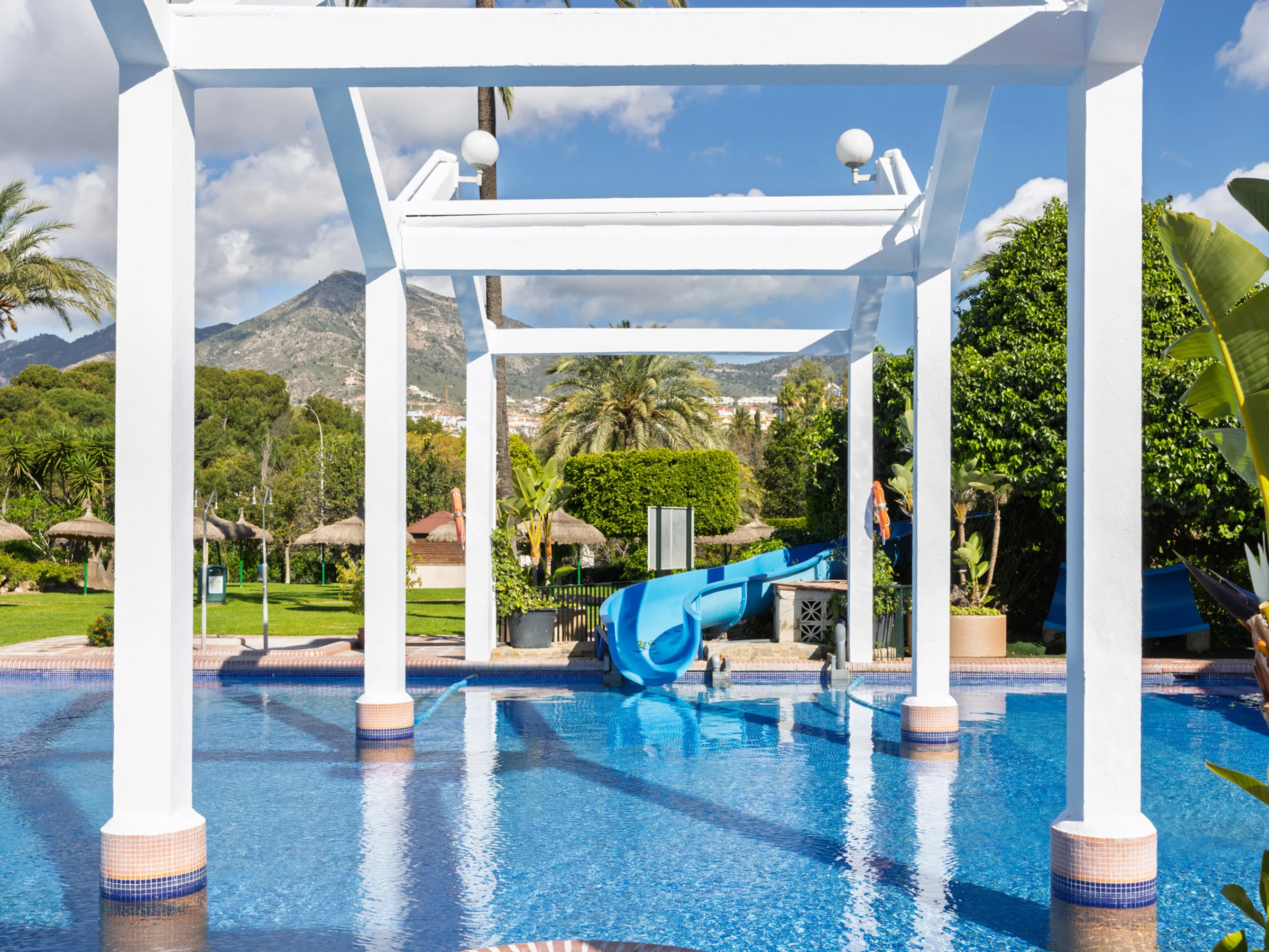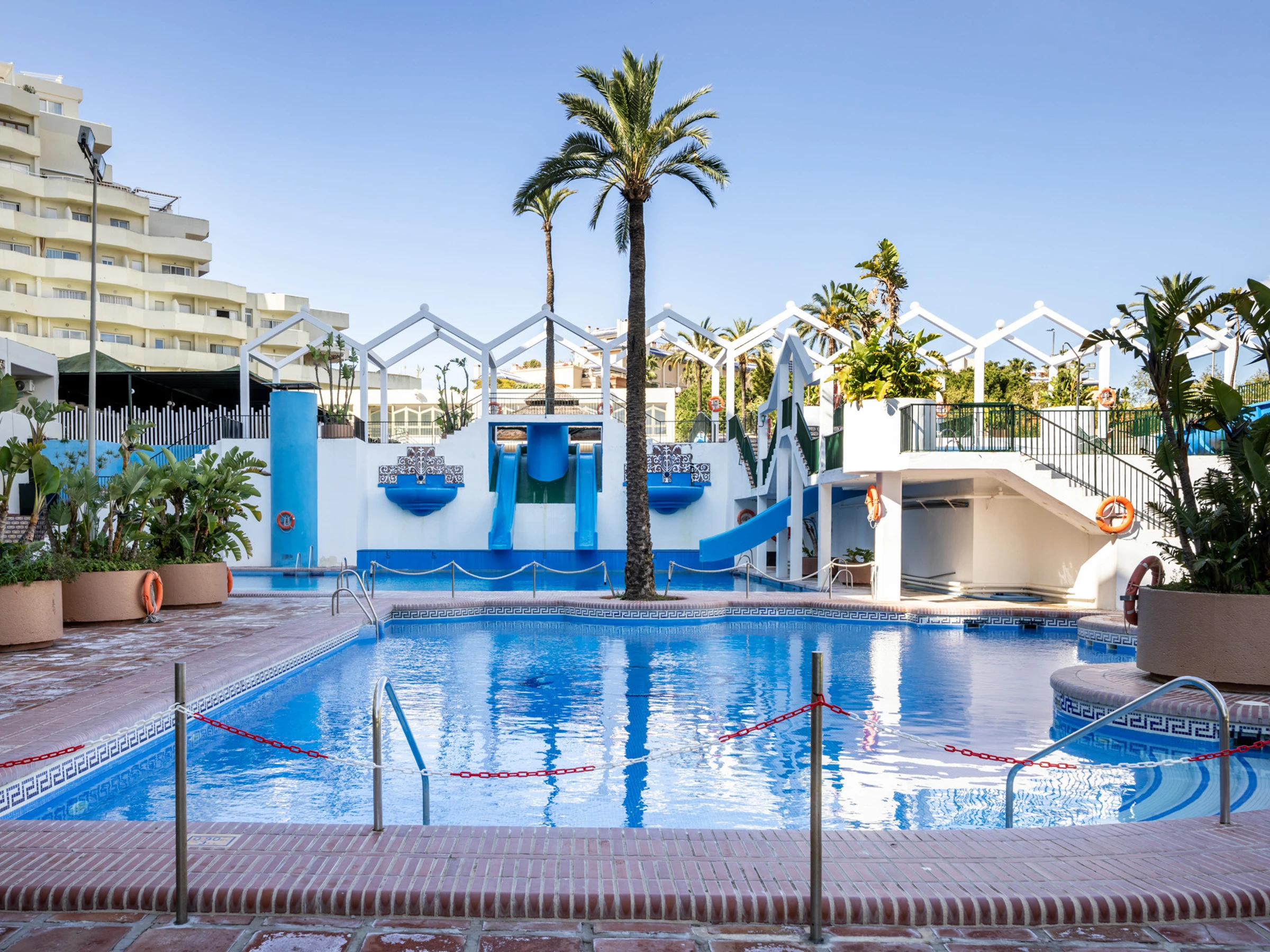 El complejo BenalBeach destaca por sus amplias zonas ajardinadas y su gran parque acuático con toboganes y cinco piscinas interconectadas, creando un entorno perfecto para aprovechar el excelente clima de Benalmádena durante todo el año.*