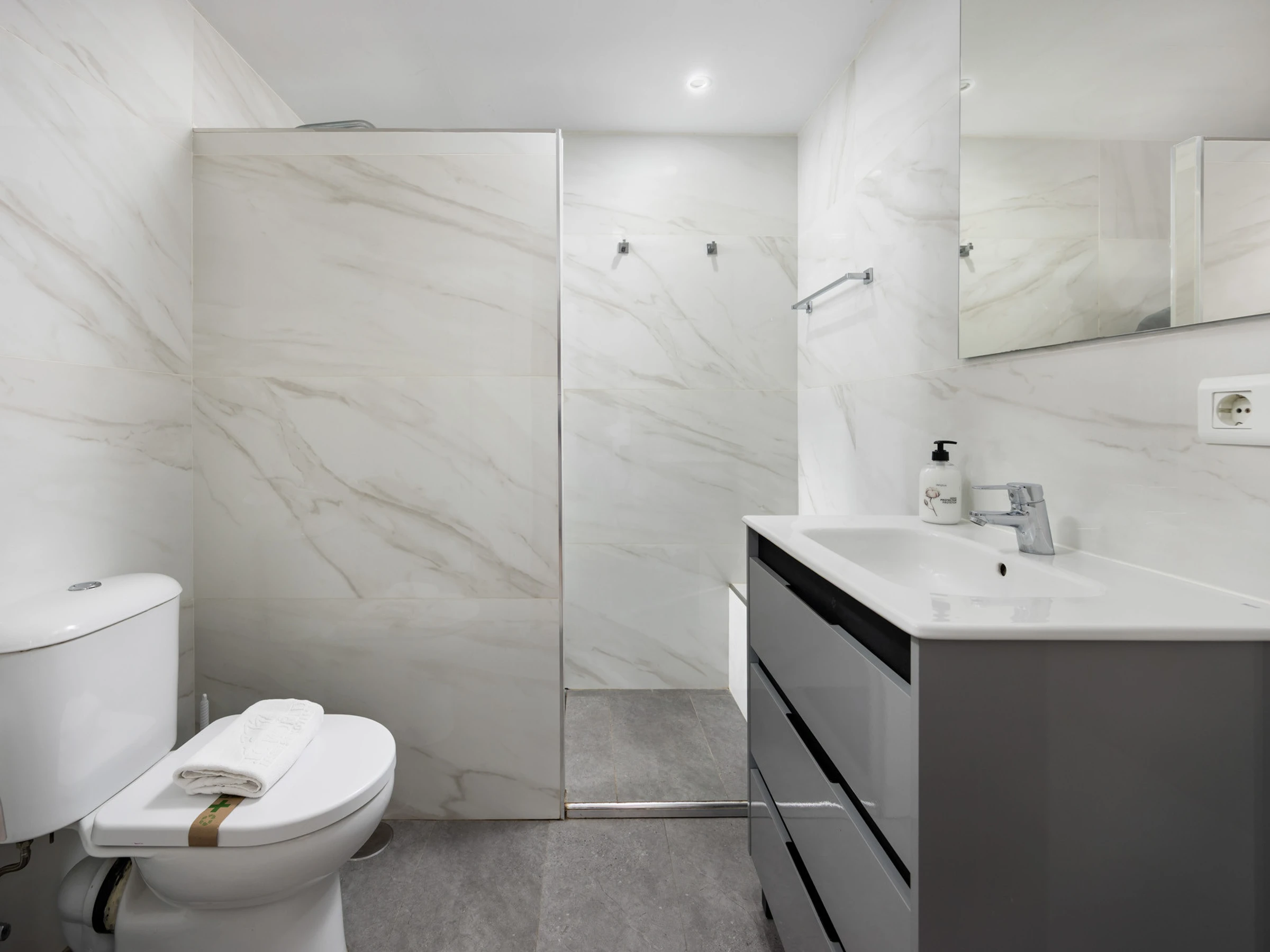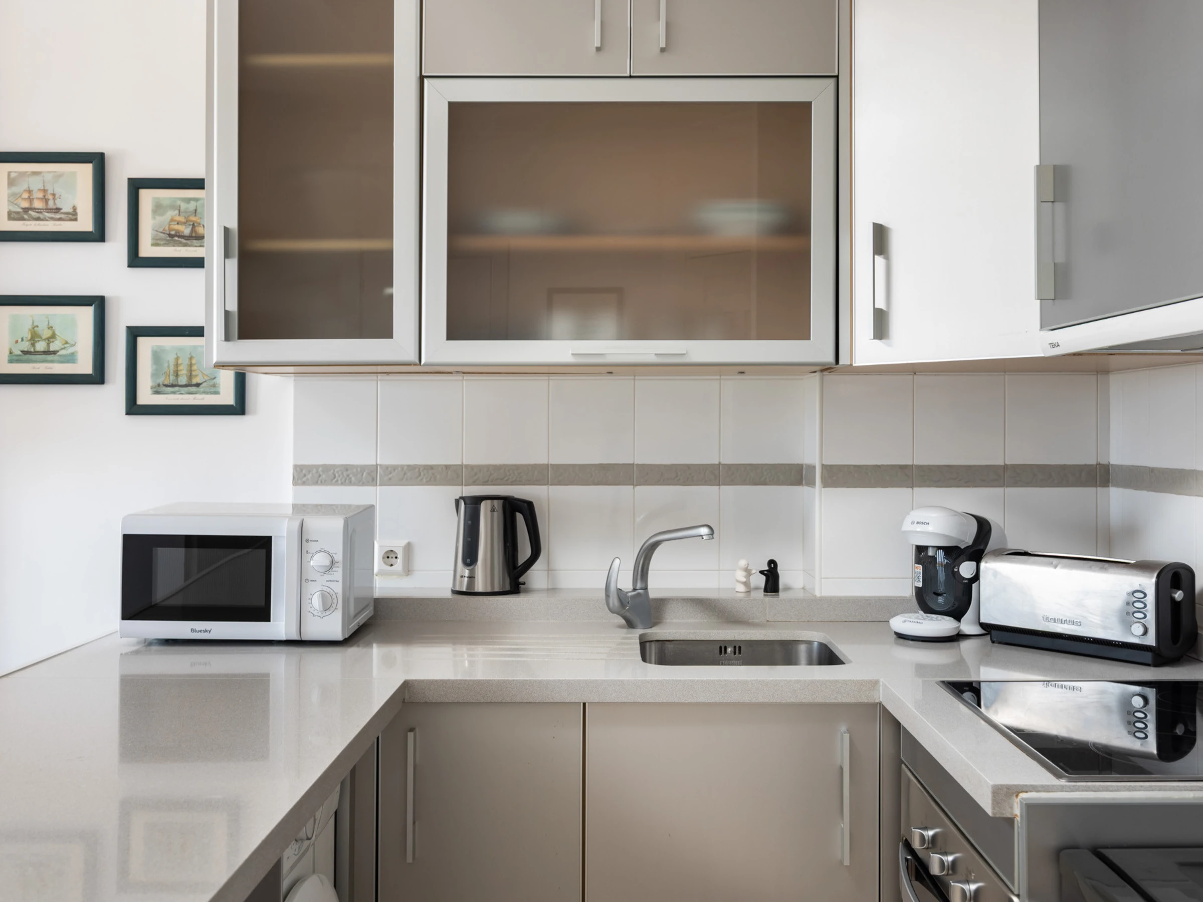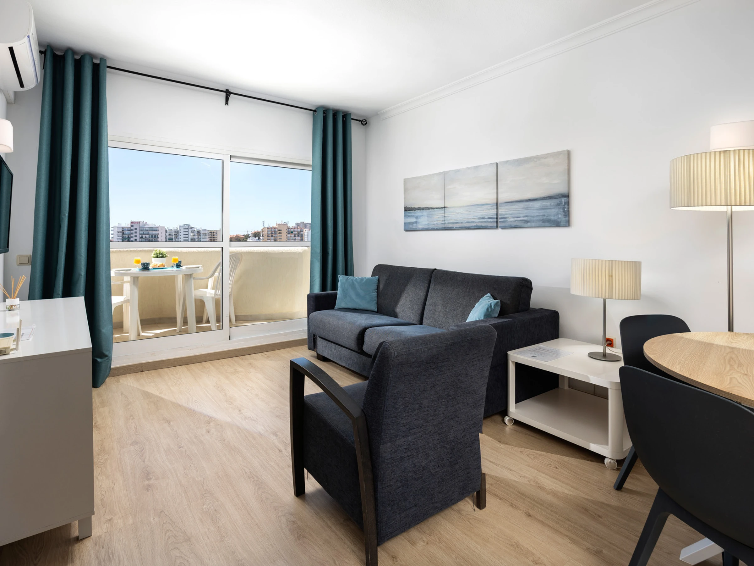 El apartamento cuenta con un dormitorio con cama de matrimonio, sofá cama doble, cocina completamente equipada, baño completo, aire acondicionado, Wi-Fi gratuito y televisión. Una opción cómoda, funcional y bien ubicada para quienes desean combinar descanso, playa y diversión en un mismo lugar.