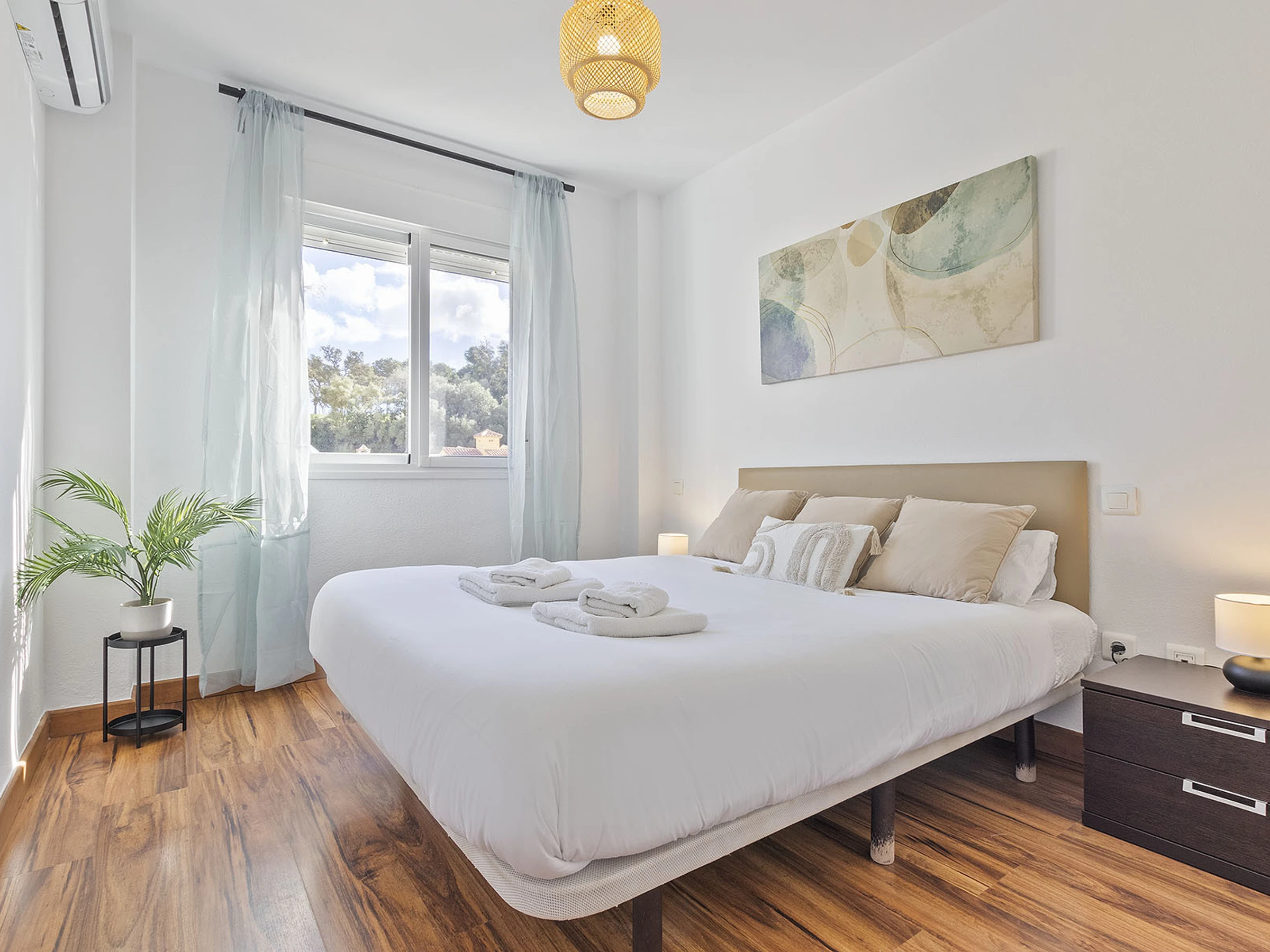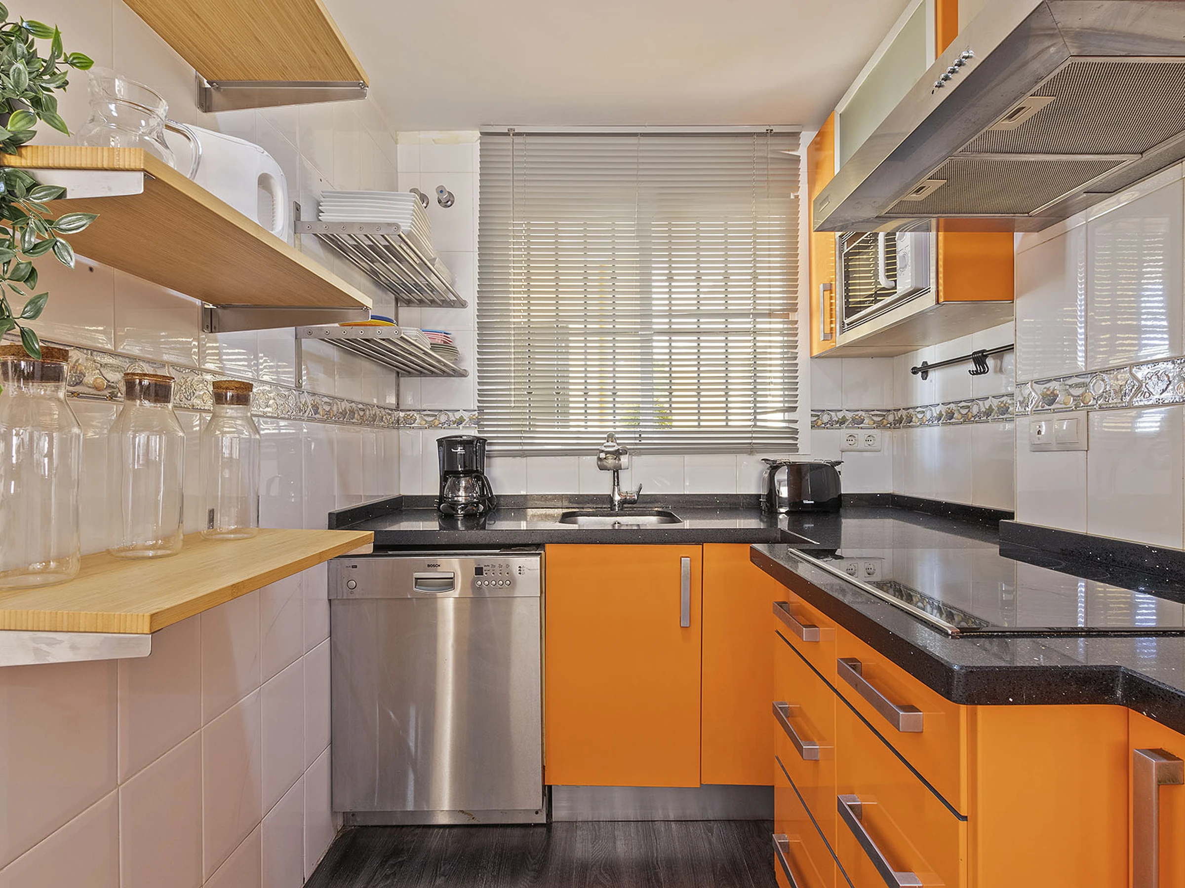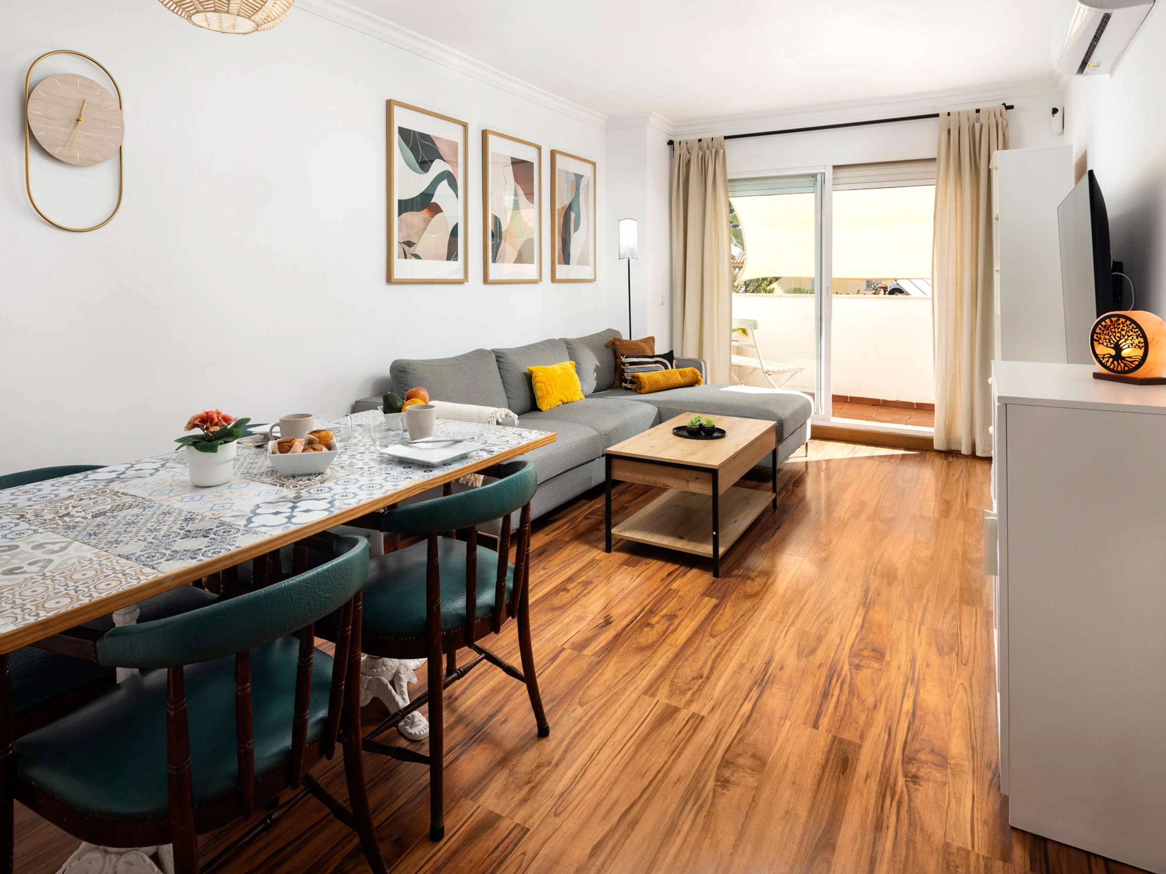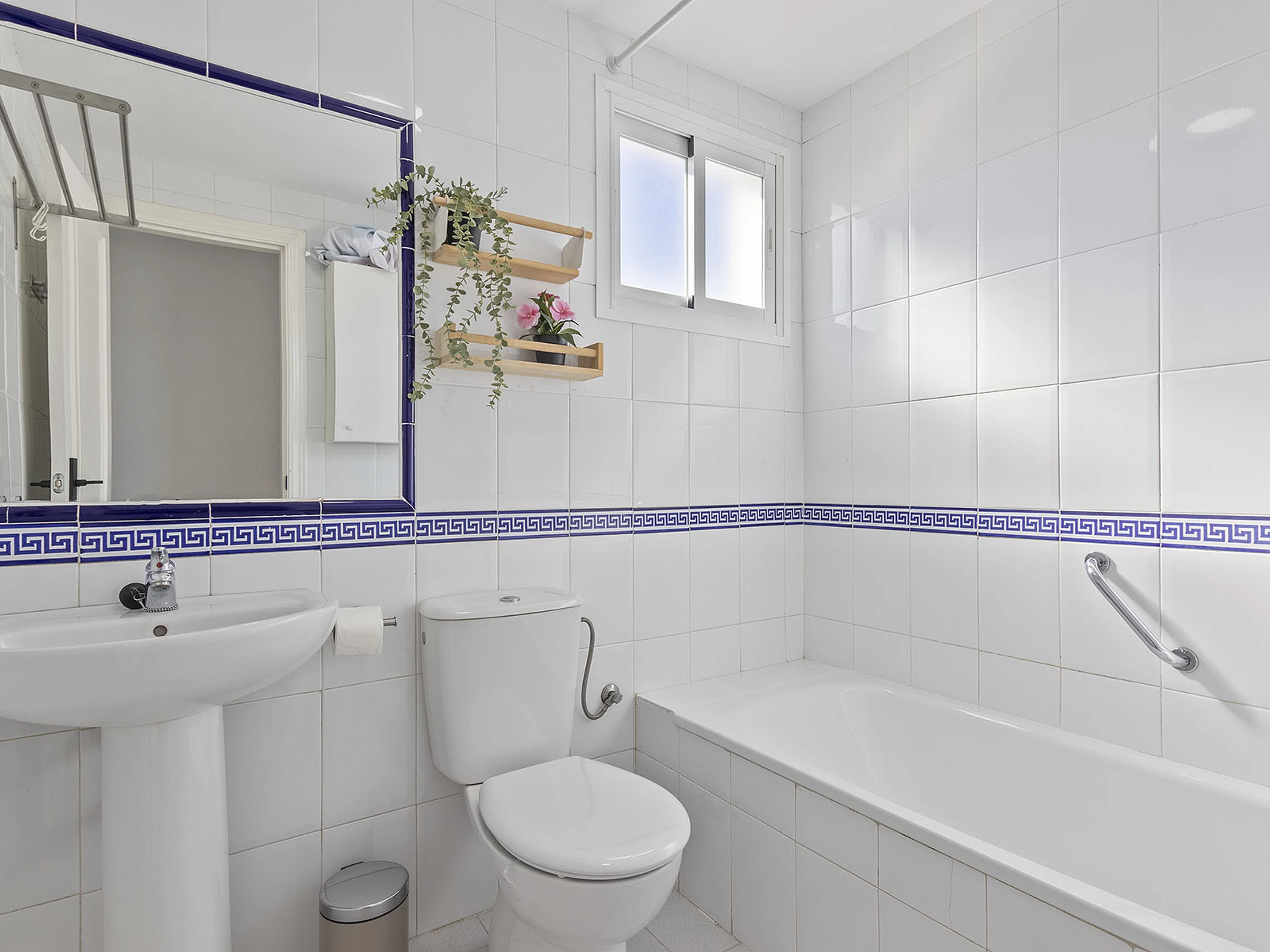 En el interior, el apartamento cuenta con una sala de estar amplia y luminosa, una cocina totalmente equipada y dos cómodas habitaciones, ideales para familias, parejas o grupos pequeños. Las comodidades modernas garantizan una estancia confortable, mientras que el flujo perfecto entre el interior y el exterior le permite aprovechar al máximo el clima mediterráneo.