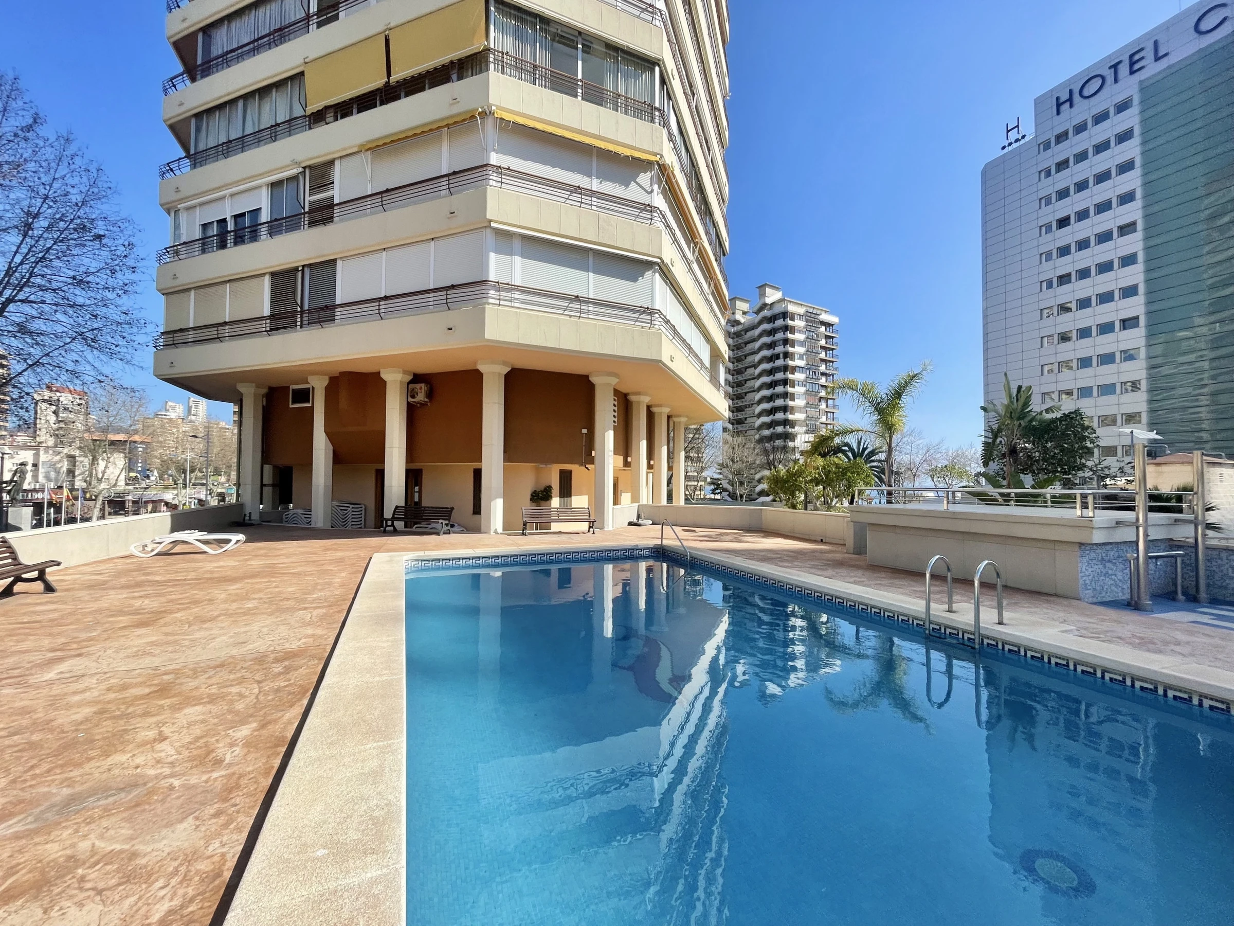 El apartamento cuenta con una inmejorable ubicación, cerca de todos los servicios, a un paso de la plaza más conocida de Benidorm: Plaza Triangular y muy cerca de la calle más comercial: Calle Gambo.