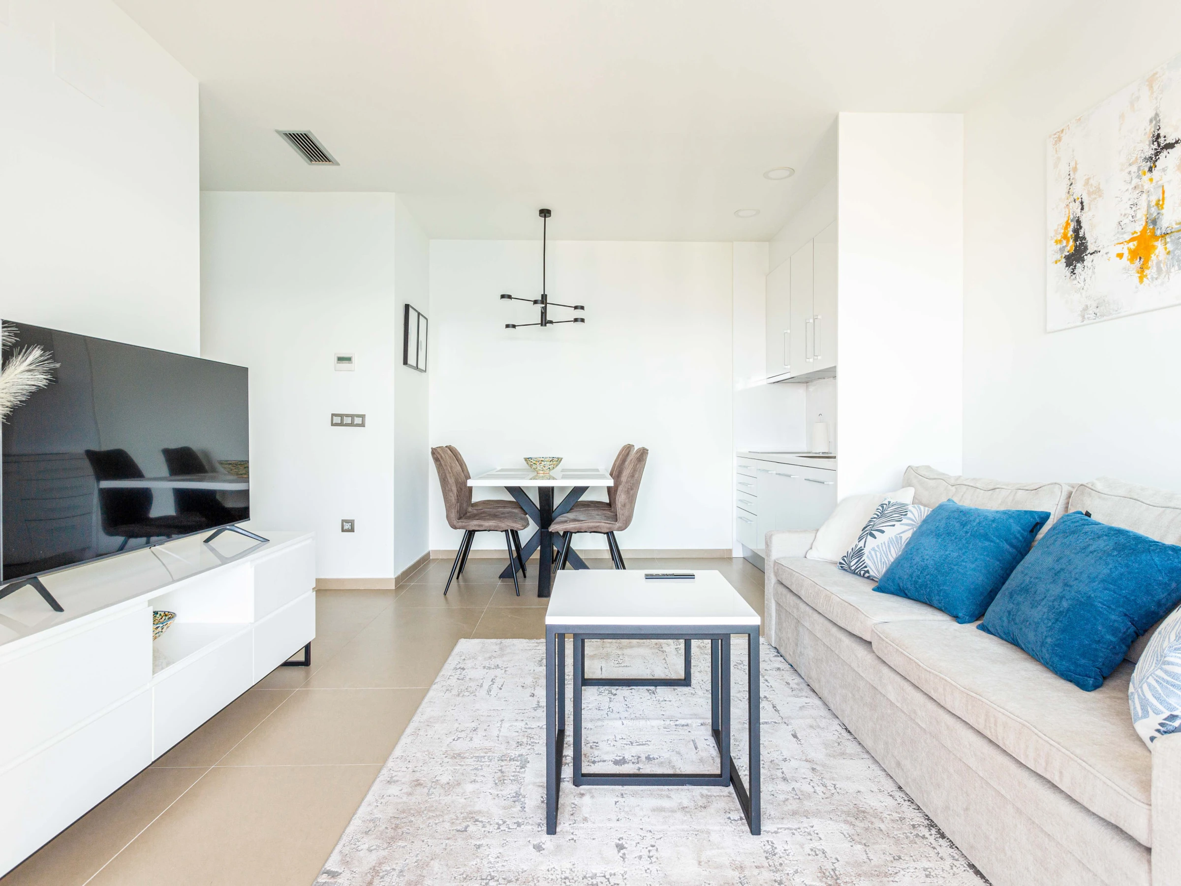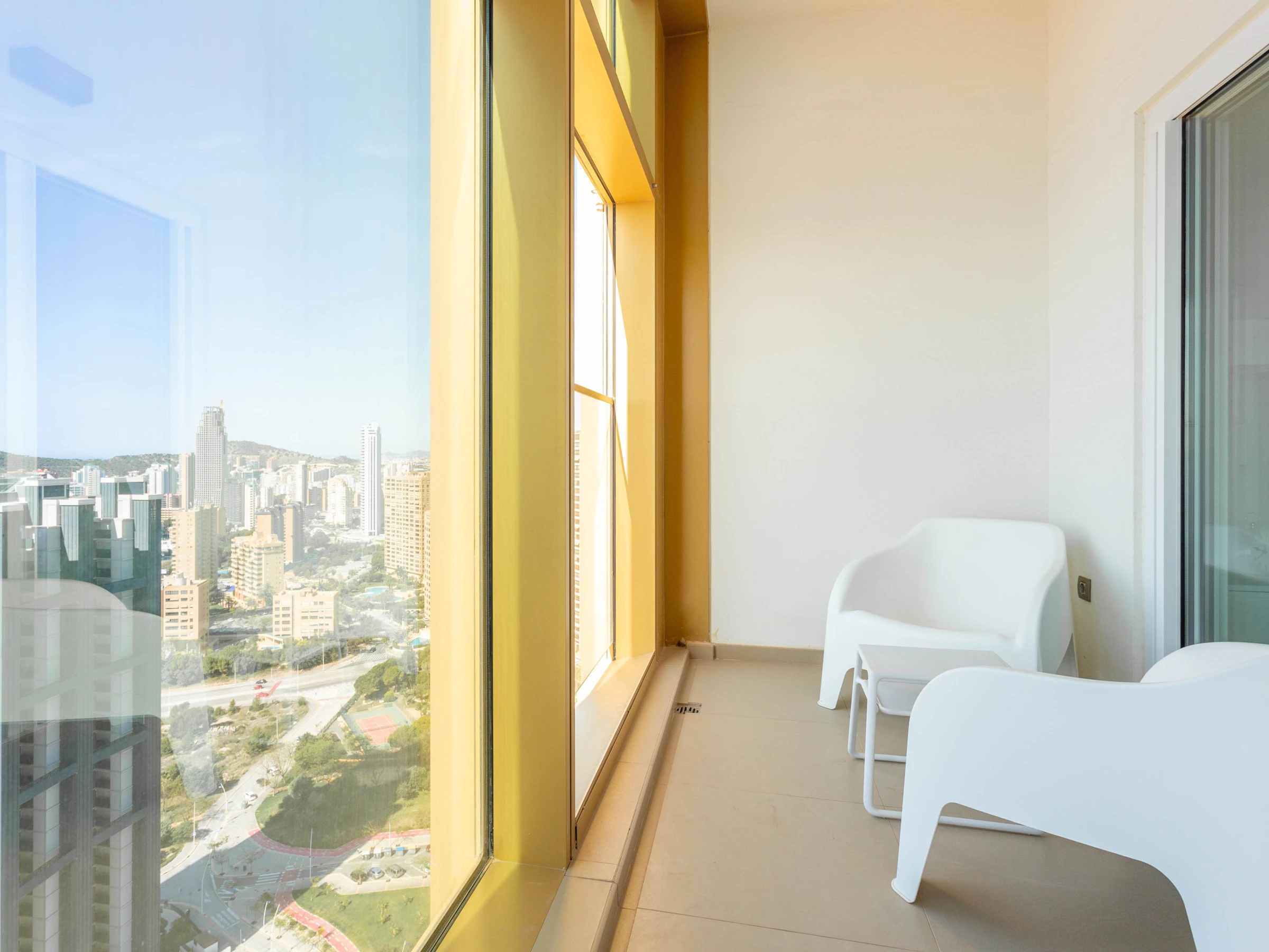 La ubicación es inmejorable, a solo 350 metros de la famosa Playa de Poniente y con vistas impresionantes al mar, montaña y piscina. Cerca encontrará restaurantes, supermercados y atracciones turísticas como Terra Mítica y Aqualandia.