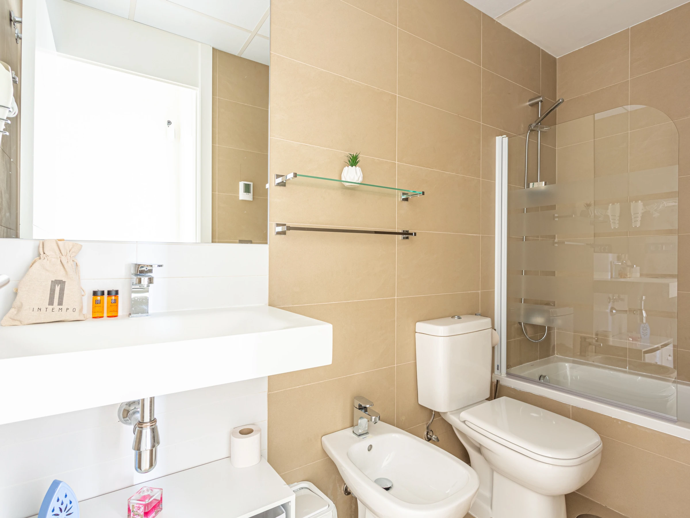 Las instalaciones del apartamento son excepcionales. Dispone de dos baños, uno con ducha y otro con bañera, facilitando el confort de los huespedes. La cocina independiente está totalmente equipada con electrodomésticos de marcas contrastadas como lavadora, lavavajillas, horno, microondas y cafetera, permitiendo preparar comidas durante su estancia.