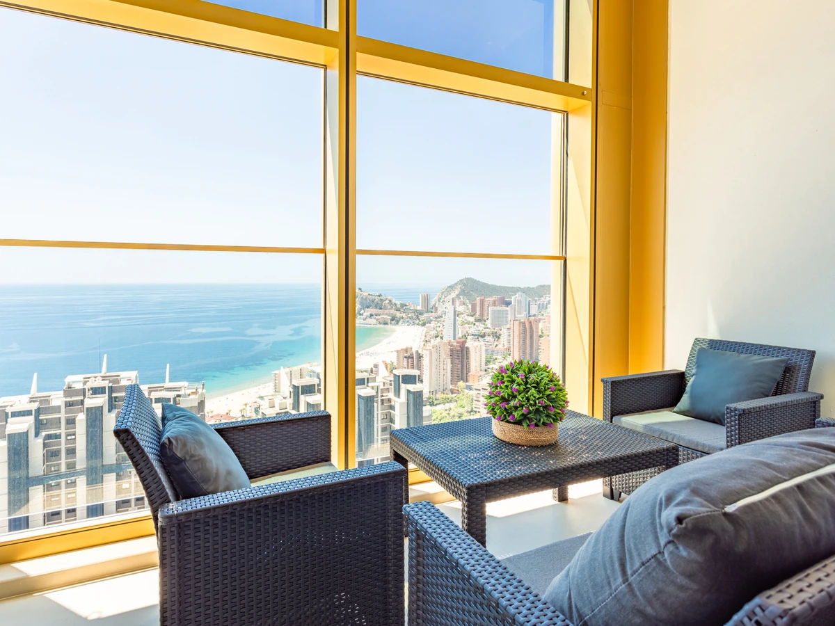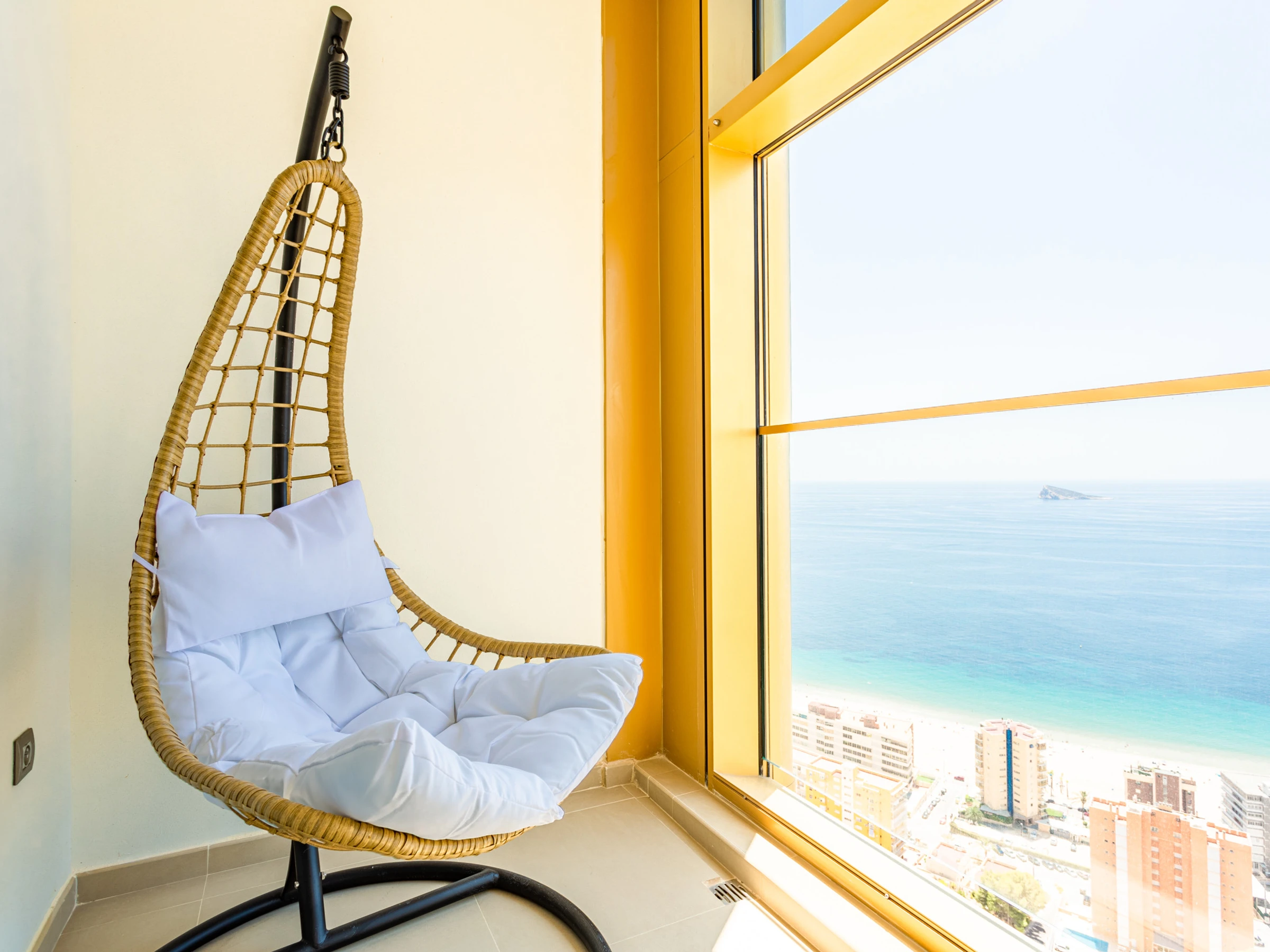 La ubicación es inmejorable, a solo 350 metros de la famosa Playa de Poniente y con vistas impresionantes al mar, montaña y piscina. Cerca encontrará restaurantes, supermercados y atracciones turísticas como Terra Mítica y Aqualandia.