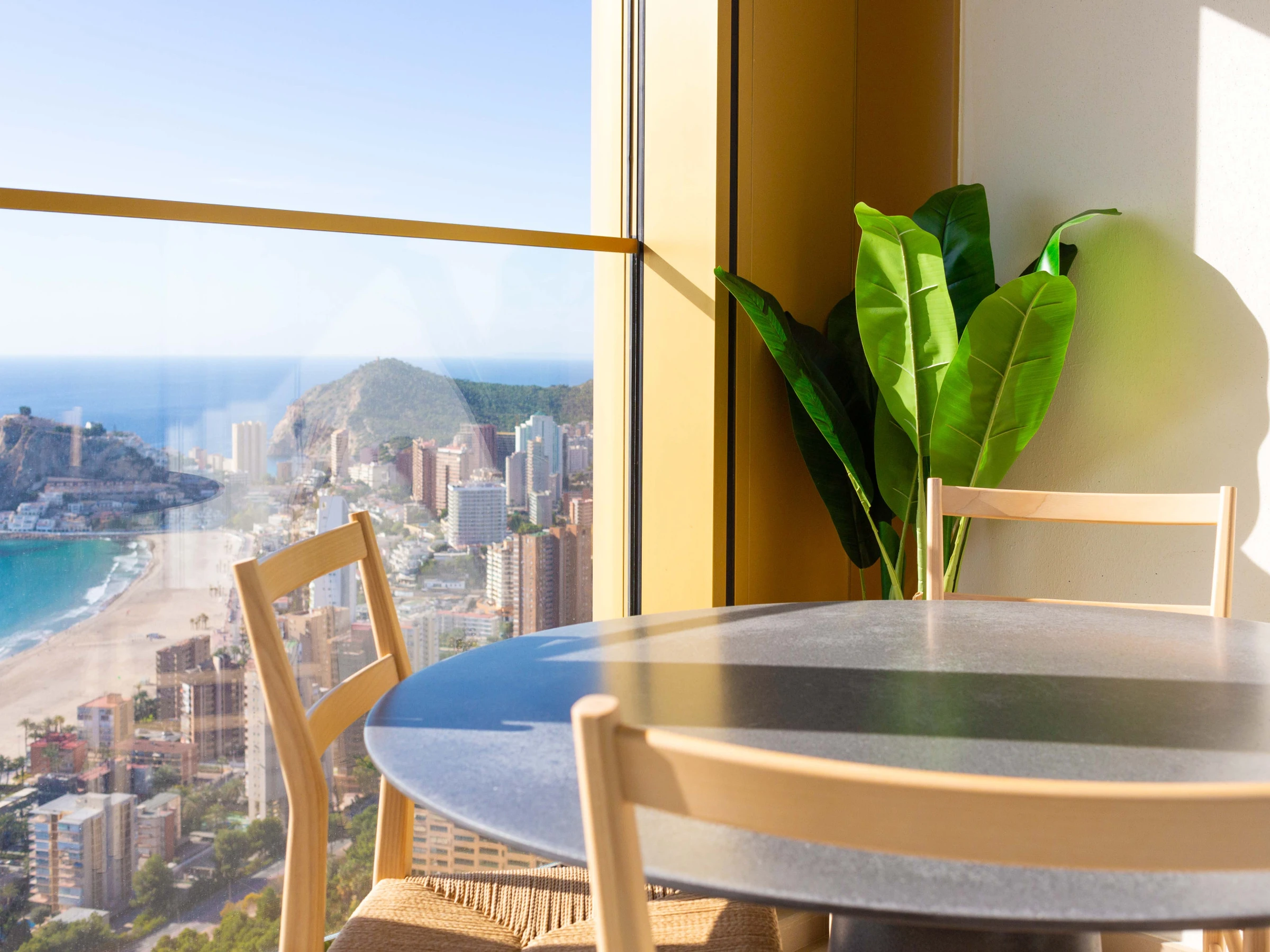 La ubicación es inmejorable, a solo 350 metros de la famosa Playa de Poniente y con vistas impresionantes al mar, montaña y piscina. Cerca encontrará restaurantes, supermercados y atracciones turísticas como Terra Mítica y Aqualandia.