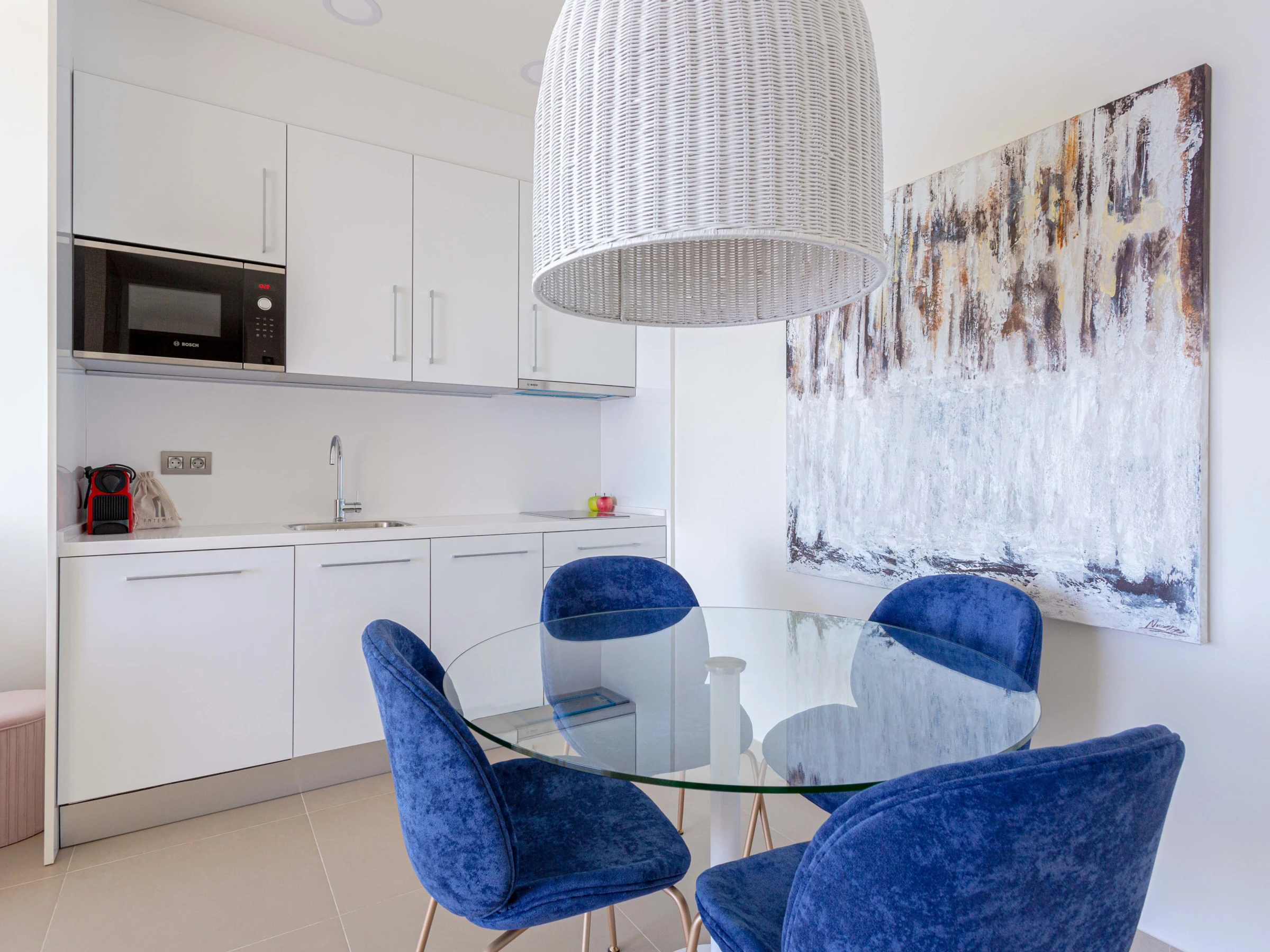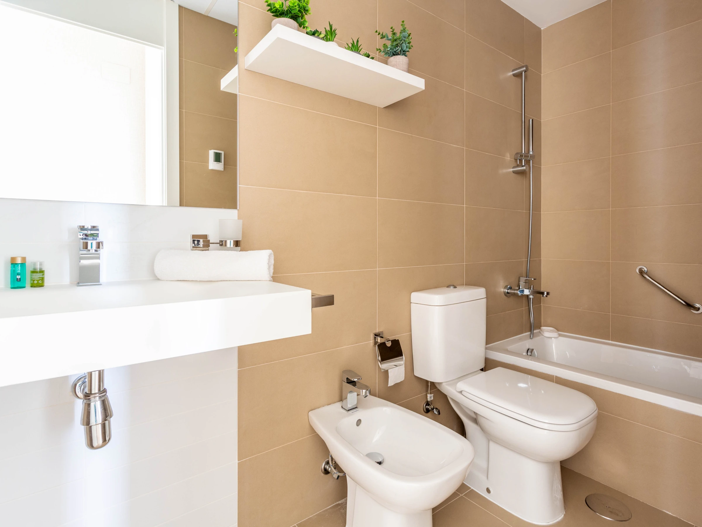 Las instalaciones del apartamento son excepcionales. Dispone de dos baños, uno con ducha y otro con bañera, facilitando el confort de los huespedes. La cocina independiente está totalmente equipada con electrodomésticos de marcas contrastadas como lavadora, lavavajillas, horno, microondas y cafetera, permitiendo preparar comidas durante su estancia.