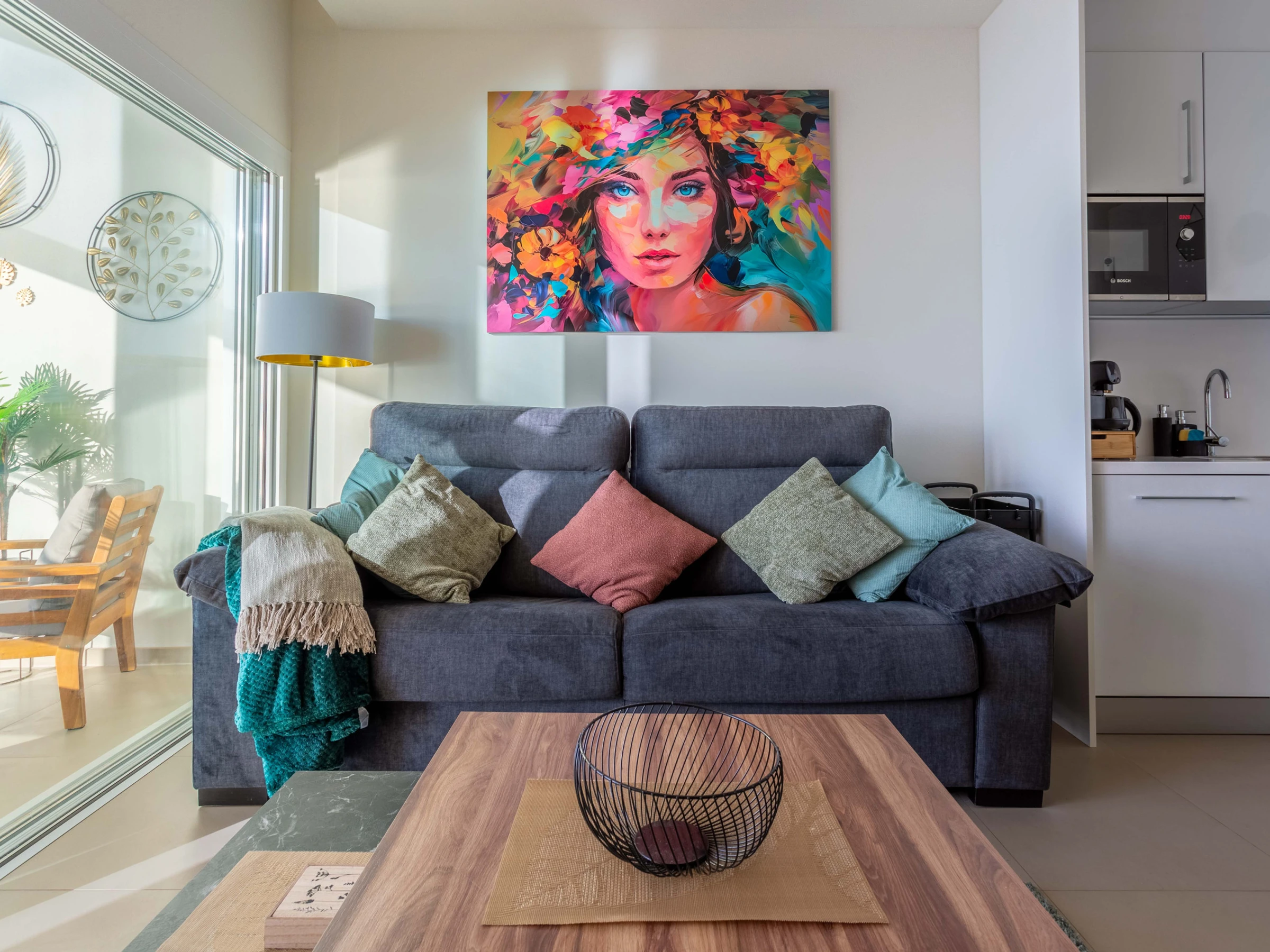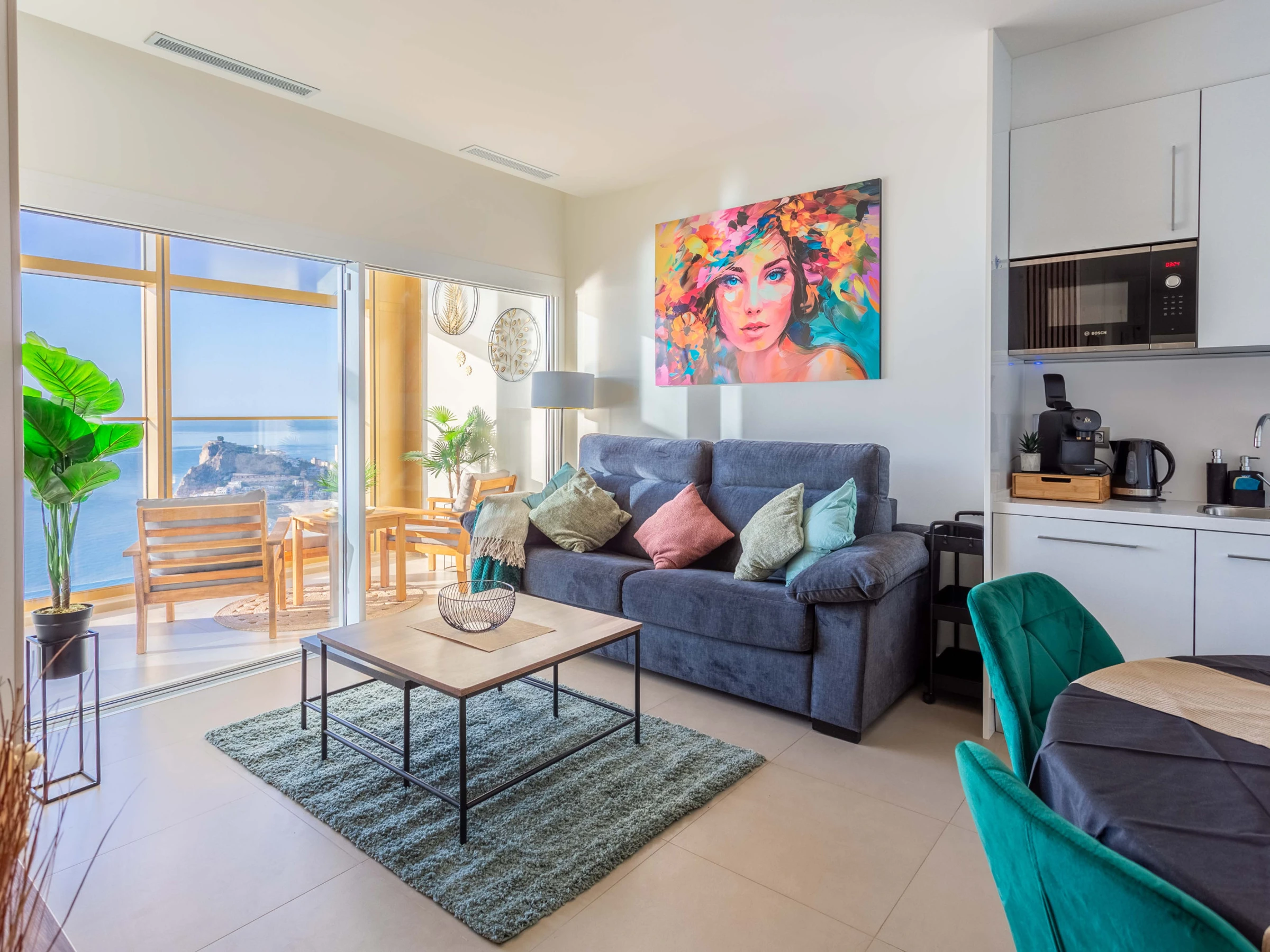 La ubicación es inmejorable, a solo 350 metros de la famosa Playa de Poniente y con vistas impresionantes al mar, montaña y piscina. Cerca encontrará restaurantes, supermercados y atracciones turísticas como Terra Mítica y Aqualandia.
