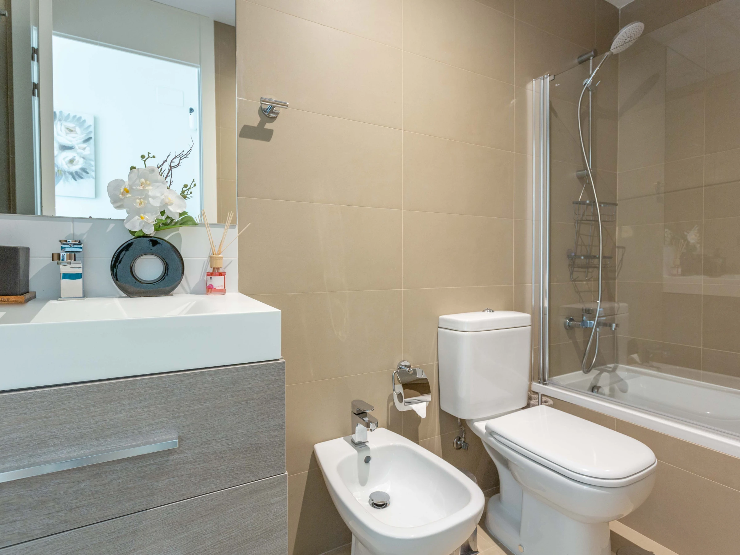 Las instalaciones del apartamento son excepcionales. Dispone de dos baños, uno con ducha y otro con bañera, facilitando el confort de los huespedes. La cocina independiente está totalmente equipada con electrodomésticos de marcas contrastadas como lavadora, lavavajillas, horno, microondas y cafetera, permitiendo preparar comidas durante su estancia.