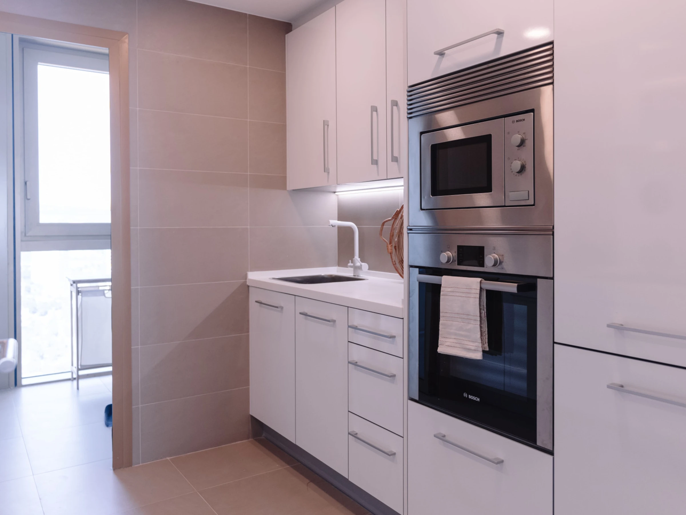 Las instalaciones del apartamento son excepcionales. Dispone de dos baños, uno con ducha y otro con bañera, facilitando el confort de los huespedes. La cocina independiente está totalmente equipada con electrodomésticos de marcas contrastadas como lavadora, lavavajillas, horno, microondas y cafetera, permitiendo preparar comidas durante su estancia.