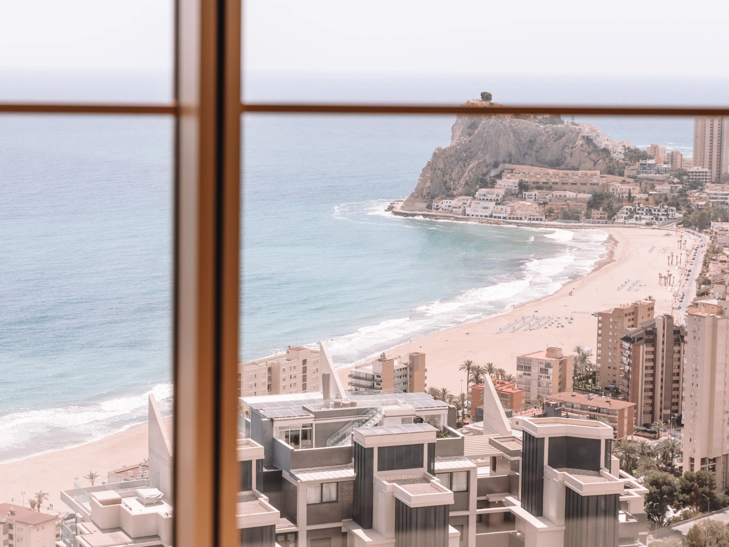 La ubicación es inmejorable, a solo 350 metros de la famosa Playa de Poniente y con vistas impresionantes al mar, montaña y piscina. Cerca encontrará restaurantes, supermercados y atracciones turísticas como Terra Mítica y Aqualandia.