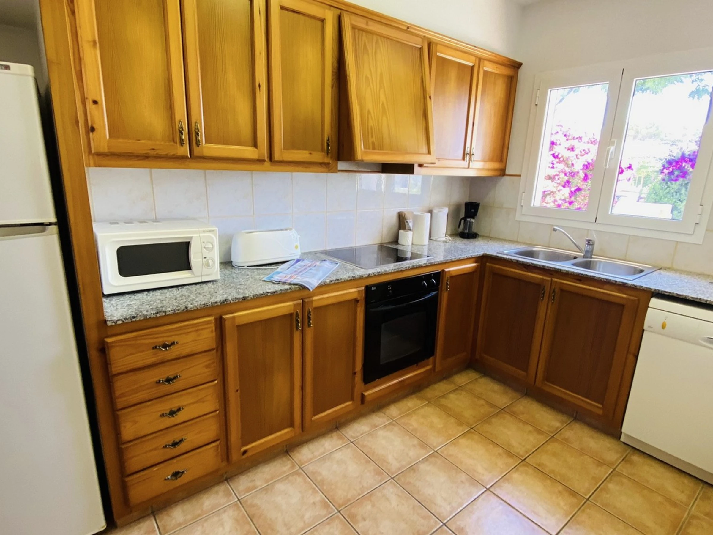 La cocina, está equipada con microondas, horno, congelador, lavavajillas, cafetera, tostadora y hervidor de agua.