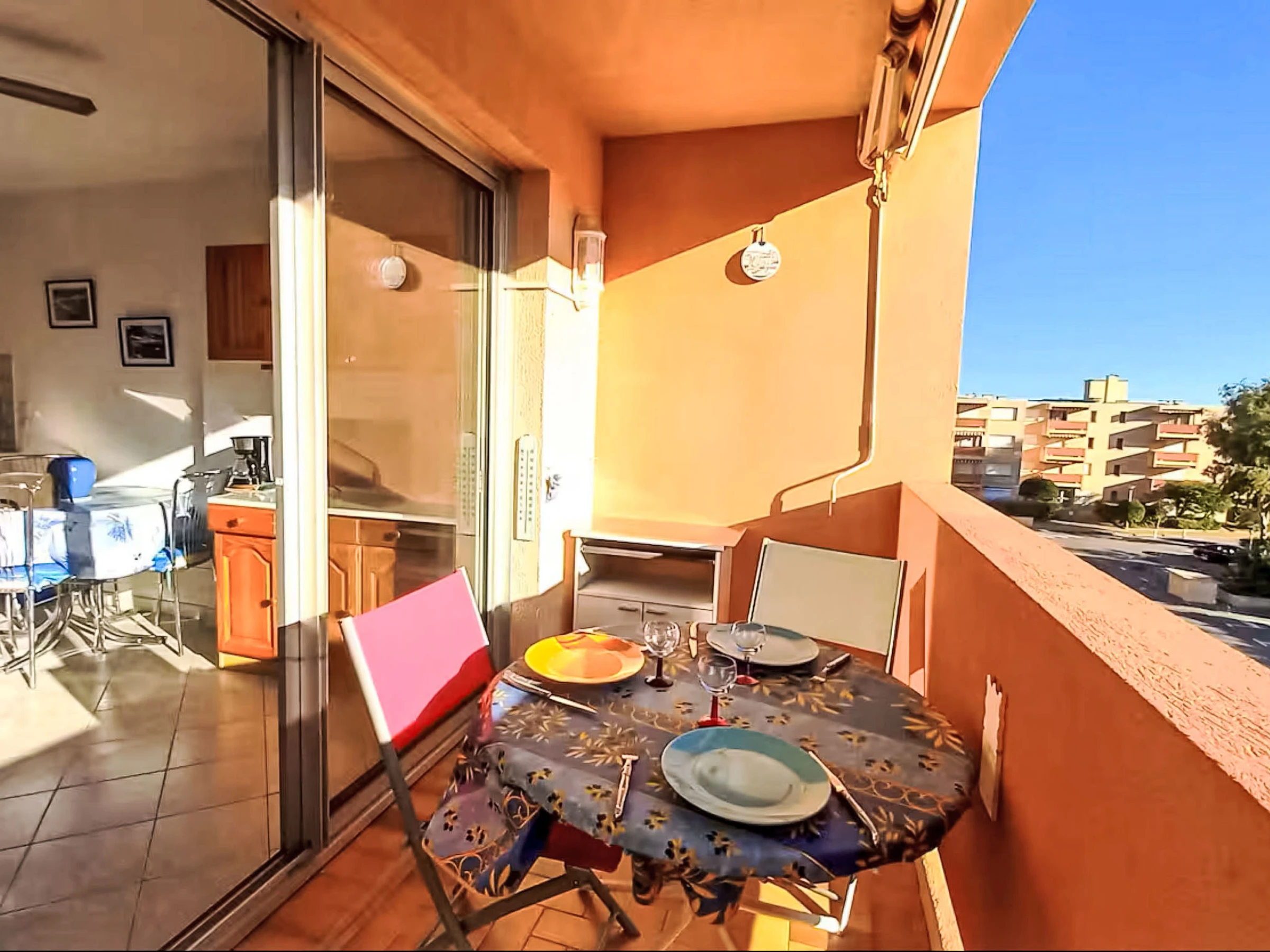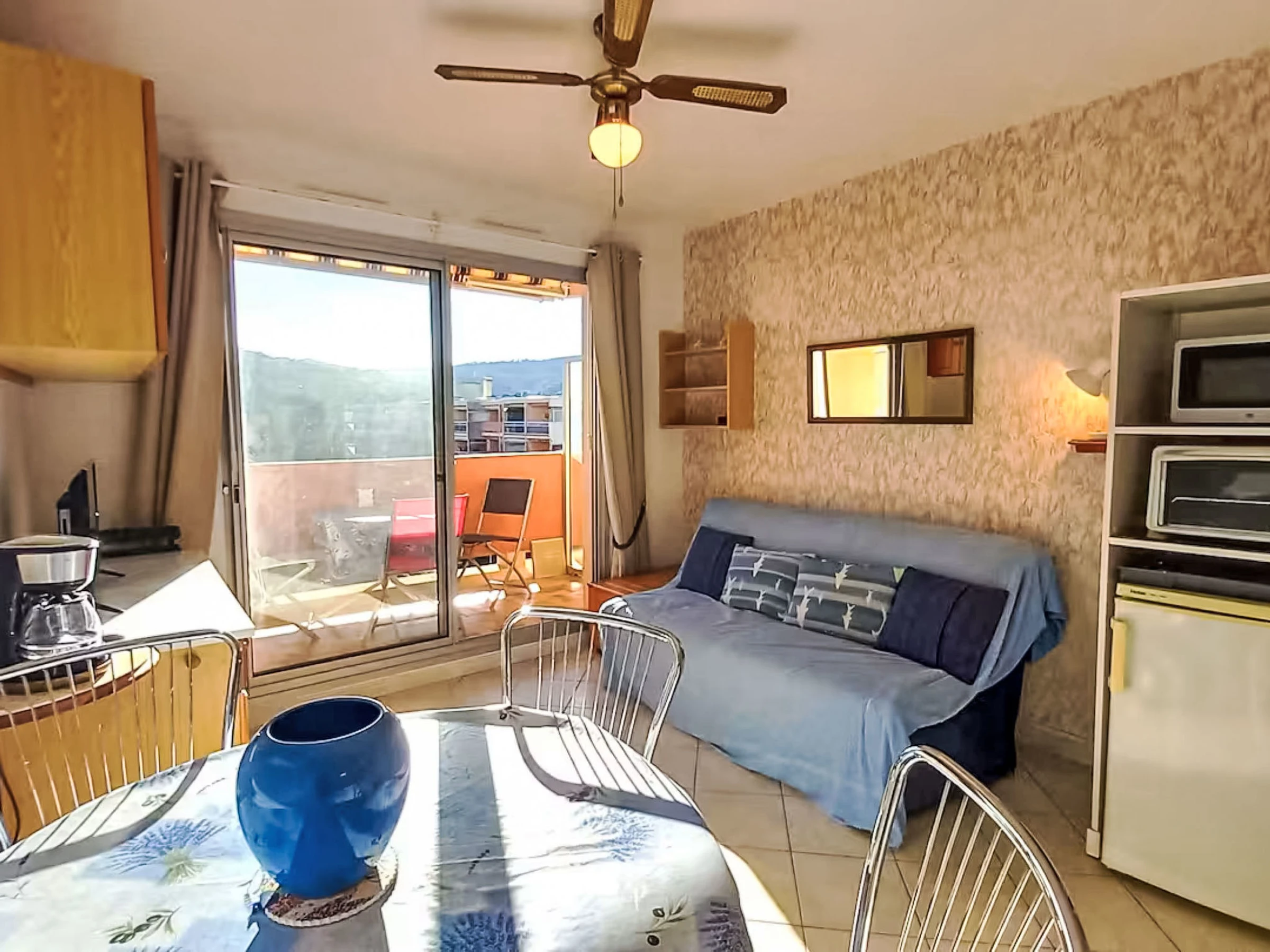 Estudio 24 m2 en el 3° piso. Vivienda adecuada para 2 adultos + 2 niños. Con mobiliario sencillo: salón-comedor con cortina con 1 sofá-cama doble (140 cm, 190 cm de longitud), TV y ventilador. Salida al balcón. Entrada con 1 x 2 literas (80 cm, 190 cm de longitud). Rincón-cocina (2 fogones, horno pequeño, tostadora, hervidor de agua eléctrico, microondas, cafetera eléctrica). Baño/WC. Balcón. Muebles de balcón. El alojamiento dispone de: lavadora. Internet (Wifi, extra). Garaje n. 102, altura 180 cm, ancho 210 cm. A tener en cuenta: permitido máximo 1 mascota pequeña / perro. Detector de humo. Oferta de un particular según el art. 155, IV del CGI. [hidden]