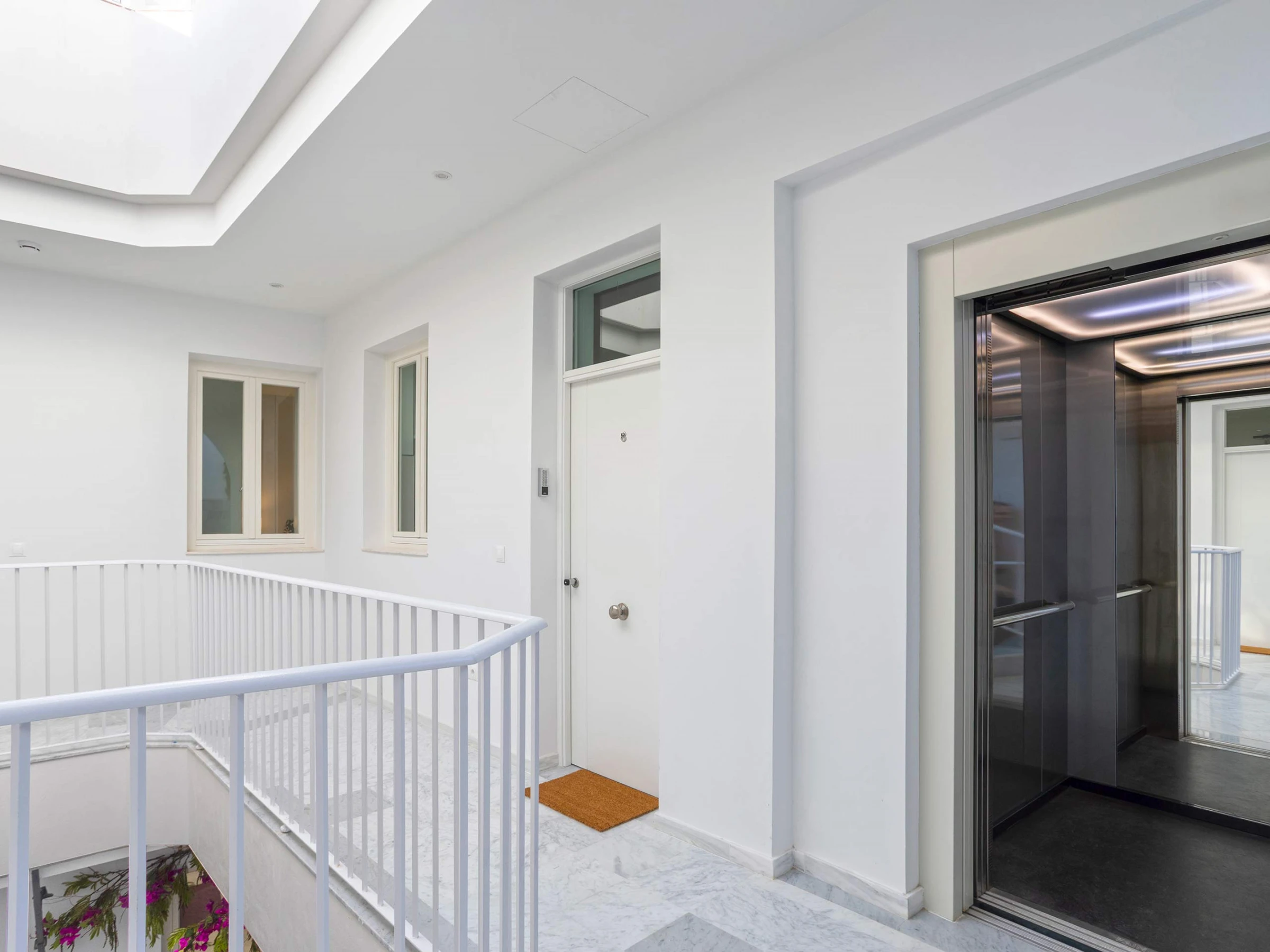 Se accede al edificio a través de su entrada principal, totalmente accesible y sin escalones, que da paso a un encantador hall/patio interior de estilo gaditano, desde donde se distribuyen los apartamentos en tres plantas.