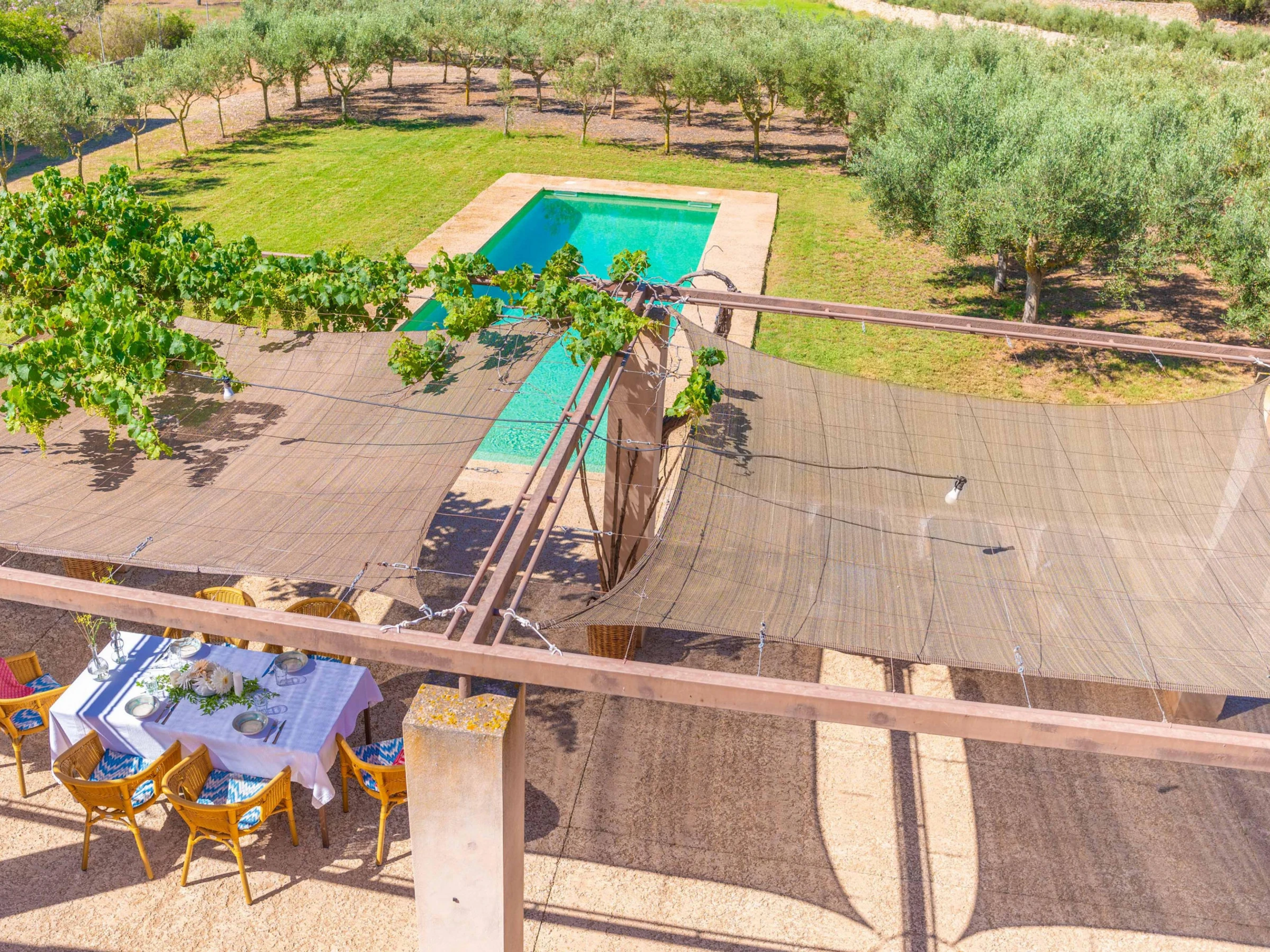 Los exteriores de la casa son un verdadero oasis de tranquilidad. La amplia piscina de cloro, con unas dimensiones de 10 metros de largo por 4 metros de ancho y una profundidad que oscila de 0.6 metros a 1.80 metros, es perfecta para nadar y refrescarse bajo el sol. Rodeada de un cuidado césped natural y árboles frutales, el jardín cuenta con 6 tumbonas donde relajarse bajo el cálido sol mediterráneo. Antes de adentrarse al interior de la casa, tienen un porche amueblado equipado con una barbacoa fija donde poder hacer deliciosas parillas.