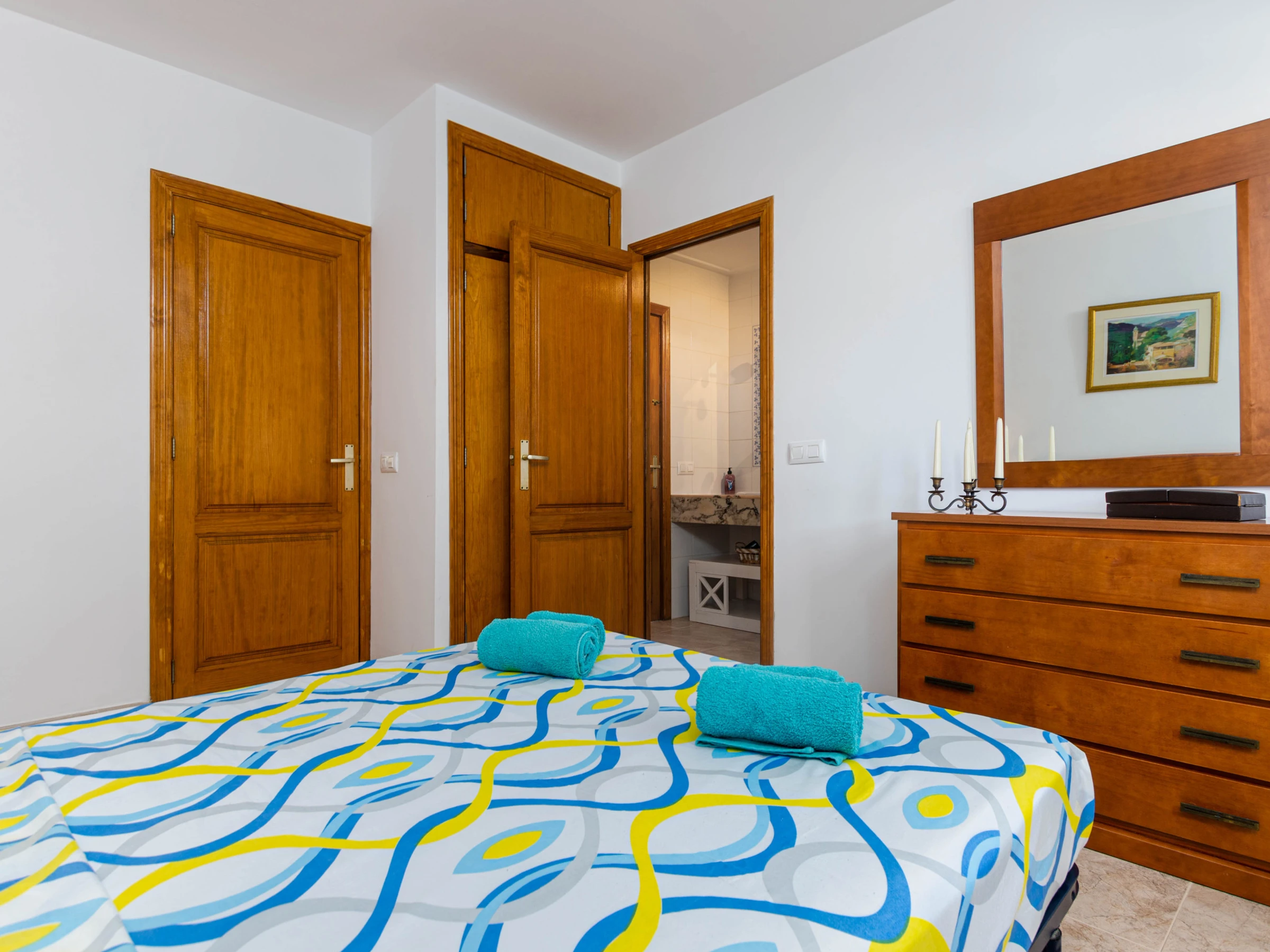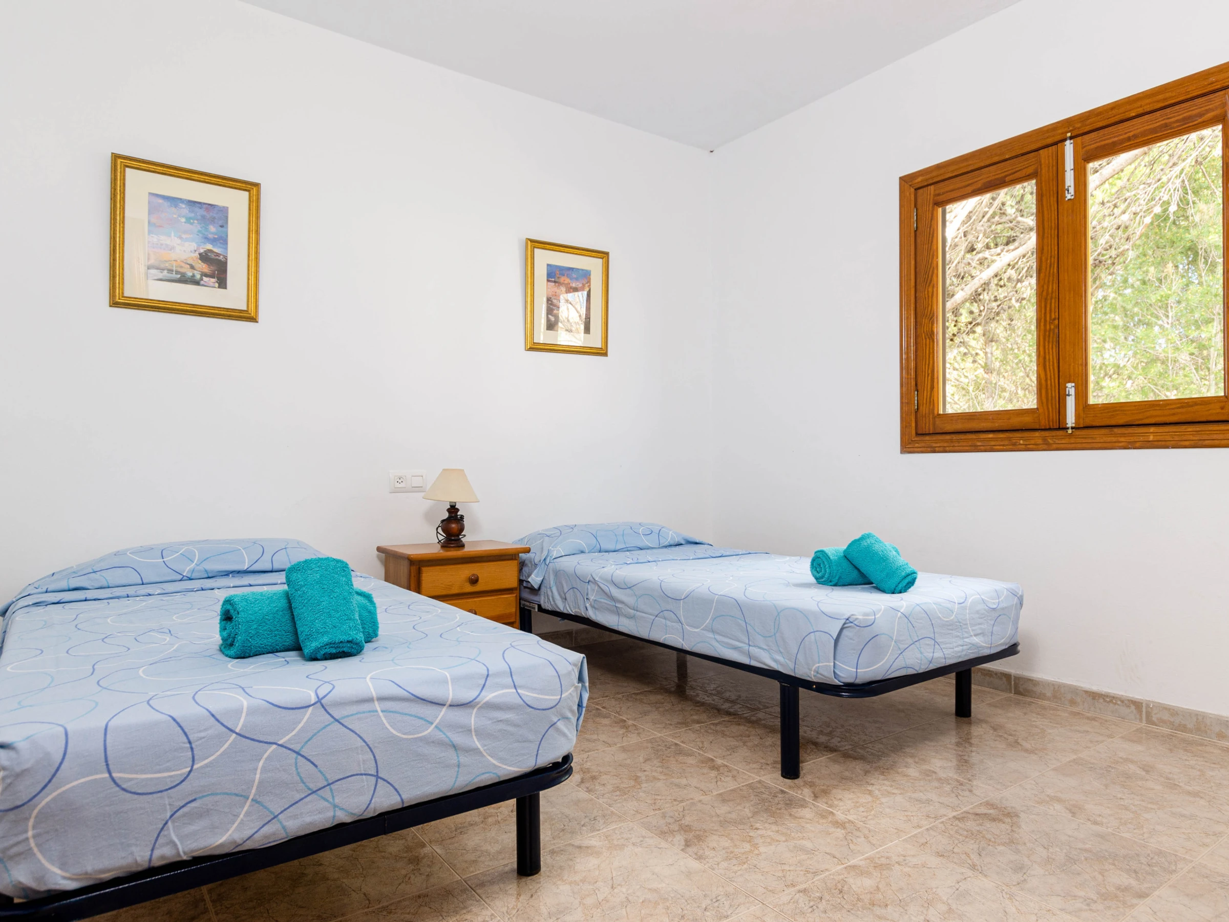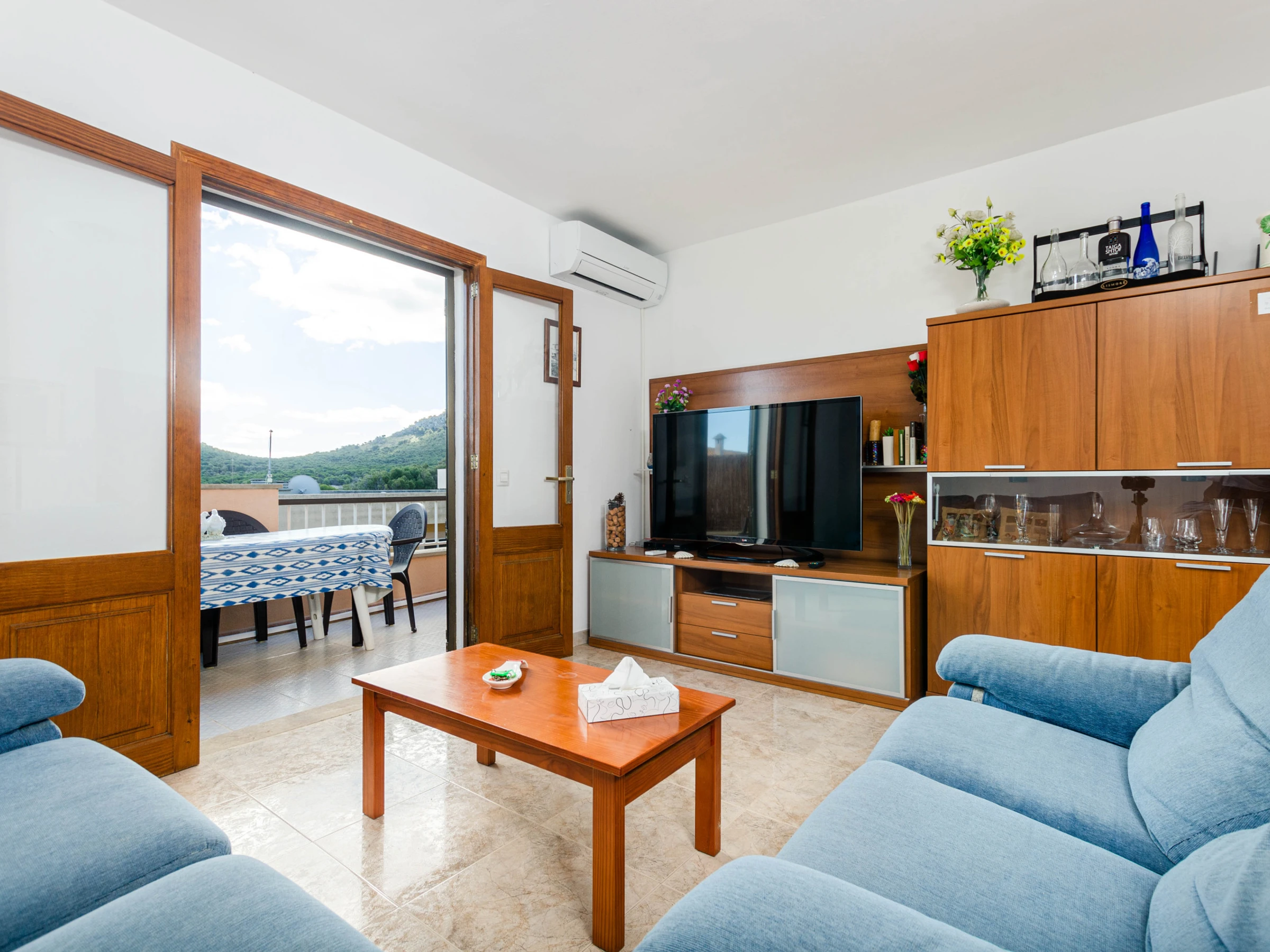 El apartamento en sí cuenta con una acogedora terraza privada de aproximadamente 25 metros cuadrados, equipada con una mesa y sillas para comer al aire libre. Desde aquí, puedes disfrutar de vistas panorámicas del vecindario y, en la distancia, el resplandeciente mar Mediterráneo. En el interior, el apartamento está diseñado para ofrecerte comodidad y funcionalidad. El luminoso salón-comedor es el lugar perfecto para reunirse en familia, con una televisión de satélite para entretenerte y conexión WiFi para mantenerte conectado. La cocina independiente está completamente equipada con placas de vitrocerámica, cafetera, lavavajillas y cafetera de filtro, permitiéndote preparar deliciosas comidas caseras con facilidad.Para garantizar tu confort durante tu estancia, el apartamento cuenta con aire acondicionado en el salón y en el pasillo, proporcionando un respiro del calor del verano. Además, bajo petición, se pueden proporcionar una cuna y una trona para los más pequeños de la familia. Hay 3 dormitorios, dos con cama doble y uno con 2 camas individuales. Para mayor conveniencia, también encontrarás una lavadora y una plancha con tabla, asegurando que puedas mantener tu ropa fresca y lista para tus próximas aventuras en la isla.
