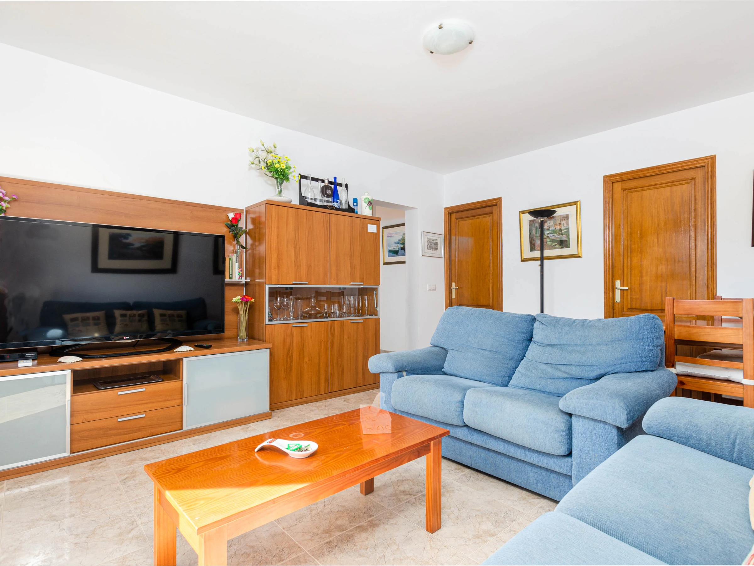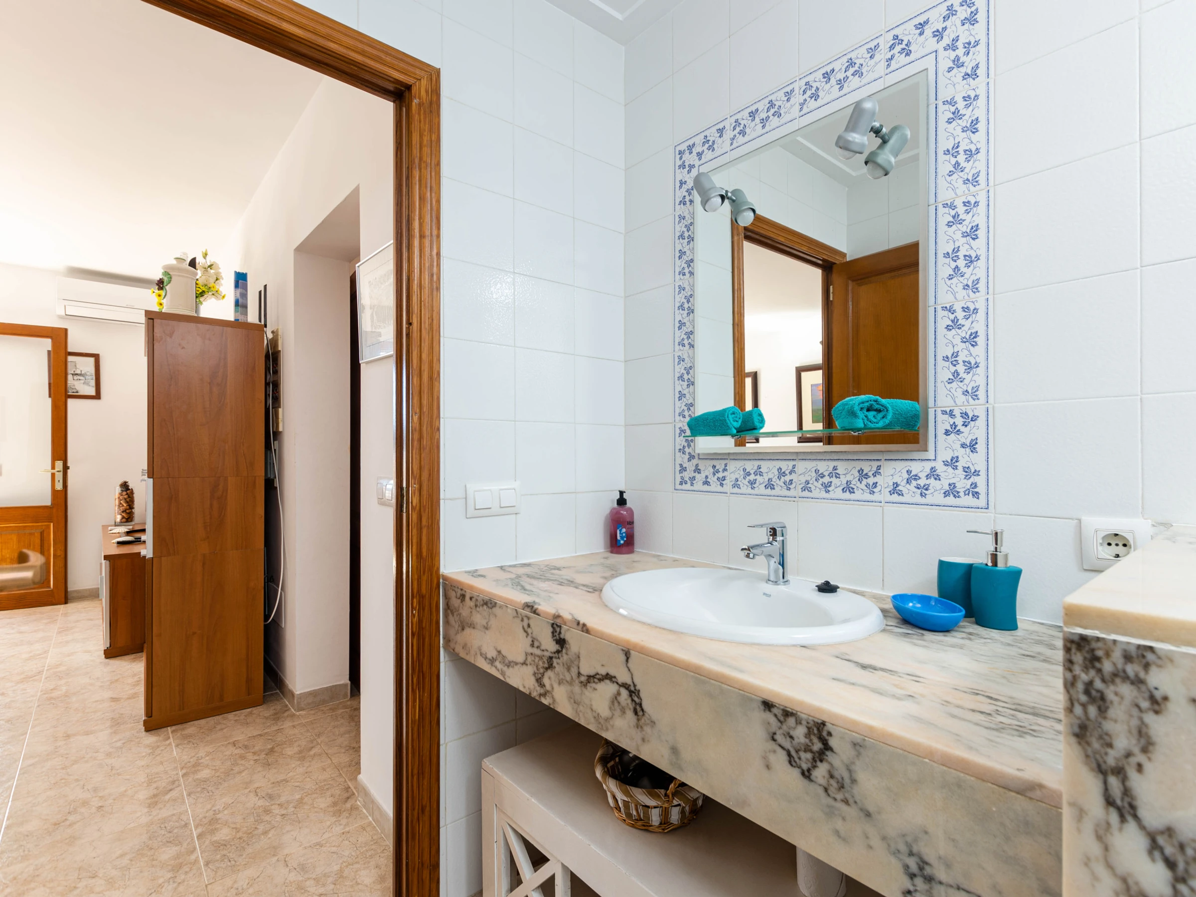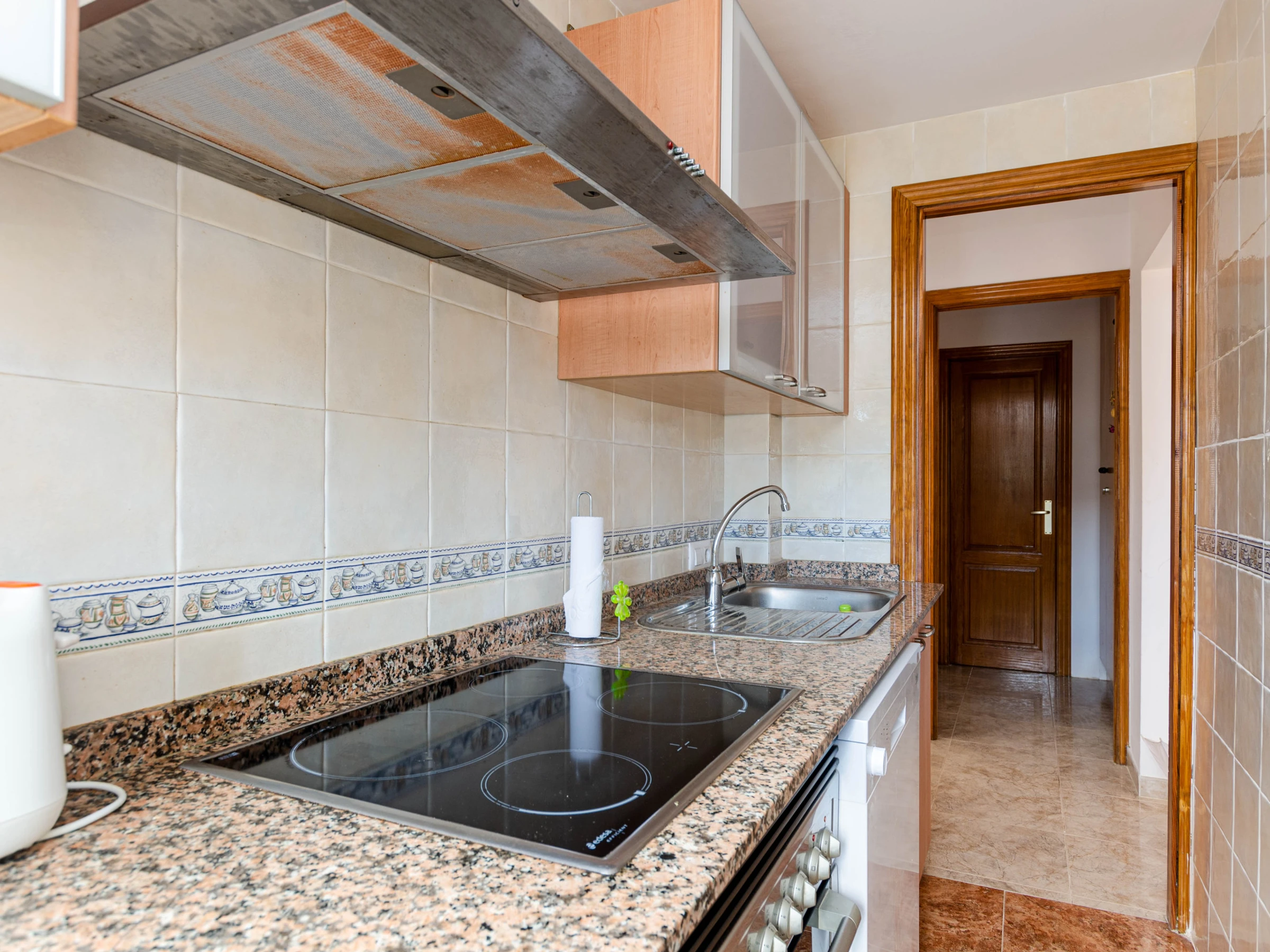 El apartamento en sí cuenta con una acogedora terraza privada de aproximadamente 25 metros cuadrados, equipada con una mesa y sillas para comer al aire libre. Desde aquí, puedes disfrutar de vistas panorámicas del vecindario y, en la distancia, el resplandeciente mar Mediterráneo. En el interior, el apartamento está diseñado para ofrecerte comodidad y funcionalidad. El luminoso salón-comedor es el lugar perfecto para reunirse en familia, con una televisión de satélite para entretenerte y conexión WiFi para mantenerte conectado. La cocina independiente está completamente equipada con placas de vitrocerámica, cafetera, lavavajillas y cafetera de filtro, permitiéndote preparar deliciosas comidas caseras con facilidad.Para garantizar tu confort durante tu estancia, el apartamento cuenta con aire acondicionado en el salón y en el pasillo, proporcionando un respiro del calor del verano. Además, bajo petición, se pueden proporcionar una cuna y una trona para los más pequeños de la familia. Hay 3 dormitorios, dos con cama doble y uno con 2 camas individuales. Para mayor conveniencia, también encontrarás una lavadora y una plancha con tabla, asegurando que puedas mantener tu ropa fresca y lista para tus próximas aventuras en la isla.