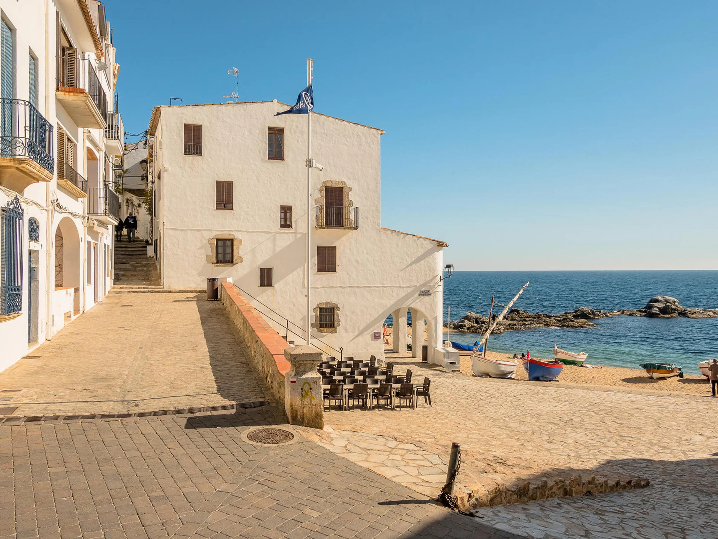 Bonito apartamento situado en pleno centro de Calella de Palafrugell, Costa Brava. El apartamento está situado en la 1ª planta del edificio y cuenta con ascensor. Consta de salón-comedor con cocina abierta,3 habitaciones dobles, 2 baños (2 de ellos en-suite) y un balcón. Está situado justo al lado de la playa del Port Bo, a tan solo 30 metros de distancia. Ubicación inmejorable para hacerlo todo a pie. El aparcamiento se encuentra a 160 metros del alojamiento. Para cualquier otra duda sobre esta propiedad, no dude en contactarnos.