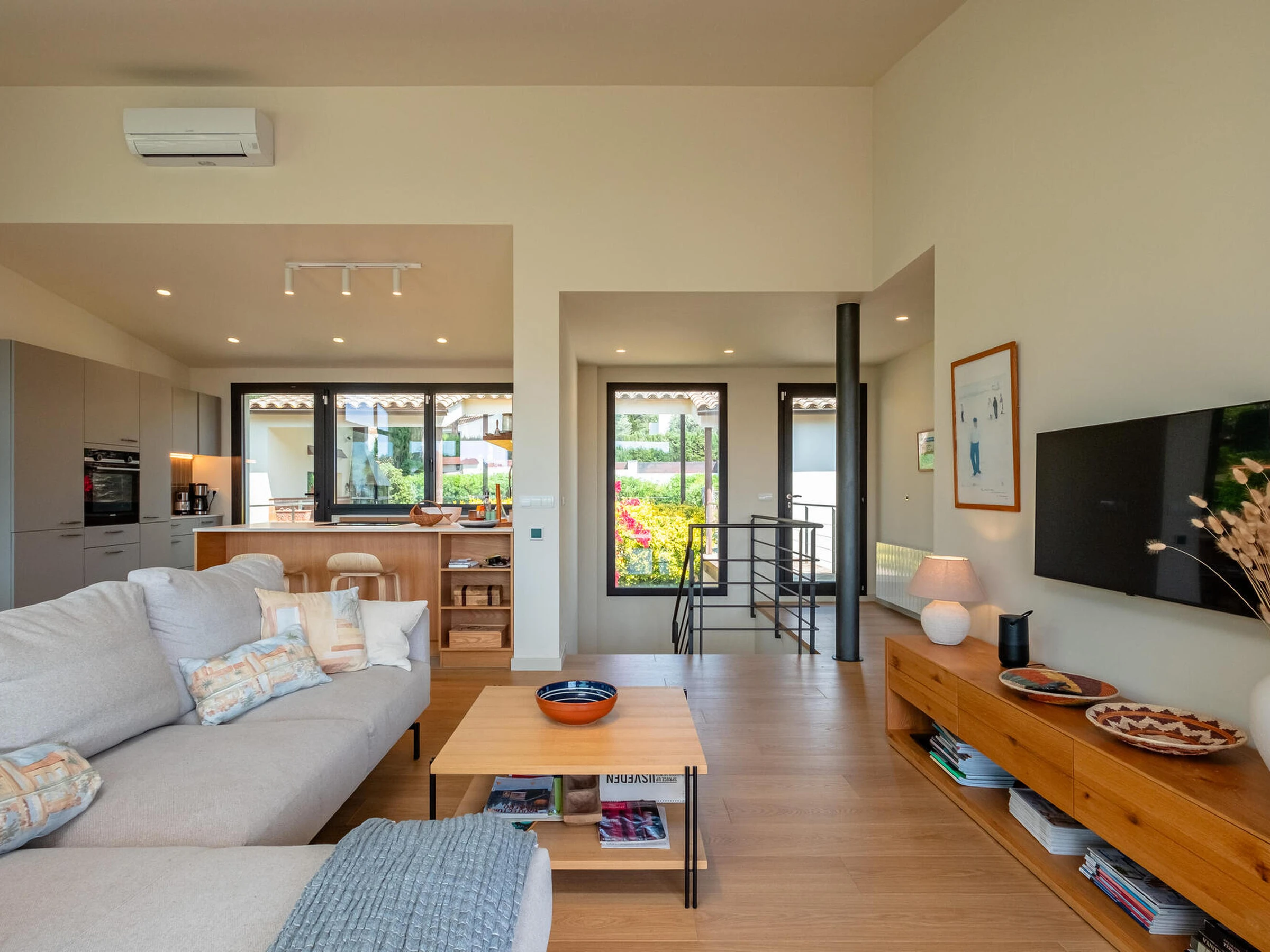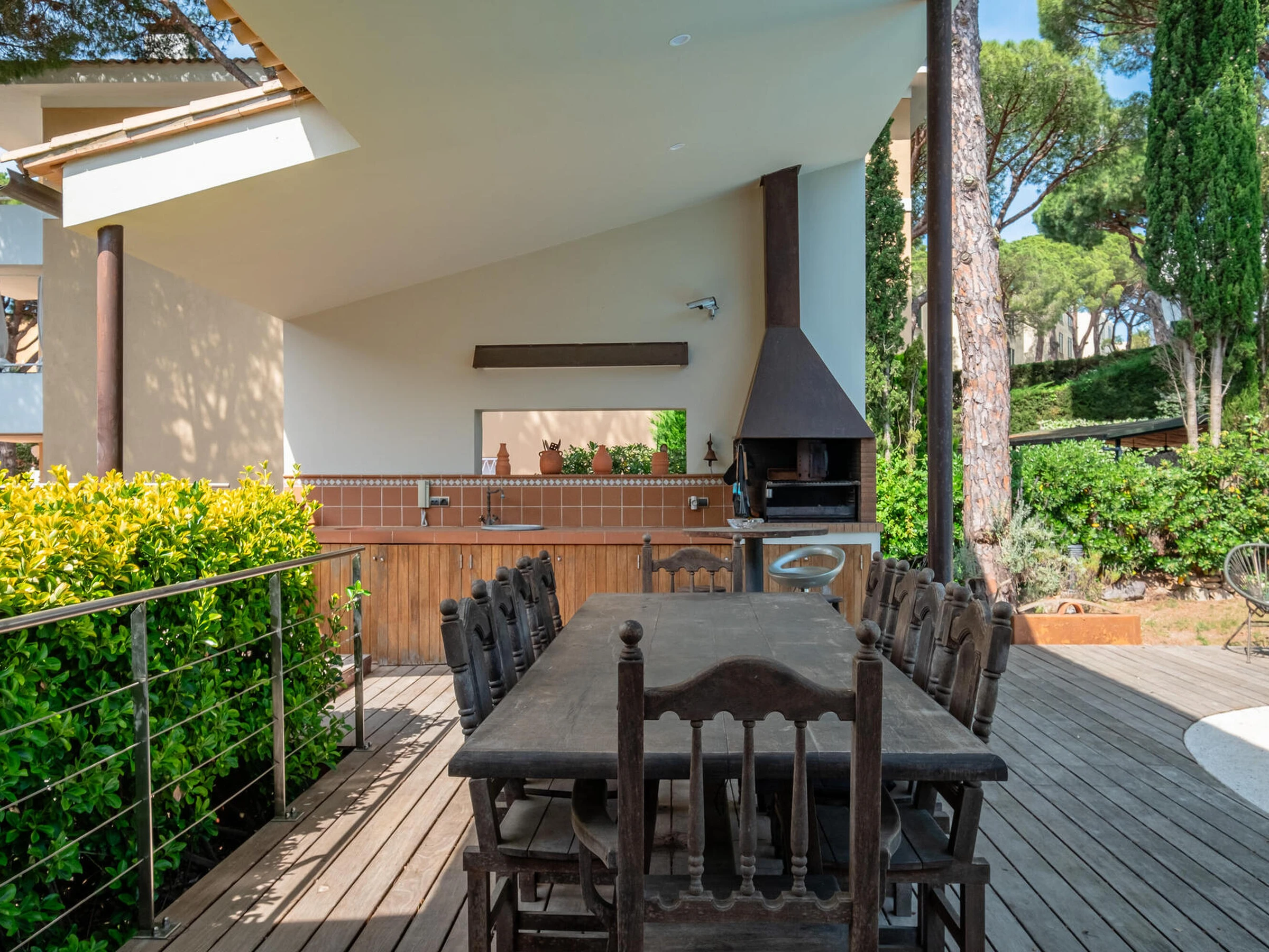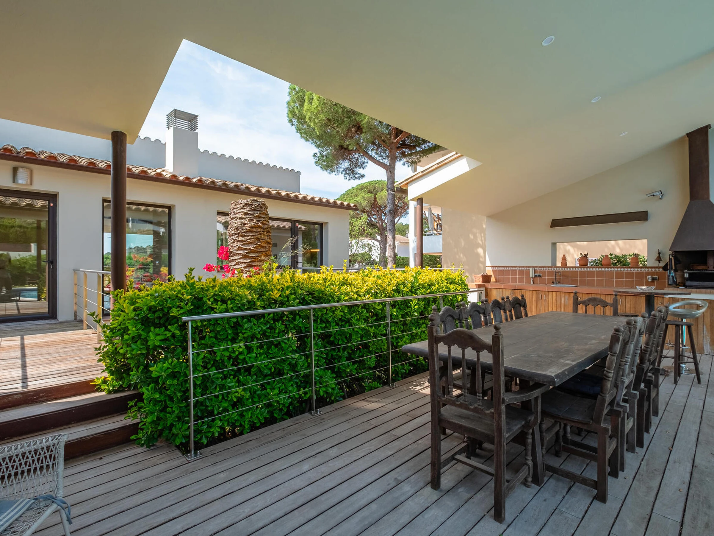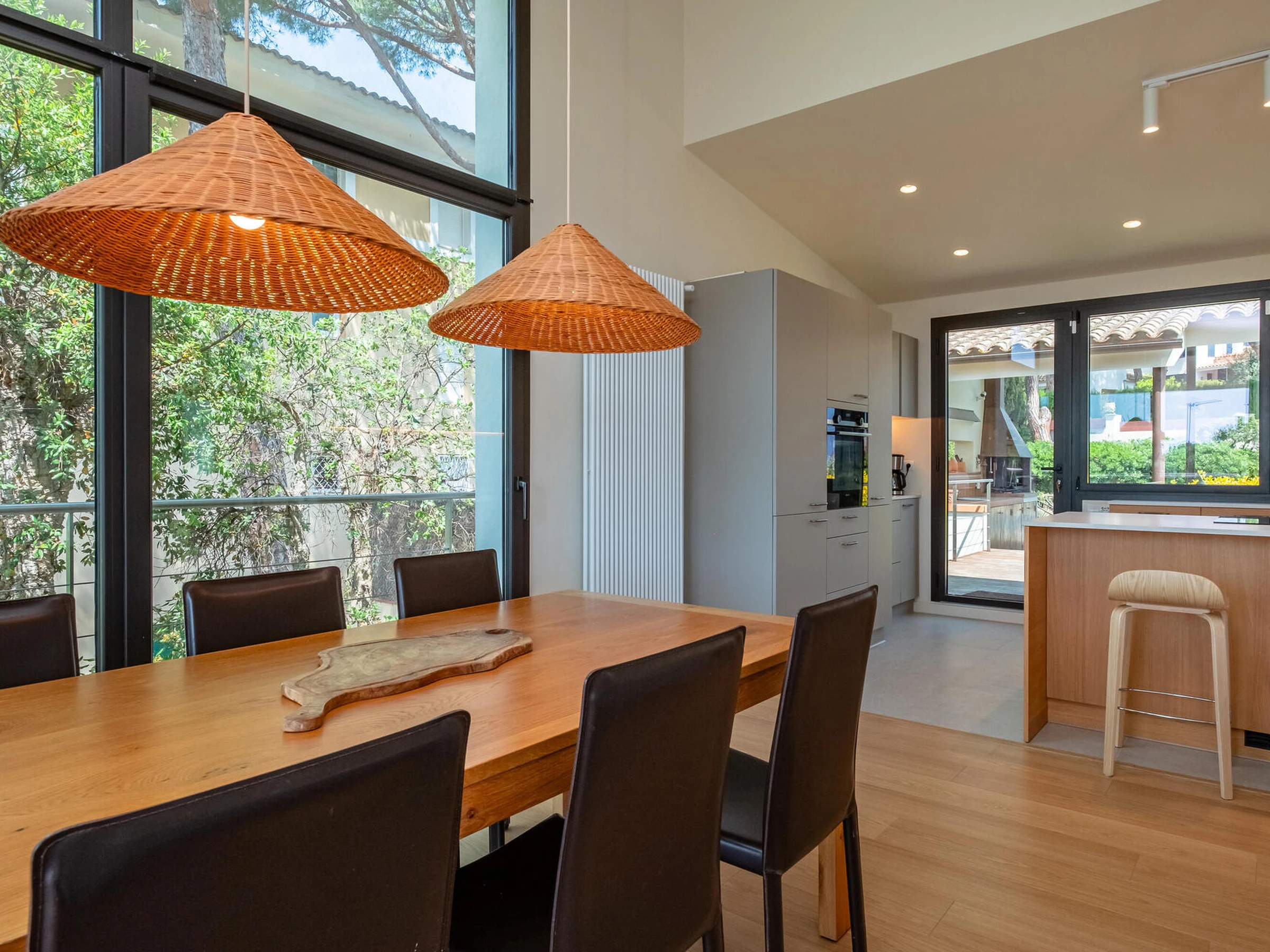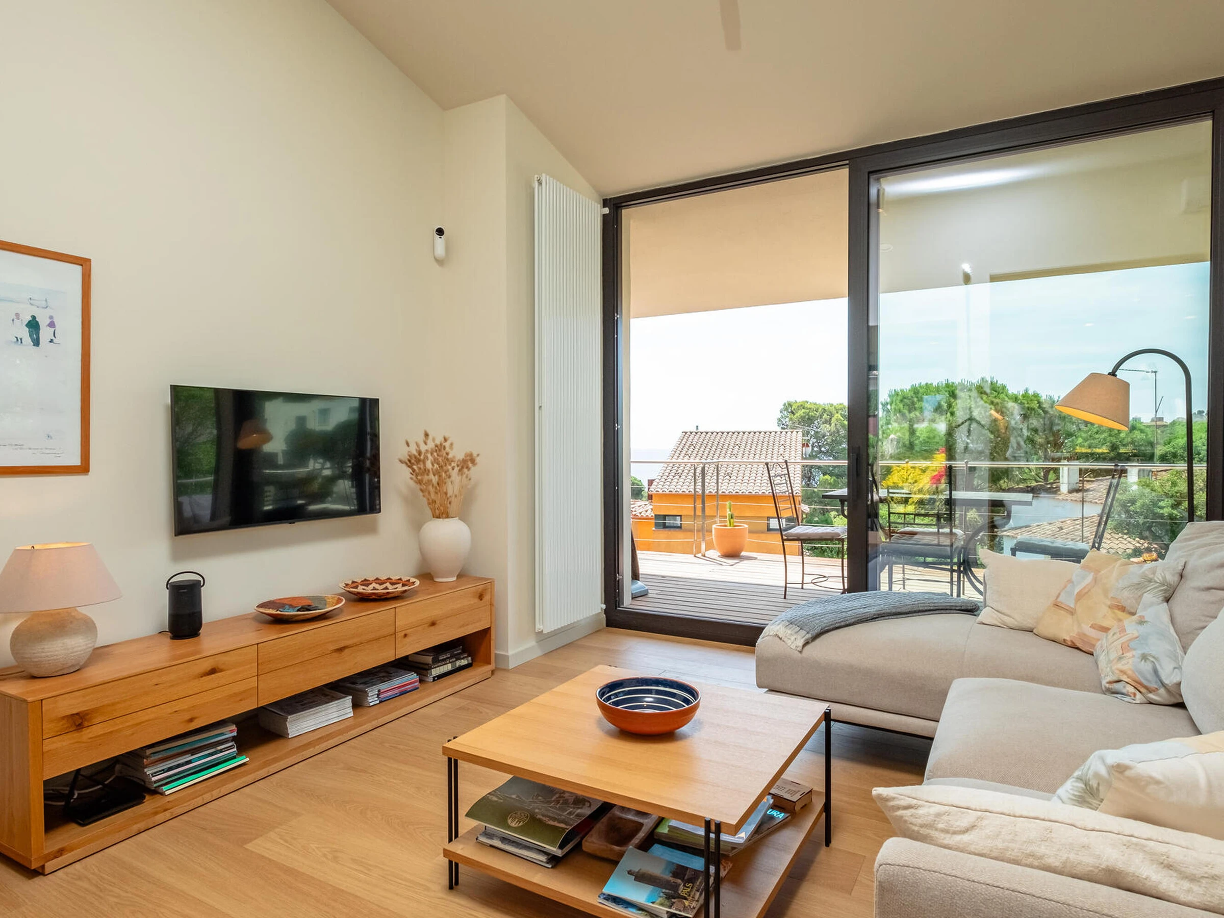 Magnífico chalet con vista al mar en zona residencial de "El Golfet" en Calella de Palafrugell, Costa Brava. Es una propiedad de alto standing con una encantadora zona exterior con piscina privada, barbacoa y una pequeña sauna finlandesa. El interior, de estilo contemporáneo, cuenta con un diáfano salón-comedor con vista al mar y salida a una terraza chill-out con vistas, cocina abierta totalmente equipada, 1 baño y 1 despacho con sofá cama doble en la primera planta, al mismo nivel del comedor exterior y y la piscina. La planta baja dispone de 3 habitaciones dobles: una habitación en-suite con cama doble y baño incorporado, otra habitación con cama doble,una habitación con litera, un baño y una segunda sala de estar y salida a la terraza. La propiedad ofrece una zona exterior fabulosa, con varias terrazas y racones para disfrutar al aire libre, ideal para familias. Capacidad para 8 personas. Se encuentra aproximadamente a 900 metros de la playa. Ubicada en una zona muy tranquila.. Le recordamos que las sabanas y las toallas no están incluidas en el precio, se pueden alquilar por un suplemento de 10 € por persona en sábanas y 10 € por persona en toallas. Háganos saber si está interesado, para que podamos tenerlo todo preparado a su llegada. Para cualquier otra pregunta respecto a esta propiedad, por favor, no dude en contactarnos.
