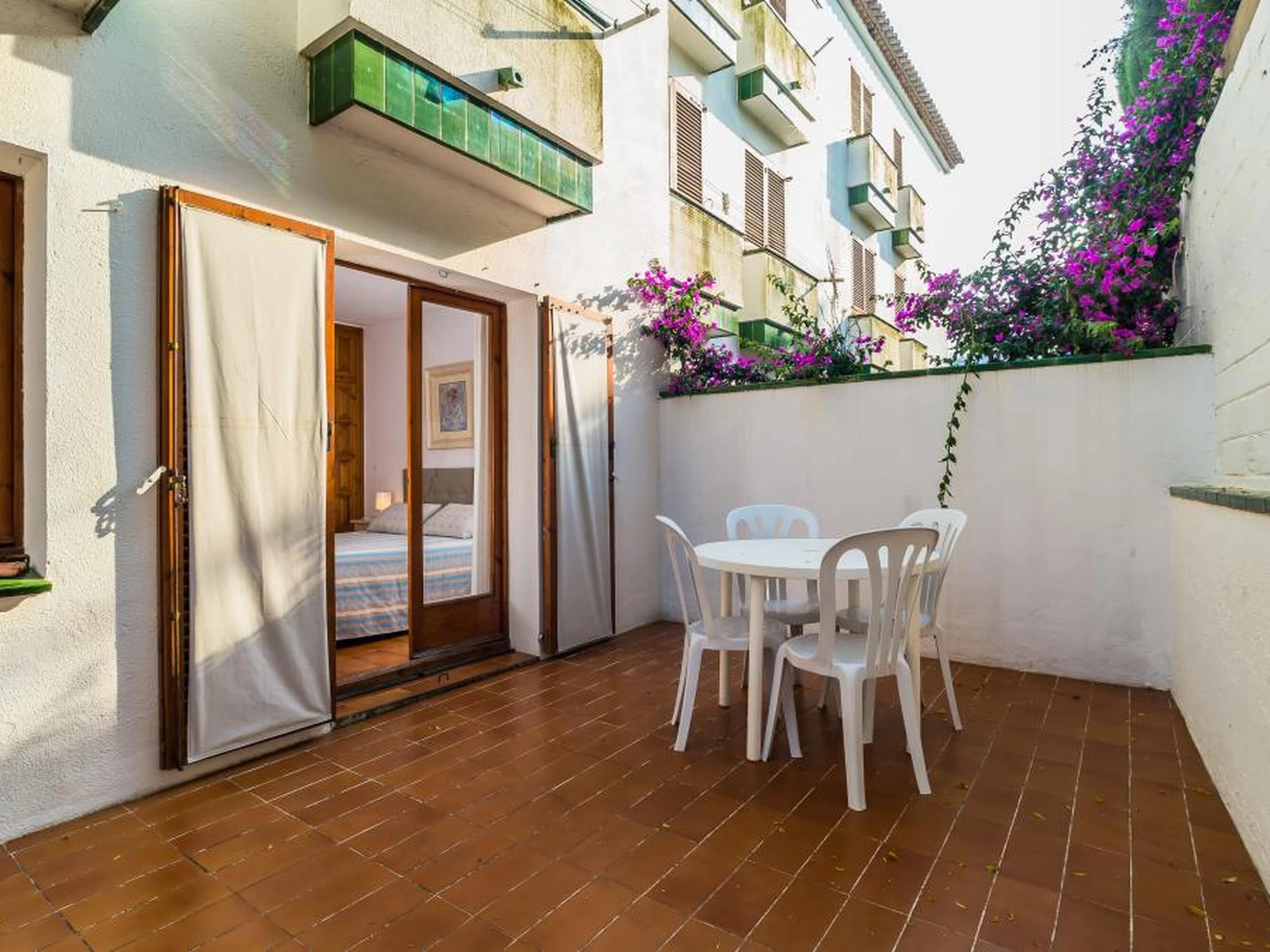 Planta baja en comunidad tranquila con piscina en el corazón de Calella de Palafrugell. Apartamento cuidado que se compone de salón-comedor con cocina abierta y salida a una ampliaterraza, 2 dormitorios dobles y un baño completo. La habitación con cama doble tiene salida a una terraza trasera. Aunque es planta baja hay escaleras para acceder a ella. Comunidad pequeña y familiar en el centro del pueblo. Capacidad para 4 ocupantes. Ubicada a sólo 270 metros de la playa y del centro. Para cualquier otra pregunta respecto a esta propiedad, no dude en contactarnos.