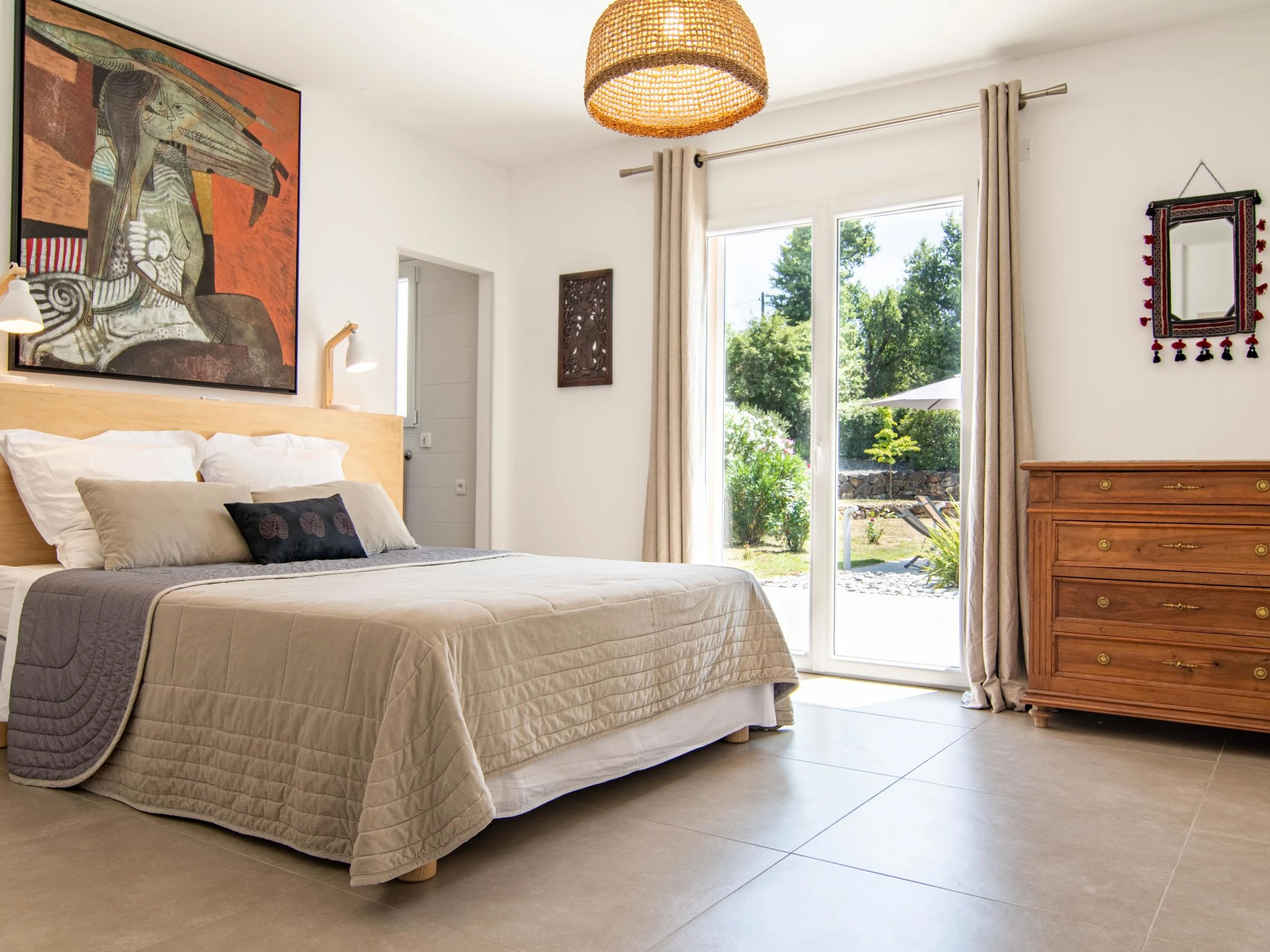 Villa 4 estancias 140 m2. Salón-comedor con chimenea (sólo con función decorativa), TV (pantalla plana). Salida a la terraza. 1 dorm. con Vestidor con 1 cama de matrimonio (160 cm, 190 cm de longitud), ducha/WC. Salida a la terraza. 1 dorm. con 1 cama de matrimonio (140 cm, 190 cm de longitud). Salida al jardín, a la terraza. 1 dorm. con 1 cama de matrimonio (160 cm, 190 cm de longitud). Salida a la terraza. Cocina abierta (horno, lavavajillas, 4 fuegos, tostadora, hervidor de agua eléctrico, cafetera eléctrica) con pequena mesa de comedor. Ducha/WC, WC separado, doble lavabo. Calefacción eléctrica. Muebles de terraza, tumbonas (4). El alojamiento dispone de: lavadora, plancha. Internet (Wifi, gratis). A tener en cuenta: casa para no fumadores. Detector de humo. Oferta de un particular según el art. 155, IV del CGI.
