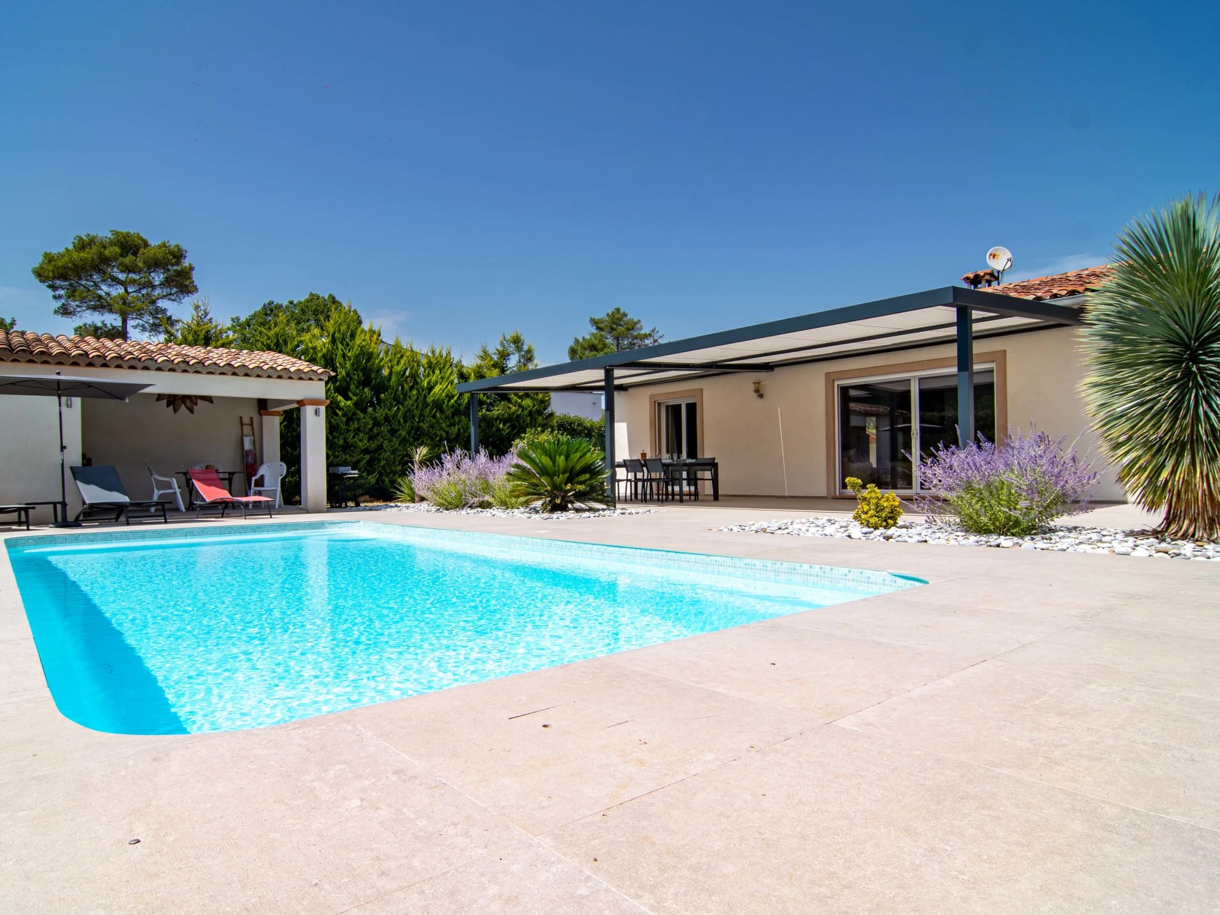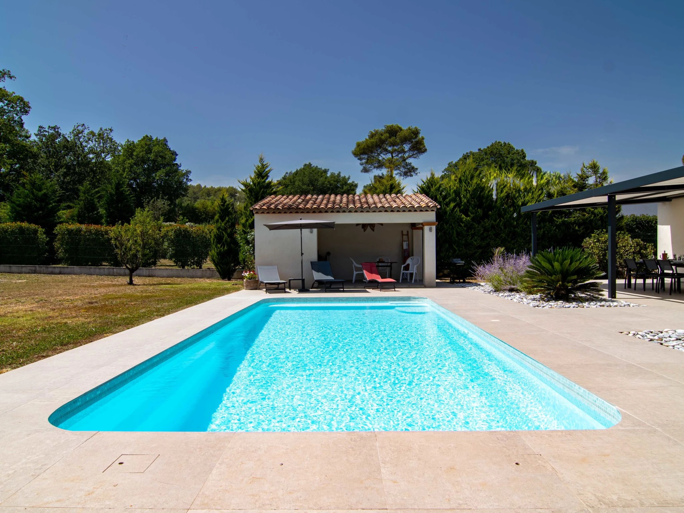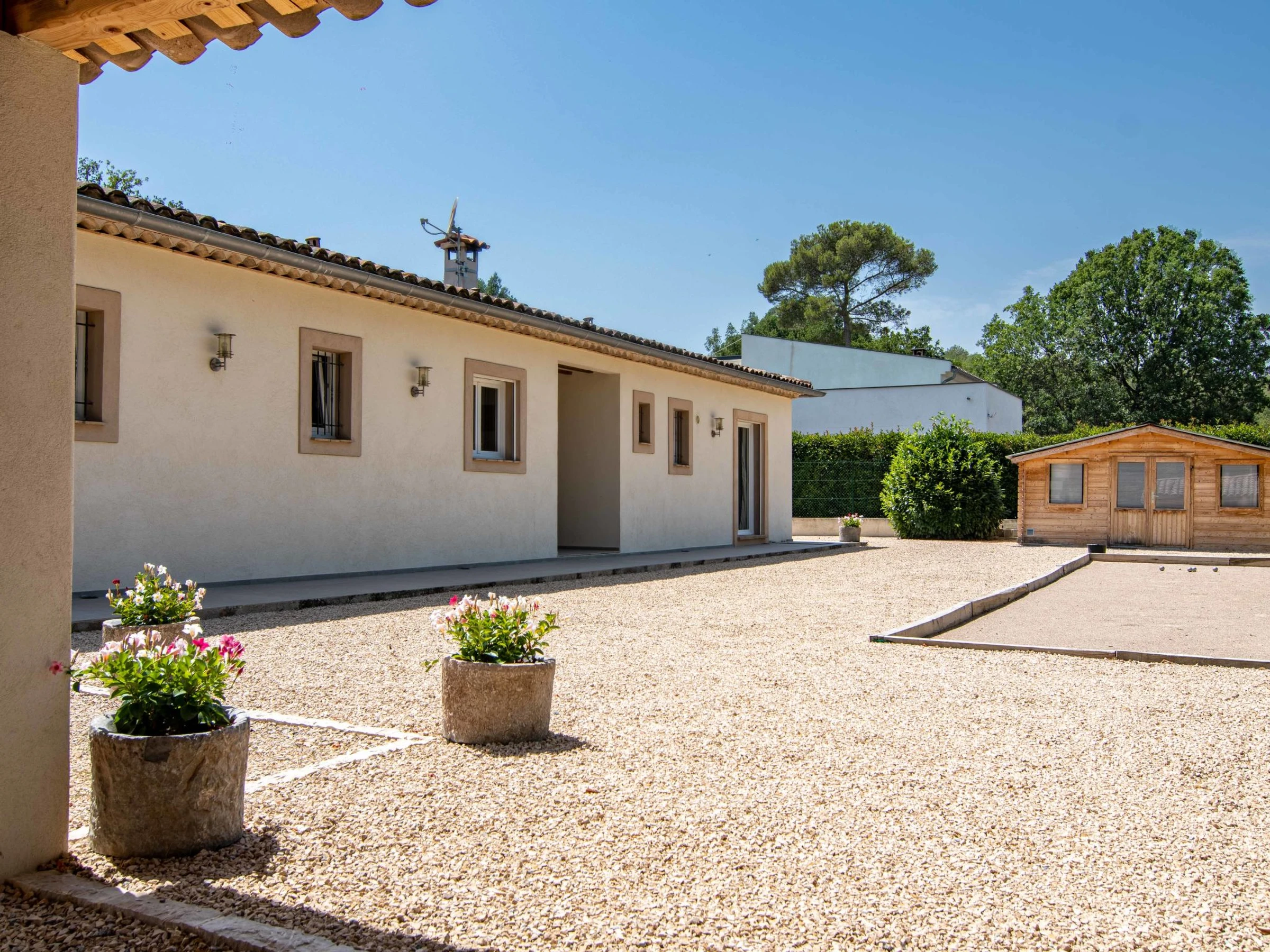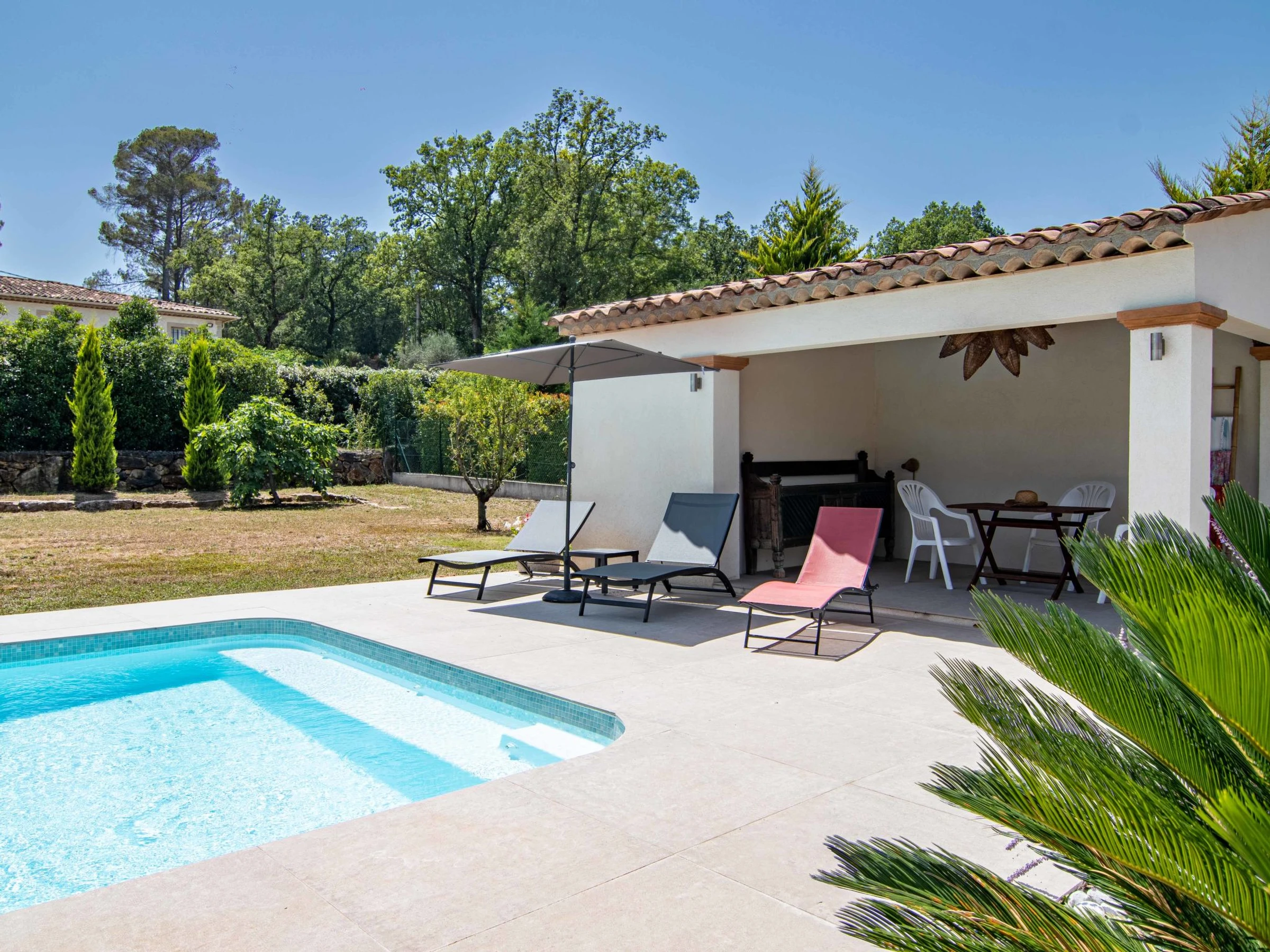 Casa unifamiliar "Villa D'Allongue", bonita. A 3 km del centro de Callian, a 5.4 km del centro de Fayence, a 36 km del centro de Cannes, a 7 km de un lago. Privado: terreno 2'500 m2 (vallada), jardín, cuidado, piscina rectangular (9 x 10 m, 90 - 200 cm de profundidad, Disponible por temporada: [hidden] - [hidden] con alarma. Petanca. Acceso brusco (300 m camino de tierra). Aparcamiento (para 2 coches, cubierto). Supermercado 1.4 km, restaurante 3 km, café 3 km, parada autobús 800 m, estación de tren "Cannes" 39 km, playa de arena "La Bocca" 31 km, lago Saint Cassien 7 km. Campo de golf (18 hoyos) 3 km. Atracciones en los alrededores: Aérodrome de Fayence 6 km. Lagos conocidos fácilmente accesibles: Saint Cassien 7.5 km. A tener en cuenta: coche recomendable. El propietario no acepta grupos de adolescentes/jóvenes. Una parte de la casa está cerrada e inocupada.