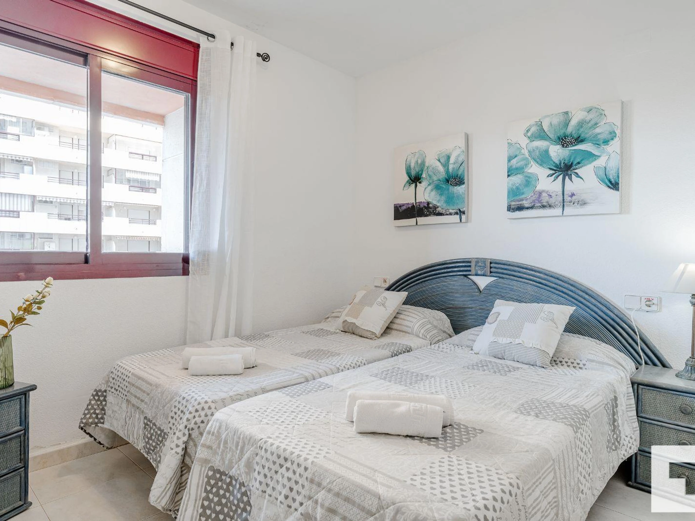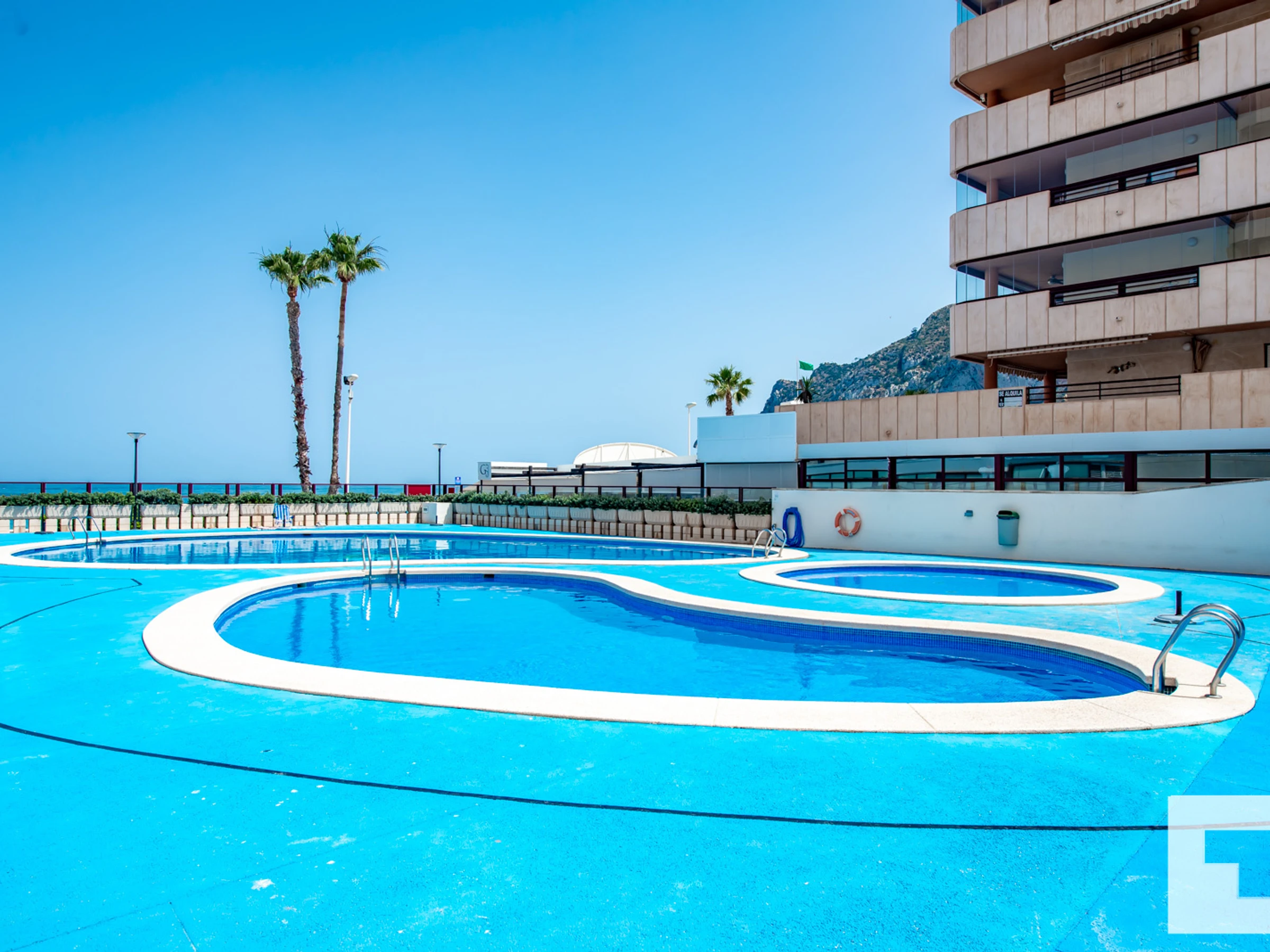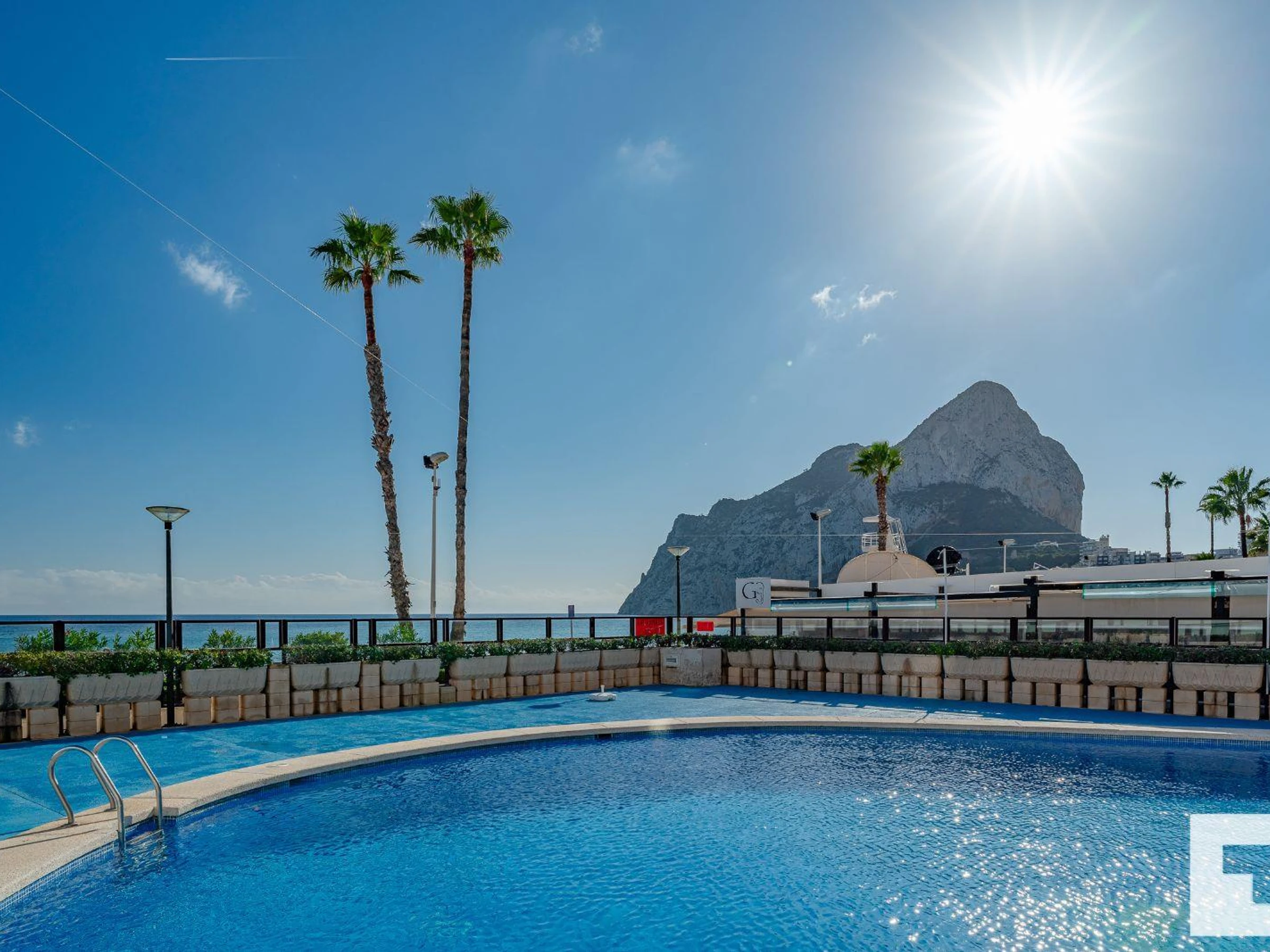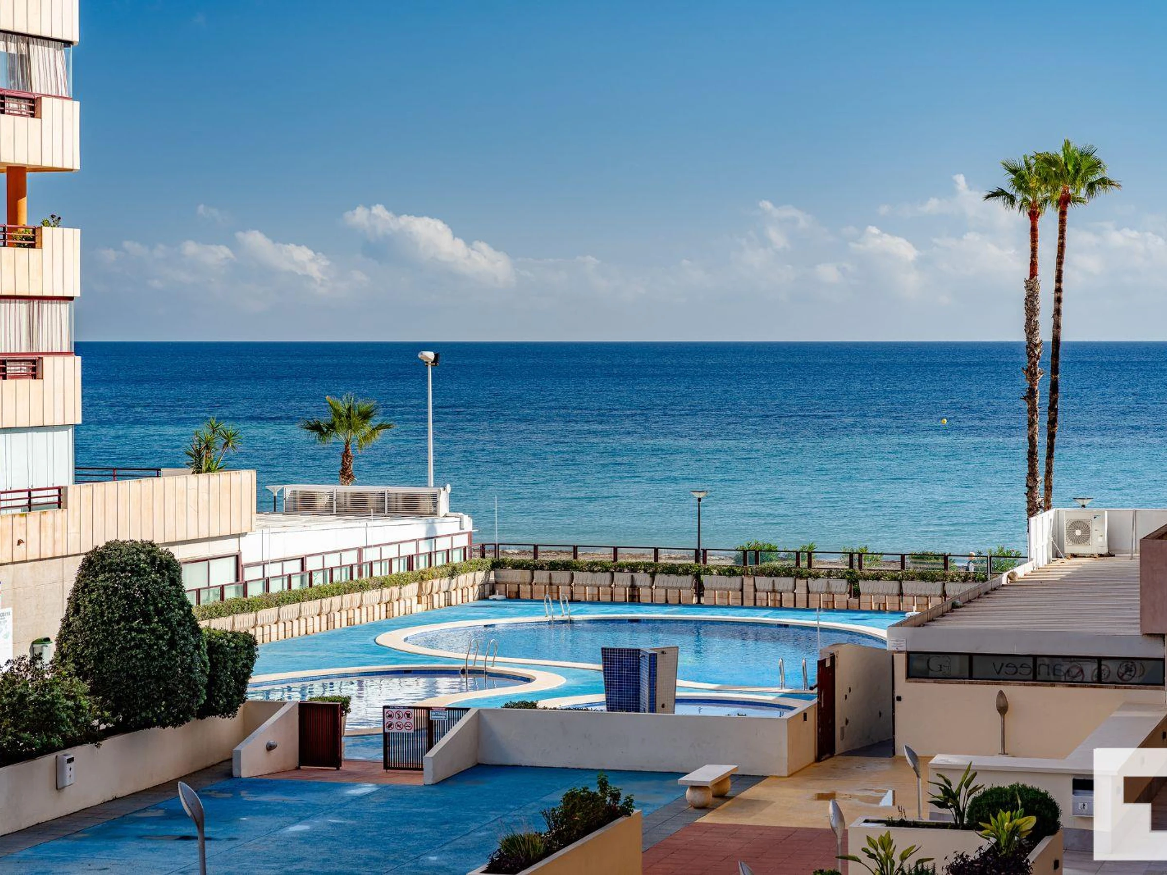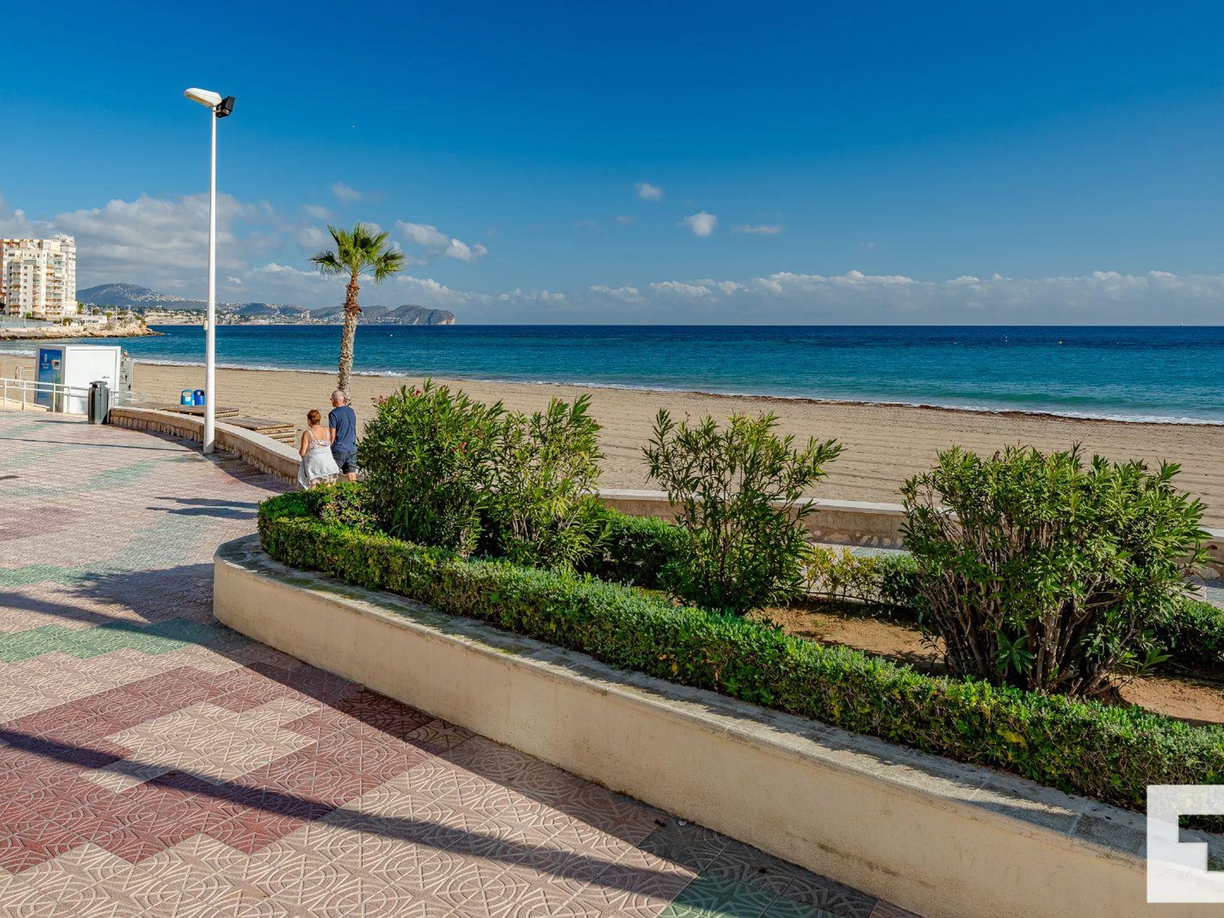 Bonito apartamento de 2 dormitorios, situado en primera línea de la playa de Levante de Calpe. Disfruta de vistas laterales al mar que te invitan a relajarte en la terraza con el sonido de las olas.