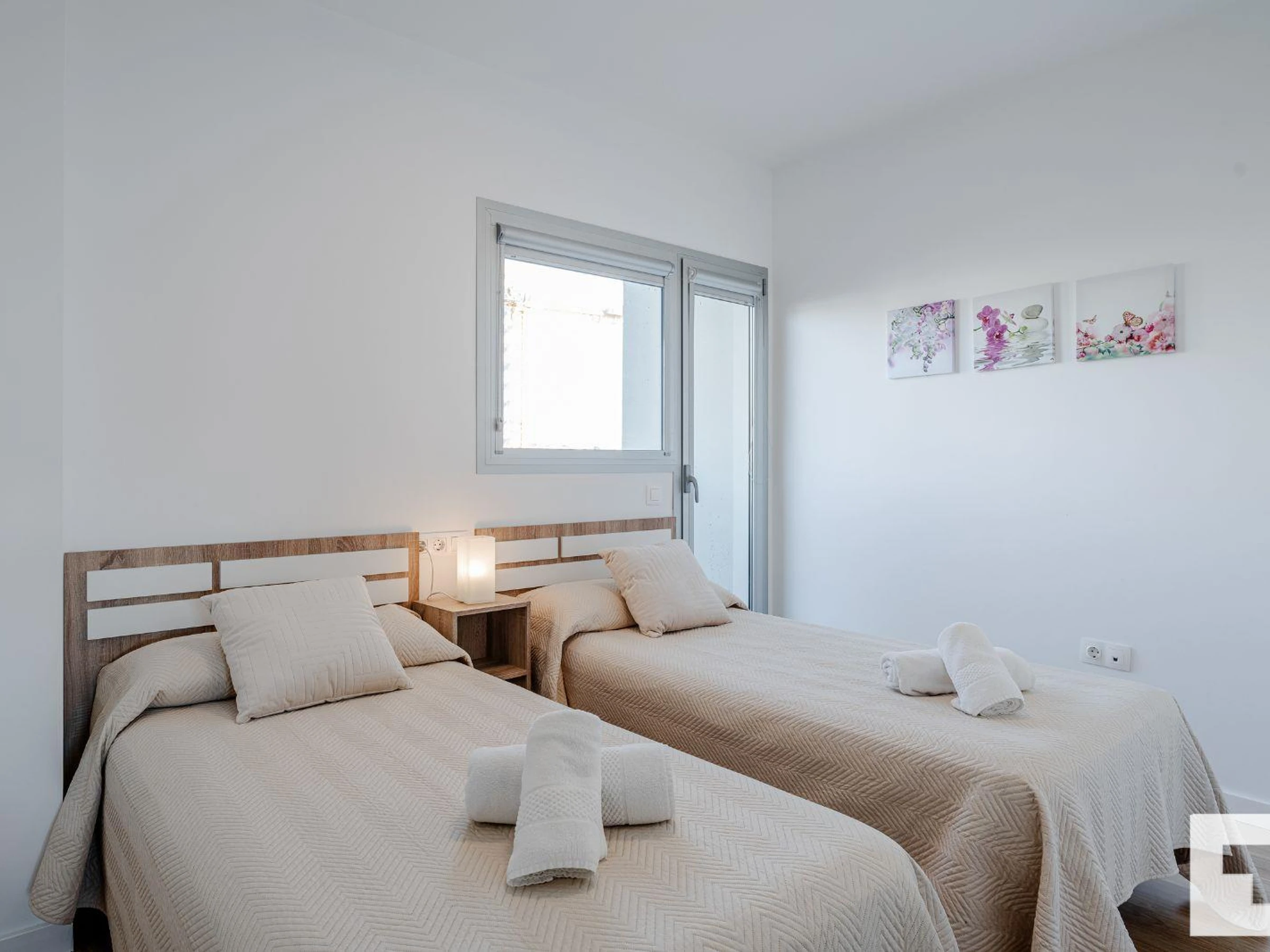 * 1 dormitorio con dos camas individuales. 🚿 2 baños