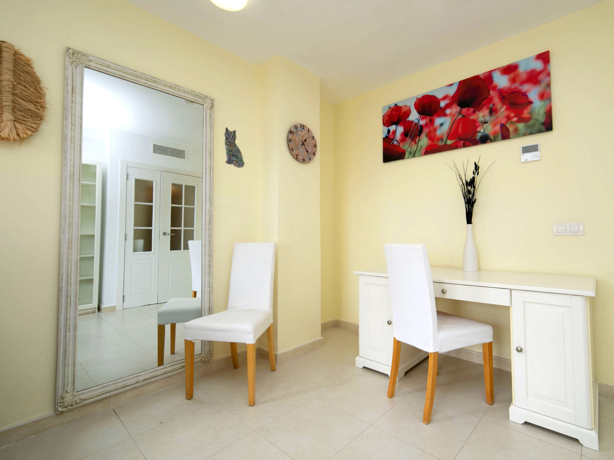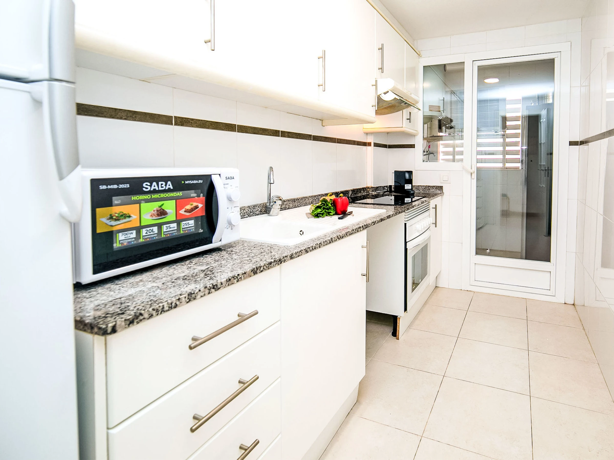 "Apolo XIX", apartamento de 2 estancias 69 m2 en el 4° piso. Luminoso, con mobiliario confortable y bonito: salón con 1 sofá-cama (140 cm, 180 cm de longitud), TV digital, aire acondicionado y bomba de calor, caliente. Salida a la terraza. 1 dorm. con 1 cama de matrimonio (1 x 150 cm, 190 cm de longitud), aire acondicionado y bomba de calor, caliente. Salida a la terraza. Cocina (horno, 3 placas de vitrocerámica, tostadora, hervidor de agua eléctrico, microondas, cafetera eléctrica). Baño/WC. Aire caliente. Terraza. Muebles de terraza. Vista bonita a la localidad. El alojamiento dispone de: lavadora, plancha, trona, cuna hasta 2 años, secador de pelo. Internet (Wifi, gratis). A tener en cuenta: casa para no fumadores. [hidden] // Reg. Nr.: ESFCTU00000302900060376600000000000000000[hidden]4