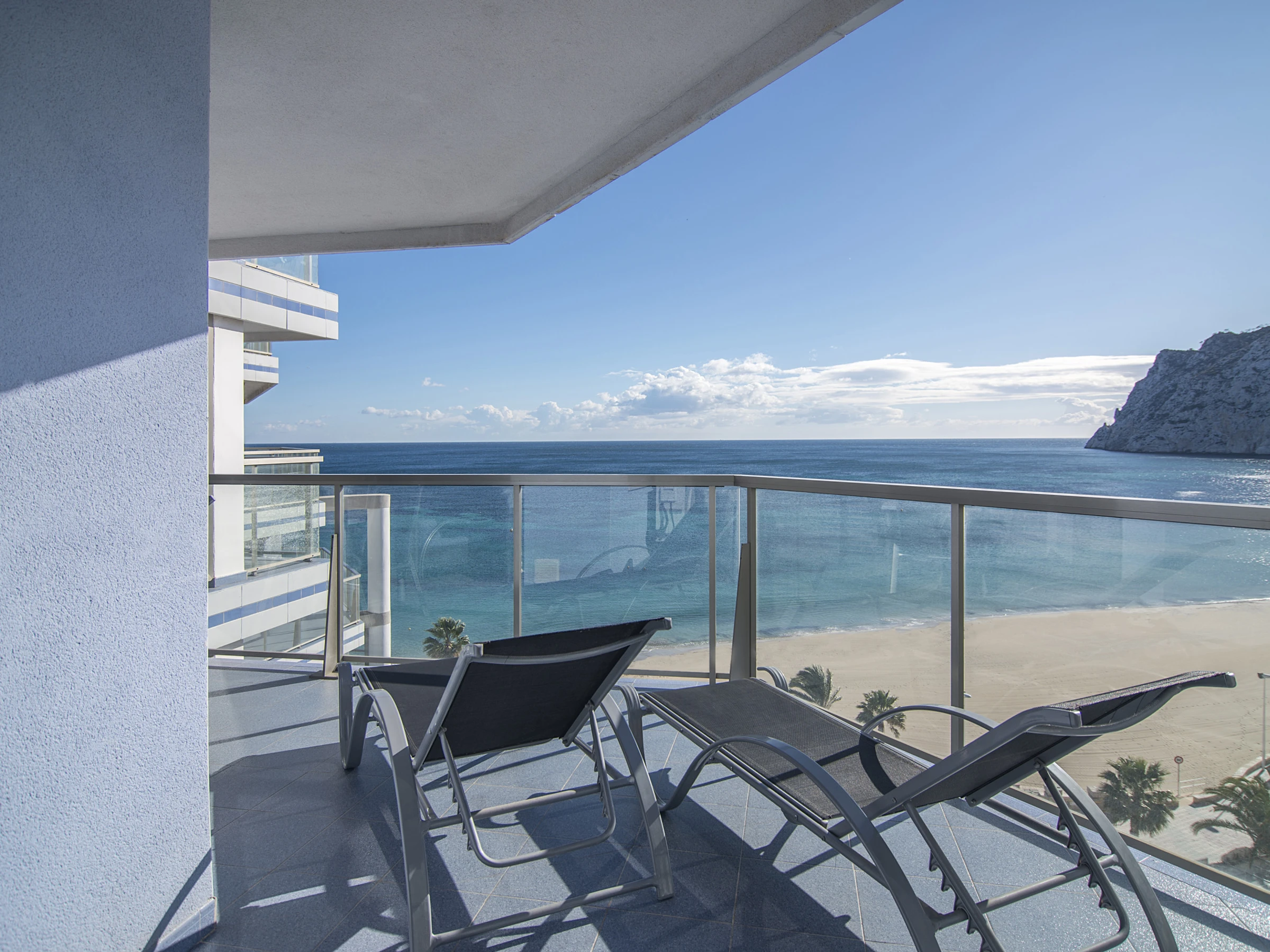 Desde este apartamento podrá disfrutar de unas bonitas vistas a la playa de la fossa. Está situado en la quinta planta del edificio Hipocampos a primera linea de playa.