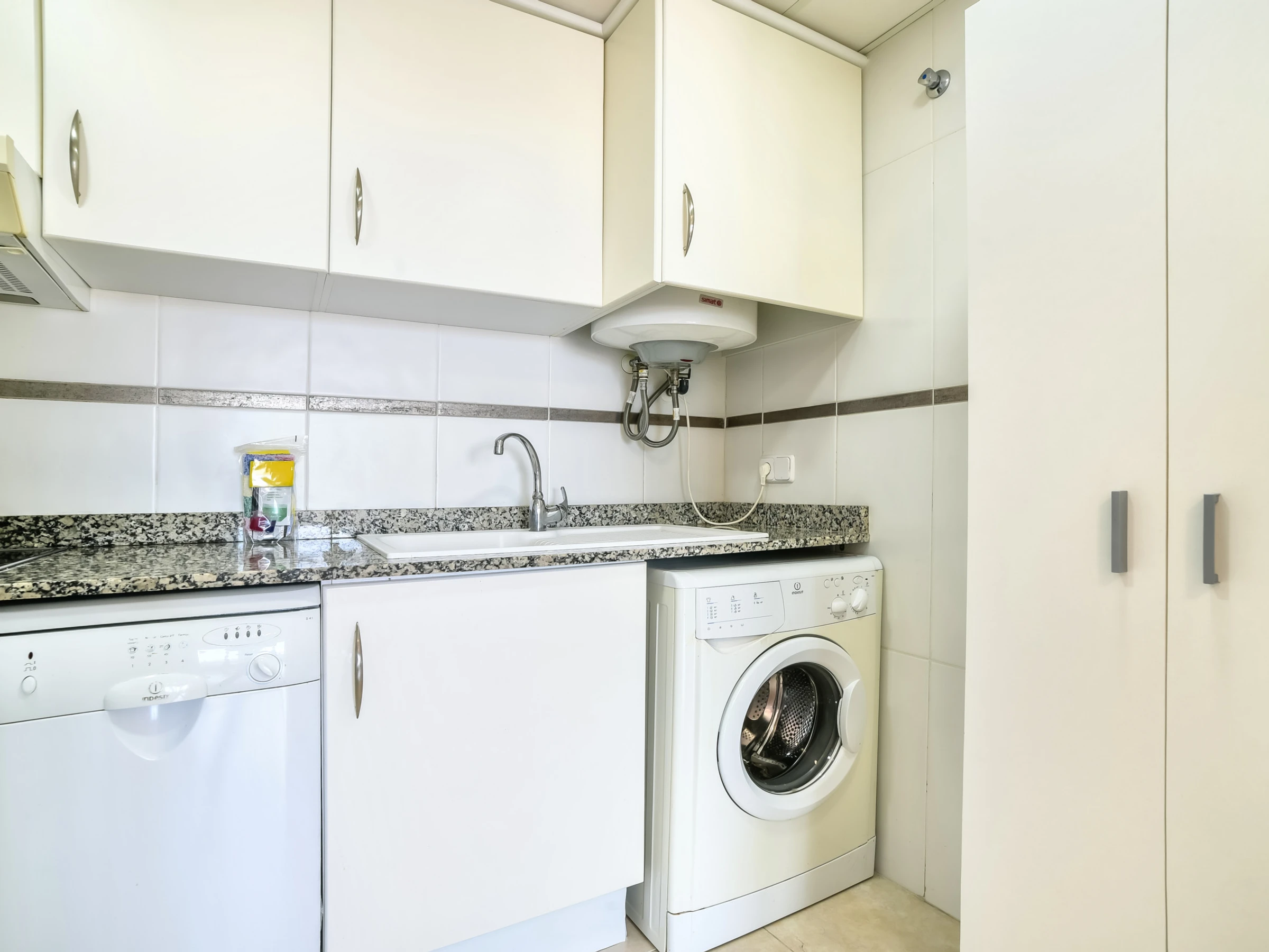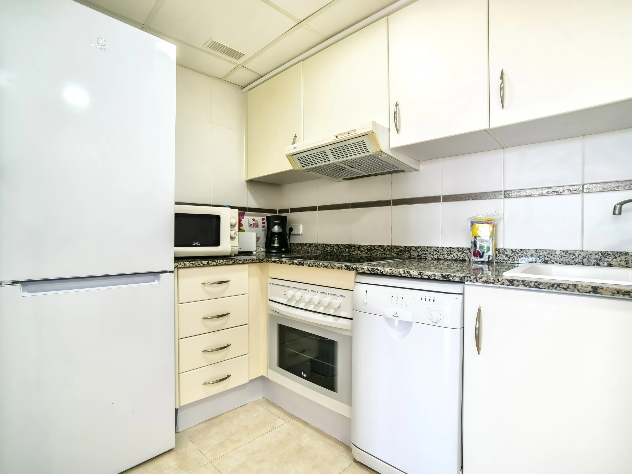 La cocina americana está totalmente equipada con electrodomésticos de última generación, incluyendo nevera, congelador, lavadora, lavavajillas, horno, microondas, cafetera, tostadora, hervidor y una completa dotación de menaje. Cuenta con placa vitrocerámica para preparar deliciosas comidas.