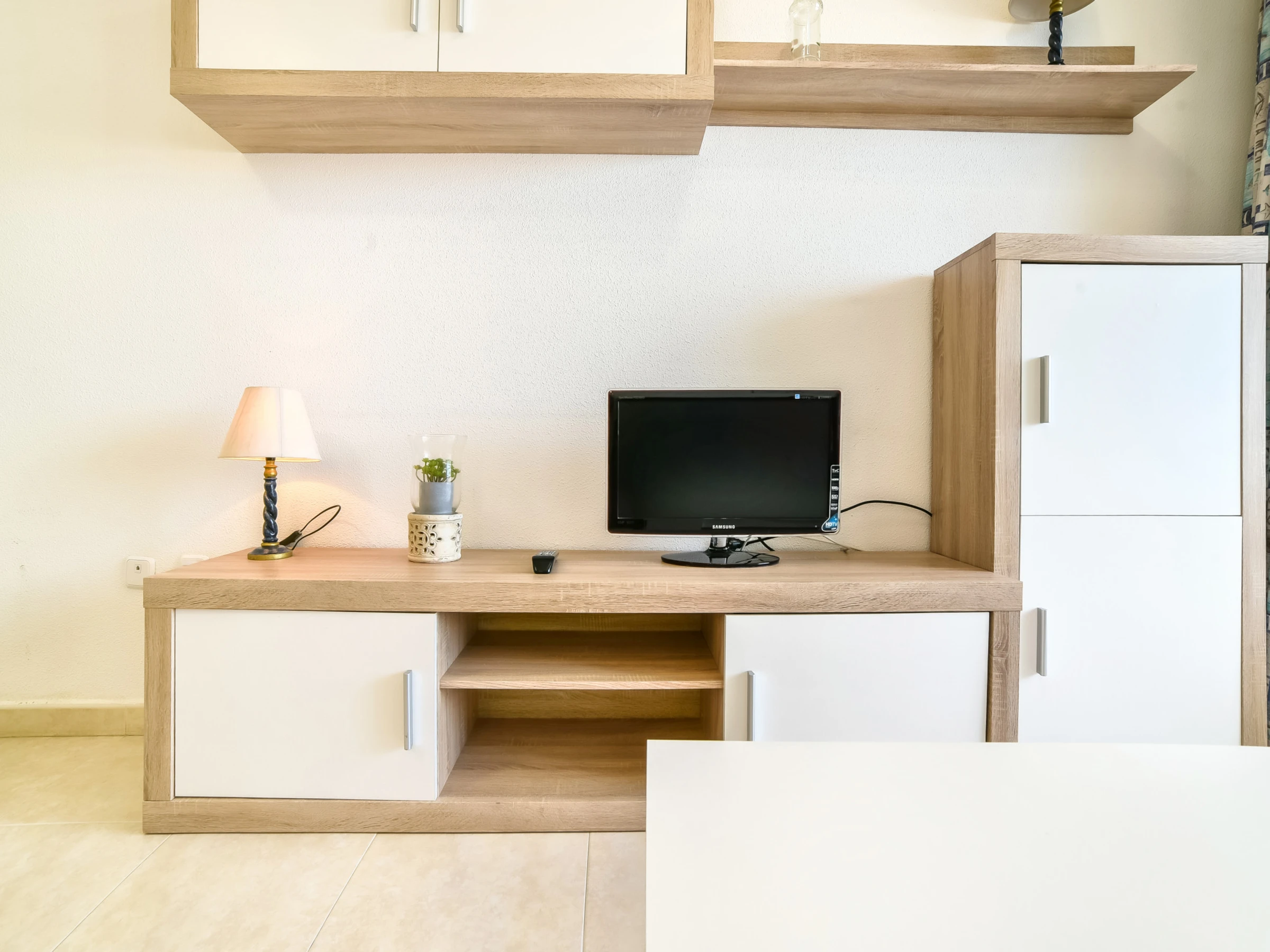 El salón está equipado con televisión y aire acondicionado con bomba de calor para garantizar el máximo confort en cualquier época del año. Además, dispone de conexión WiFi y plancha para mayor comodidad.