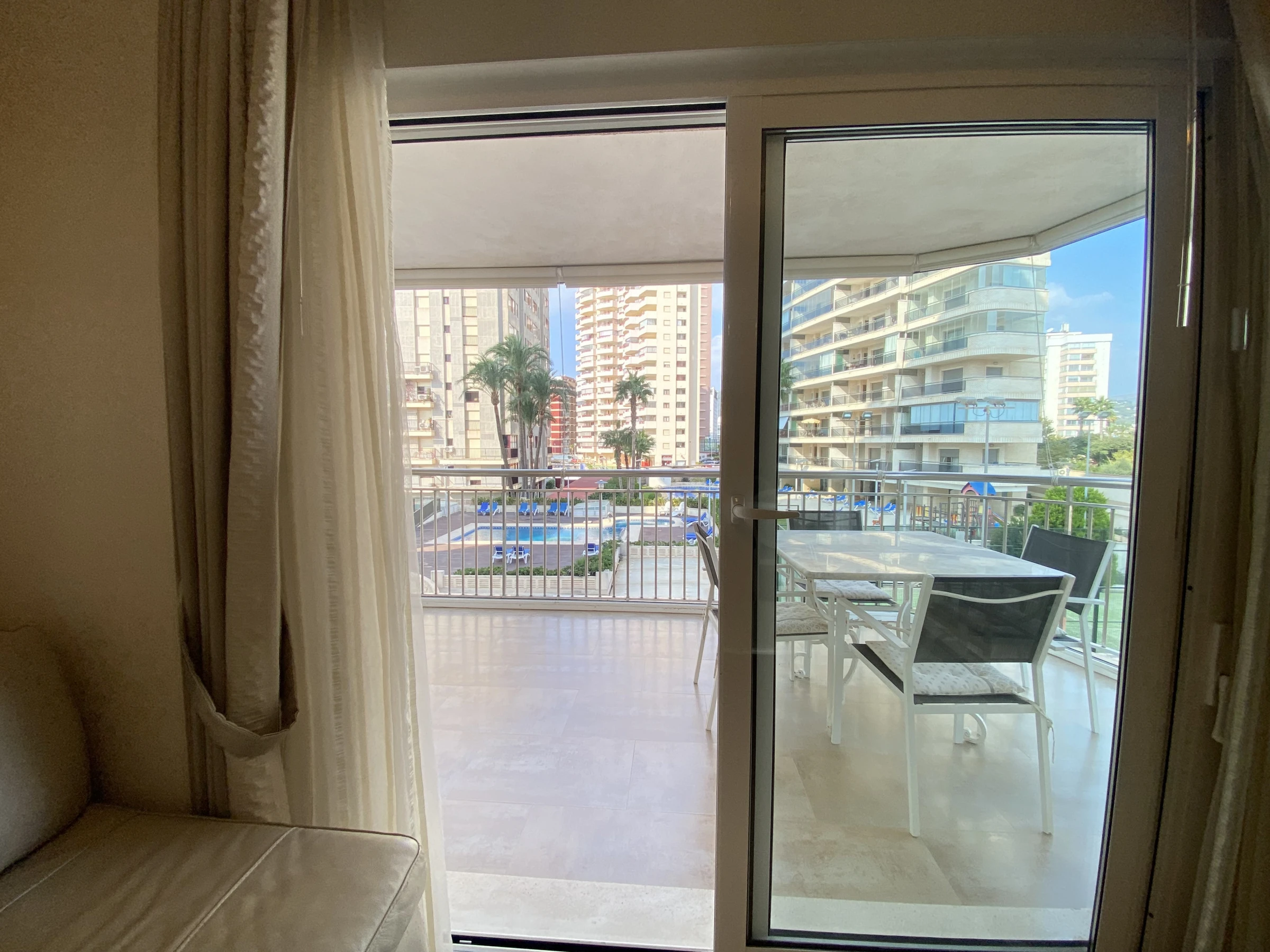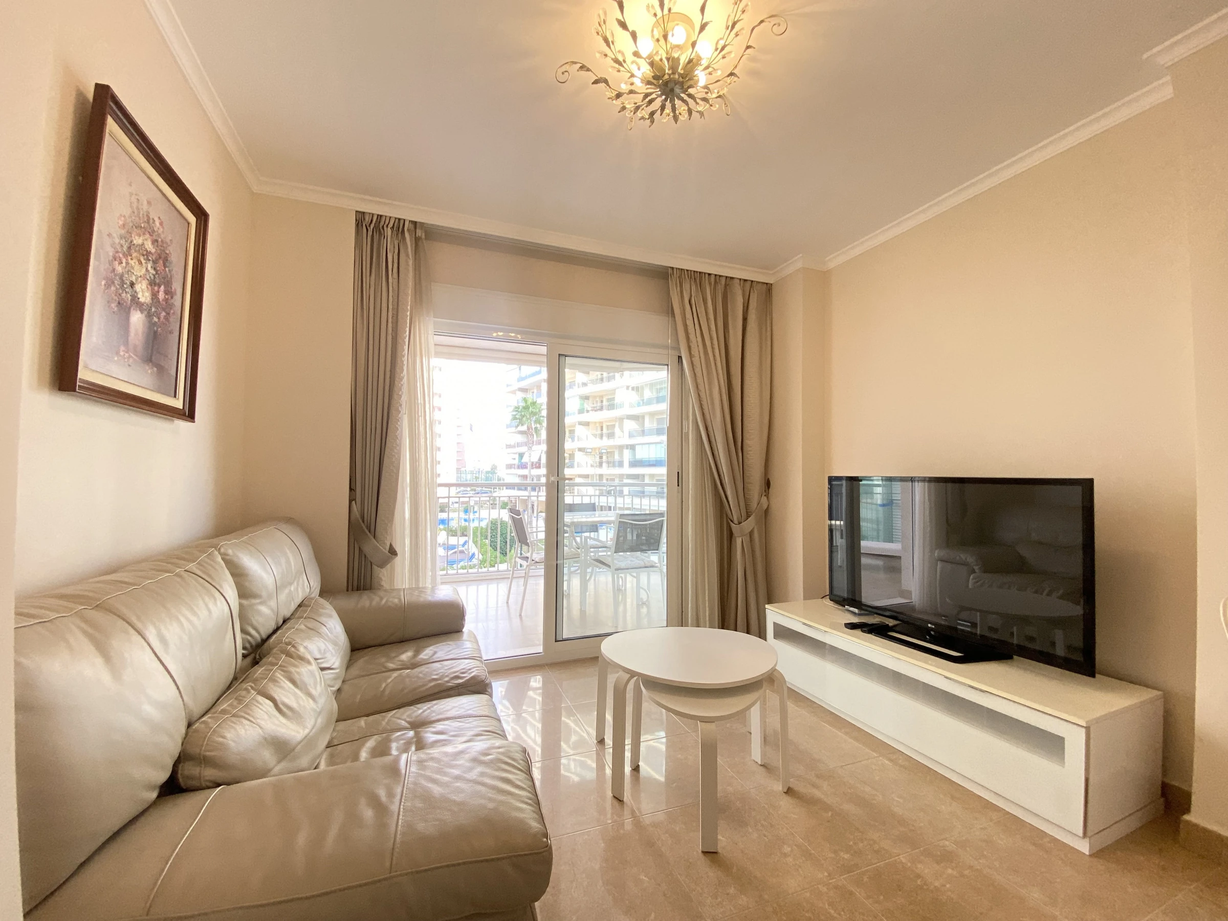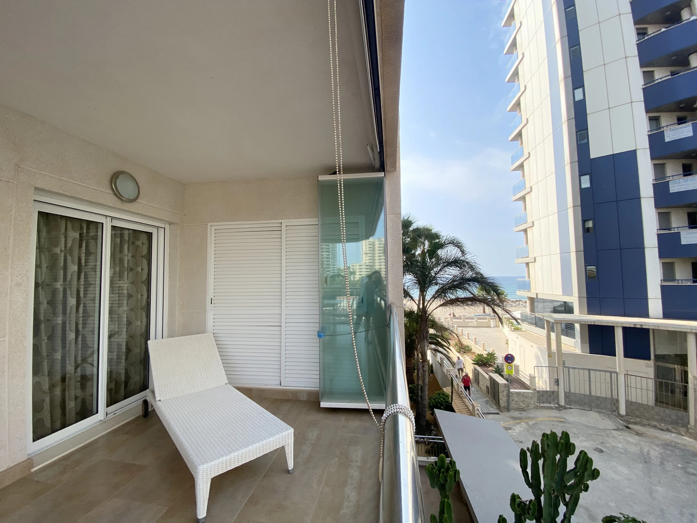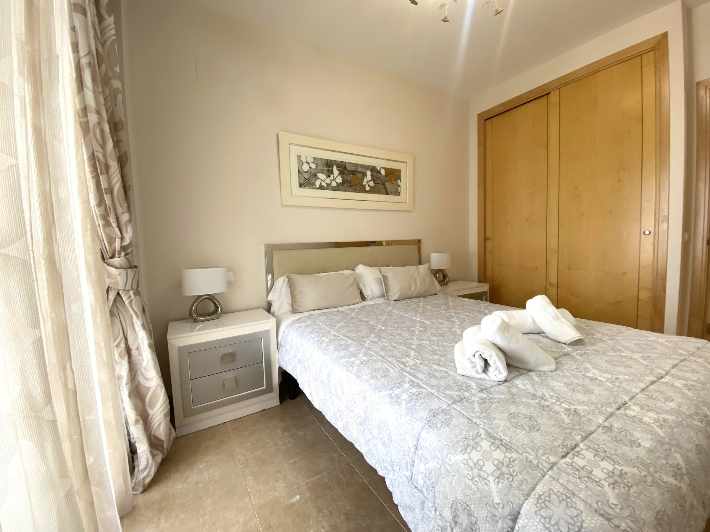 Bonito apartamento en primera línea de la playa Arenal, con vistas laterales al mar, en el residencial Porto Azul. Moderno y nuevo con muebles de alta gama. consta de 1 dormitorio con cama de matrimonio, 1 salón-comedor con tv y 2 sofás, (un sofá cama doble), cuarto de baño con bañera, cocina totalmente equipada y terraza con vistas (la terraza acristala permanece abierta en verano y cerrada en invierno). Ubicación inmejorable. Cuenta con aire acondicionado y WIFI.