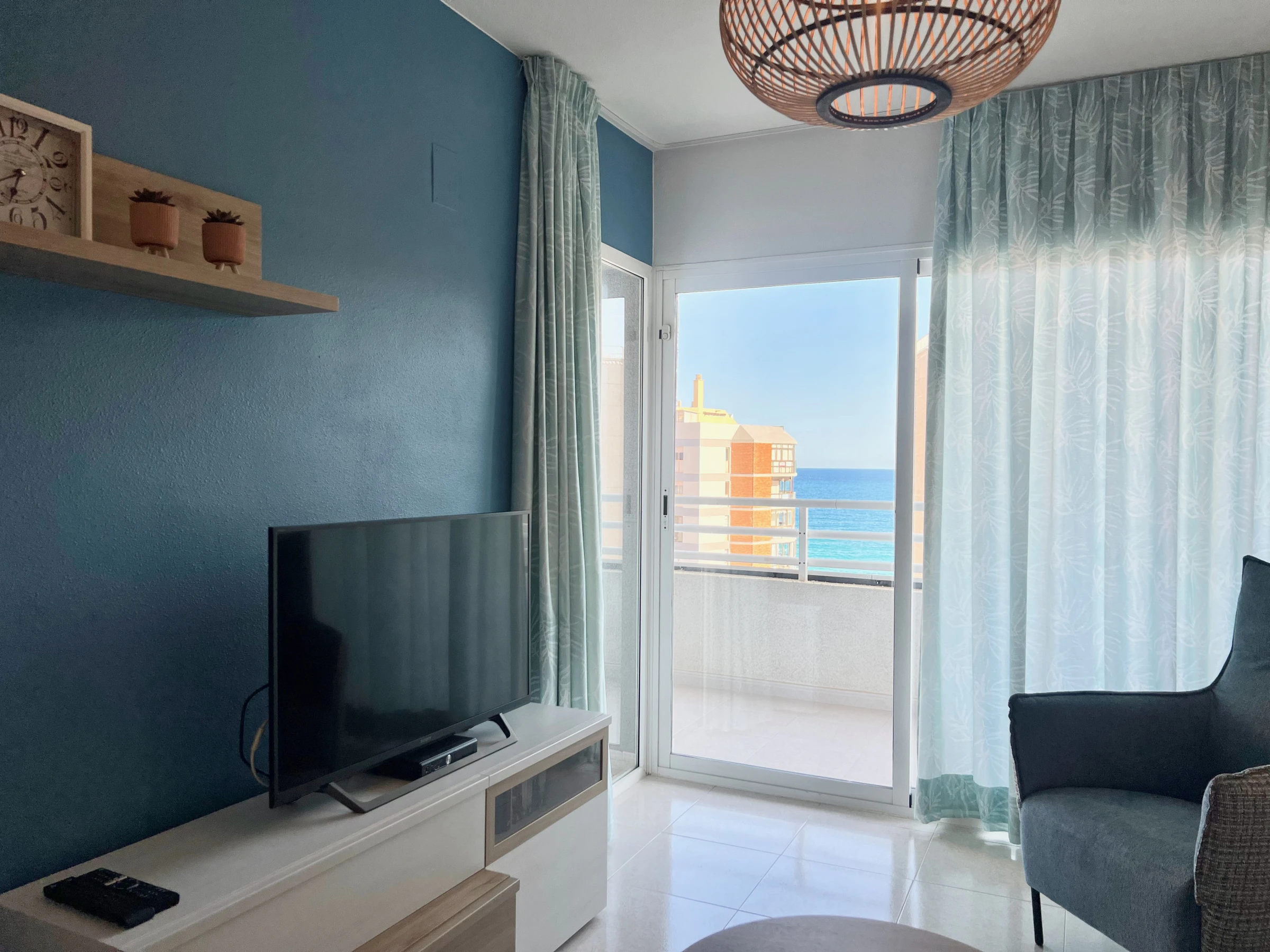 Salón-comedor (TV con canales belgas y españoles), cocina equipada y amplia terraza con vistas al mar y al Peñón de Ifach. Capacidad para 4 personas.