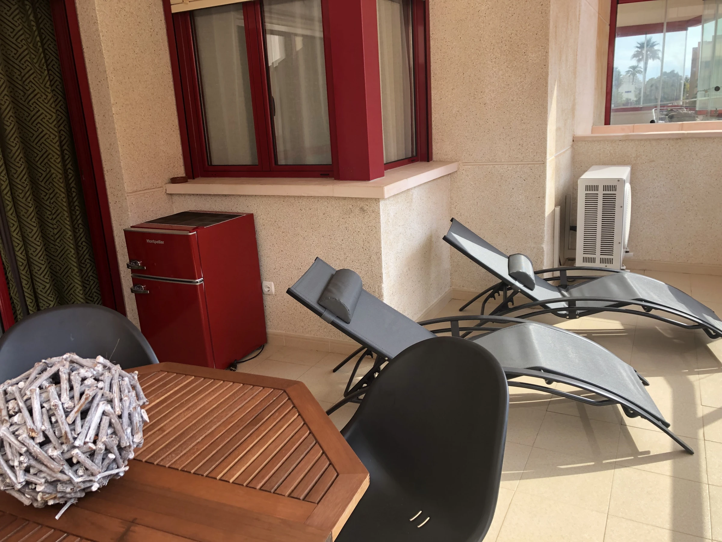 Dispone de terraza, plancha, acceso internet (wifi) 15 euros/semana, aire acondicionado (no incluido en el precio), piscina comunitaria, 1 Televisor. En caso de usar el aire, se cobrará 50euros/semana.