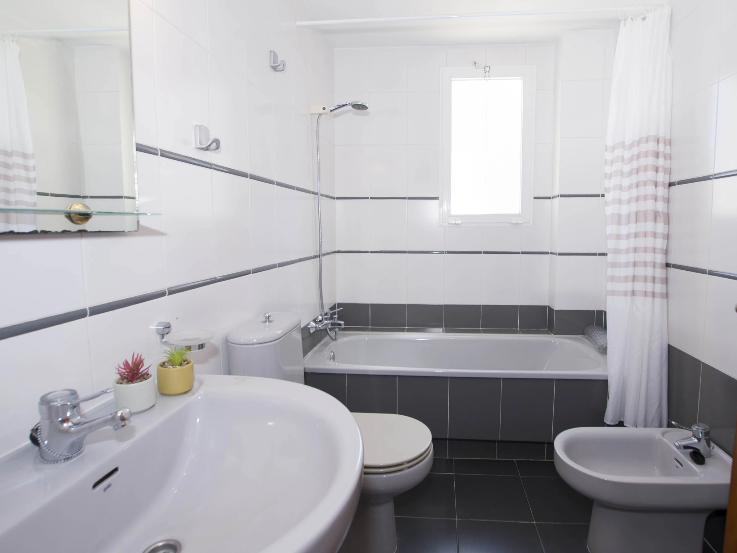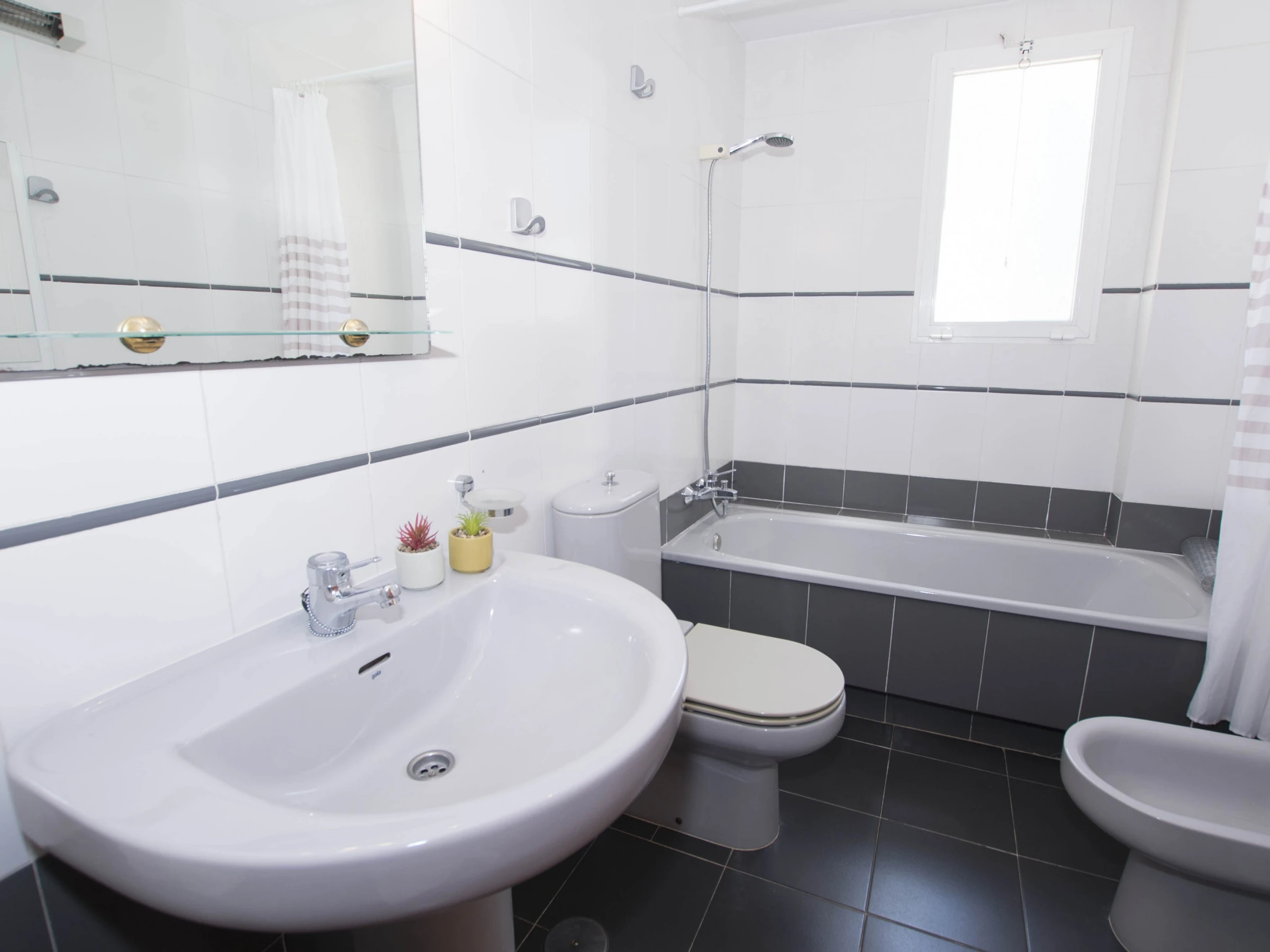 Dispone de ascensor, plancha, acceso internet (wifi) 8 EUROS/WEEK, balcón, calefacción bomba de calor, aire acondicionado solo en salón (frio y calor 50 euros/week) piscina comunitaria, Televisión.